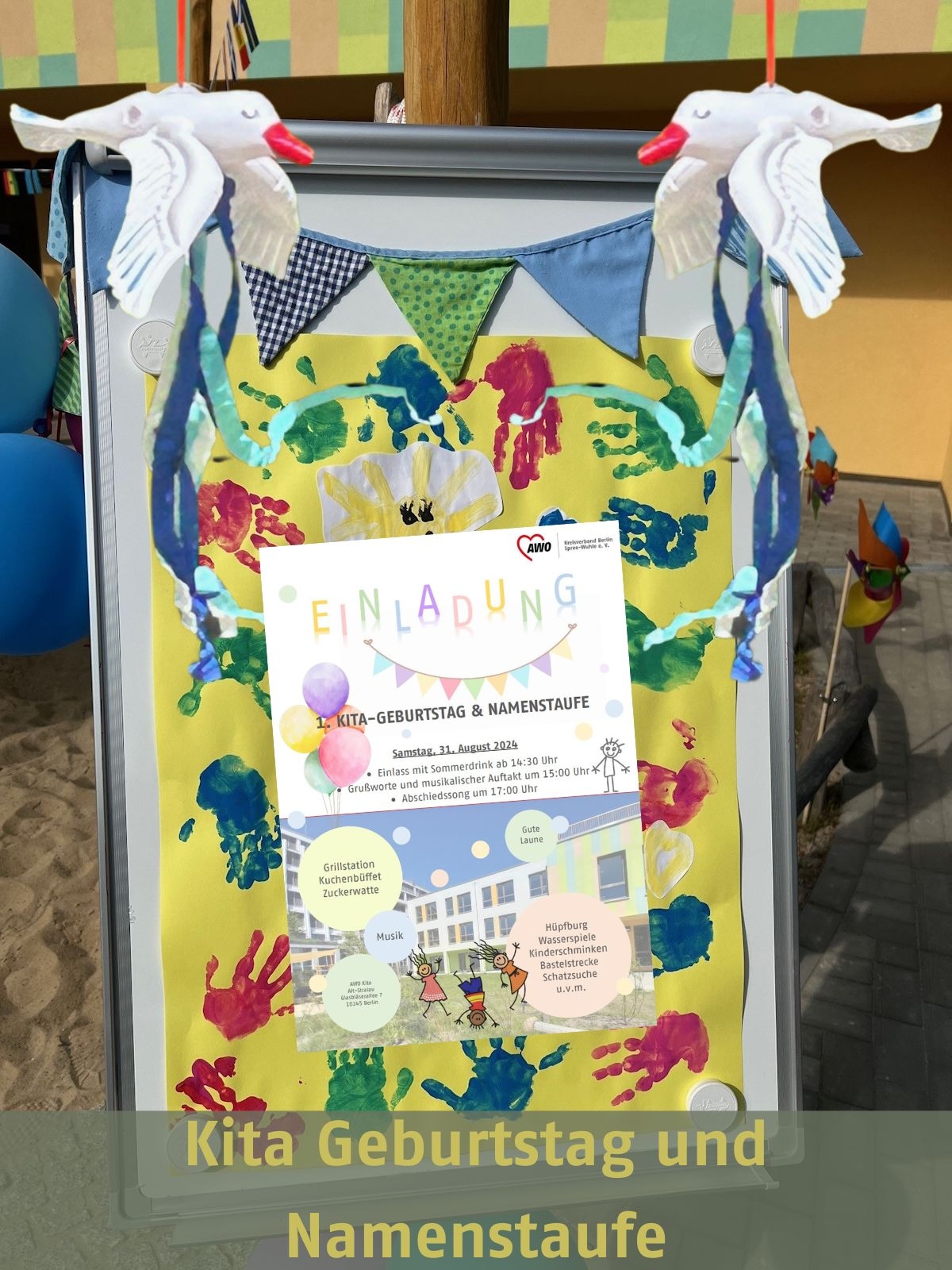 Es ist erstaunlich, wie schnell doch ein Jahr vergehen kann. Scheinbar erst gestern war die Eröffnung der AWO Kita Alt-Stralau und nun hatte das Kita Team Alt-Stralau schon zur Feier des 1. Geburtstags und zur Namenstaufe am 31. August eingeladen.