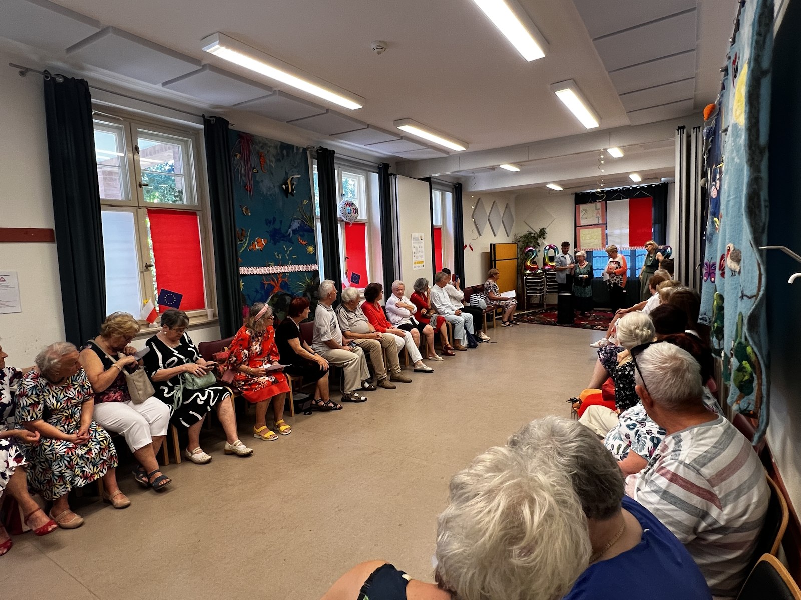 Viele Senior*innen der Gruppe hatten sich zu diesem Jubiläum versammelt, gemeinsam wurde sich an diese lange Zeit erinnert. Moderiert von Ark Lucia waren es vor allem Jola Sieranska, die langjährige Leiterin der Gruppe und die heutige Leiterin, Aleksandra Sloma, die aus der Geschichte und der Gegenwart der Gruppe berichteten, die ein ganz wertvoller Baustein im Gefüge des Begegnungszentrums ist.