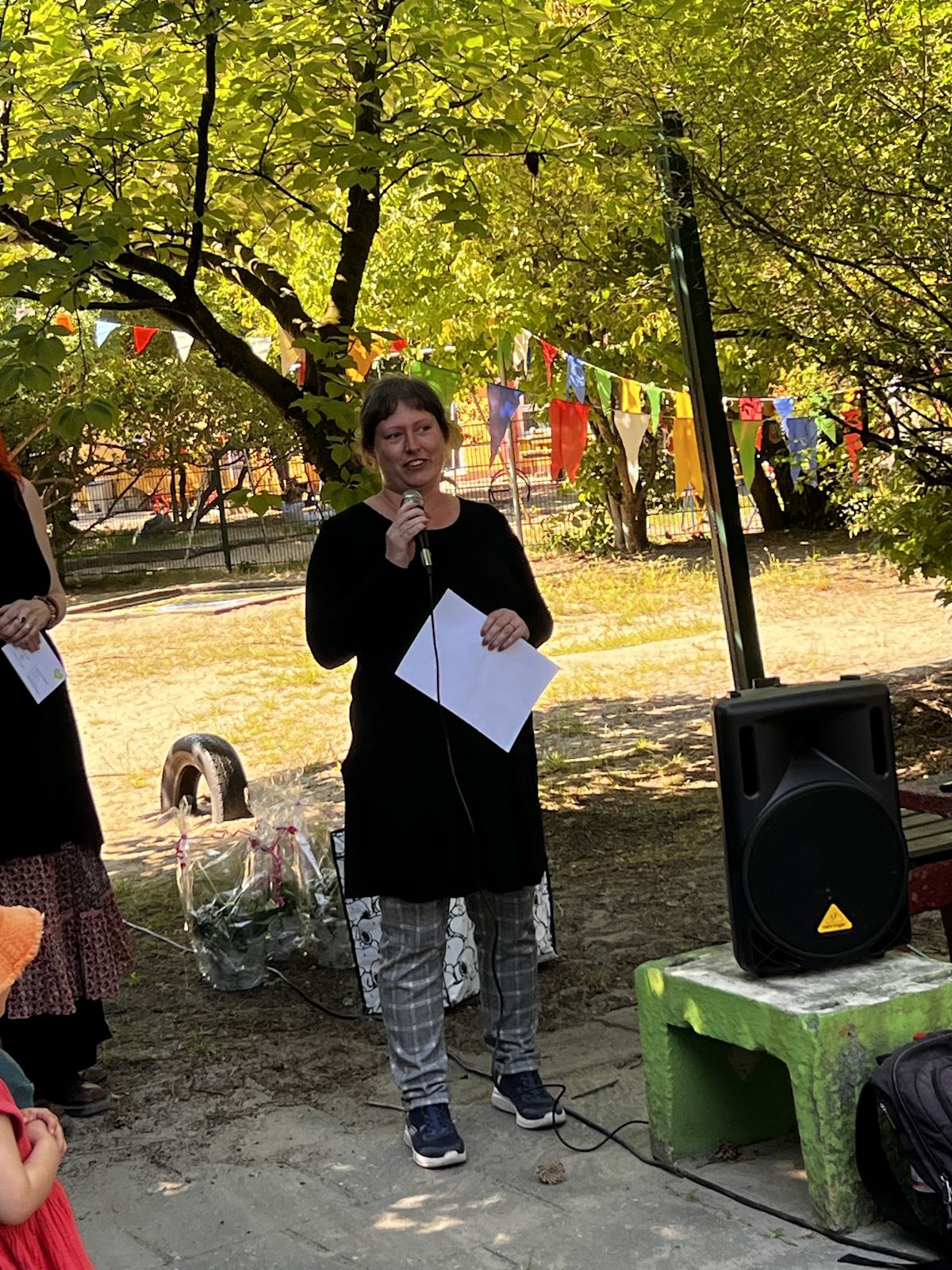 Das Fest startete mit den unausweichlichen Festansprachen. Die Kitaleiterin Frau Pett begrüßte alle ganz herzlich und bedankte sich bei Allen, die das Kitaleben und das Miteinander in der Kita zum Wohle der Kinder alltäglich mit ihrem Engagement und ihrer Unterstützung erst möglich machen. Einen großen Applaus gab es für das gesamte Team Tausendfüßchen und ein besonderes Dankeschön für die Elternvertretung.