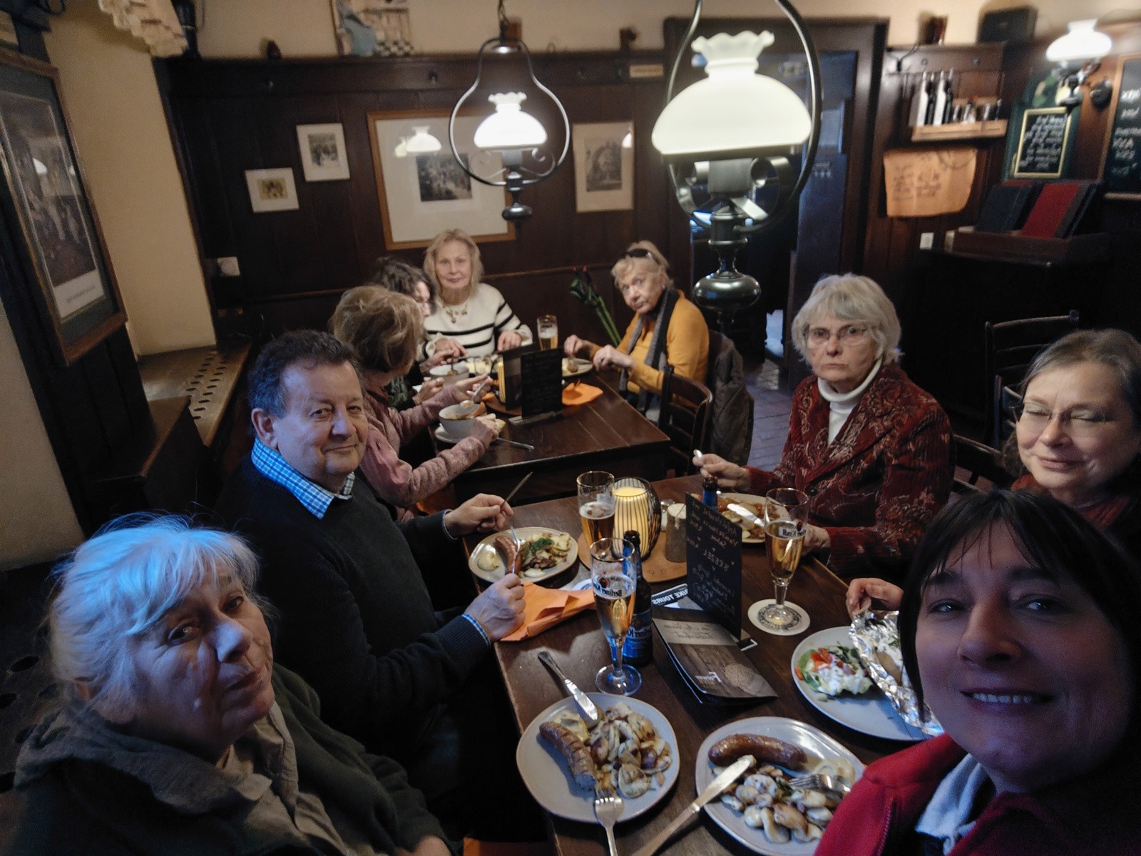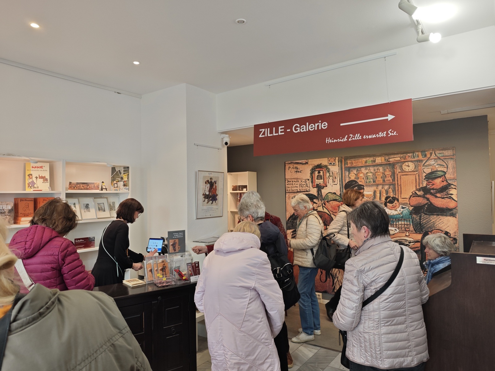 Die Route führte von der Station Jannowitzbrücke zum Märkischen Museum, weiter über die Fischerinsel und schließlich entlang der historischen Gebäude des Nikolaiviertels. Diese Stationen zeigen Berlin so, wie es einst im 14.–15. Jahrhundert war — ein lebendiges Zusammenspiel von Geschichte und Gegenwart. Vor dem Museumsbesuch wurde noch eine angenehme Pause mit gemeinsamen Mittagessen inmitten der eindrucksvollen Zeichnungen von Heinrich Zille gemacht. Diese besondere Umgebung schuf das Gefühl, als seien die Figuren und Szenen des alten Berlins selbst anwesend und begleiteten die Gruppe. Das Essen bot außerdem Zeit für Gespräche, Austausch und eine kleine Erholung vor dem nächsten Programmpunkt. Danach wurde das Zille Museum besucht. Die Teilnehmenden erhielten Einblicke in das Leben und Schaffen Heinrich Zilles, dessen Werke den Geist des alten, unverfälschten Berlins festhalten. Ein Film über seinen künstlerischen Weg ermöglichte ein noch tieferes Verständnis seines Beitrags zur Berliner Kulturgeschichte.