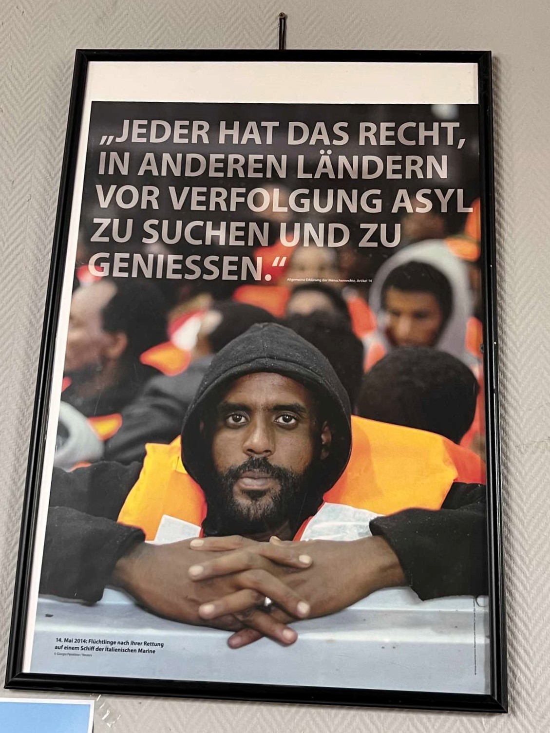 Seit Kurzem hängt in den Fluren des Hauses die Ausstellung „Asyl ist Menschenrecht“, eine beeindruckende Ausstellung mit Informationen zum Thema Flucht uns Aysl, herausgegeben von PRO ASYL.
