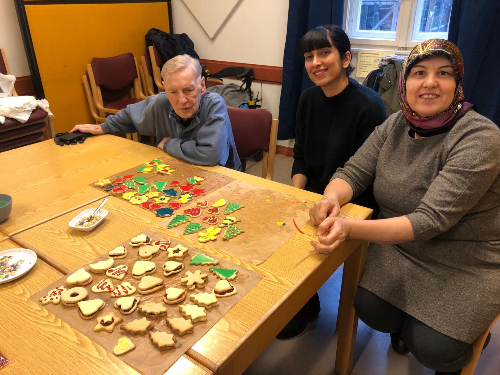Hier ein paar Impressionen aus dem Begegnungszentrum in Kreuzberg, wo ein zwei Tagen bei Tee und Kaffee Kekse gebacken wurden. Allen die kamen und mitmachten hat es viel Spaß gemacht: Teilnehmer*innen vom Sprachcafé, Ehrenamtlichen, Mitgliedern des Behindertenbeirats, Senior*innen und Familien aus der Erstaufnahmeeinrichtung am Warschauer Platz 6.