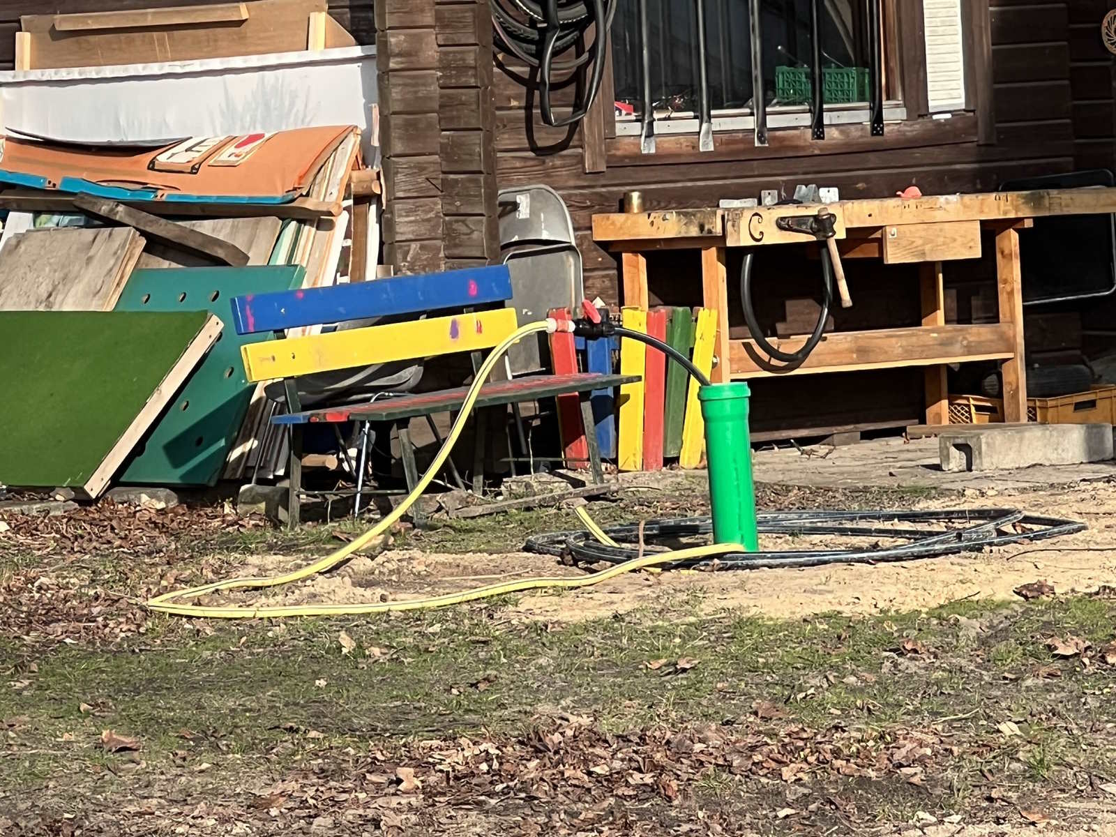 Noch immer wird viel Erde, Sand und Kies bewegt. Damit auf der Oberfläche gepflastert und gestaltet werden kann, sind im Untergrund schon die Leitungen verlegt, was man z.B. an der Fahrradwerkstatt sieht, die jetzt einen Frischwasseranschluss hat.