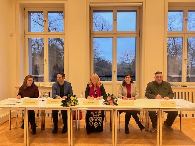 Staatsekretär Aziz Bozkurt für die Senatverwaltung Arbeit, Soziales, Gleichstellung, Integration, Vielfalt und Antidiskriminierung und Juliane Witt, Bezirksstadträtin für Soziales und Bürgerdienste würdigten den neuen Stadtteilzentren-Vertrag als ein starkes Signal für starke Nachbarschaften und die soziale Infrastruktur in Marzahn-Hellersdorf. Sie betonten die Bedeutung der Stadtteilzentren als zentrale Orte der Begegnung, Beratung und Teilhabe, als Orte an denen Menschen zusammenkommen und sich aus Einsamkeit Gemeinschaft entwickeln kann.