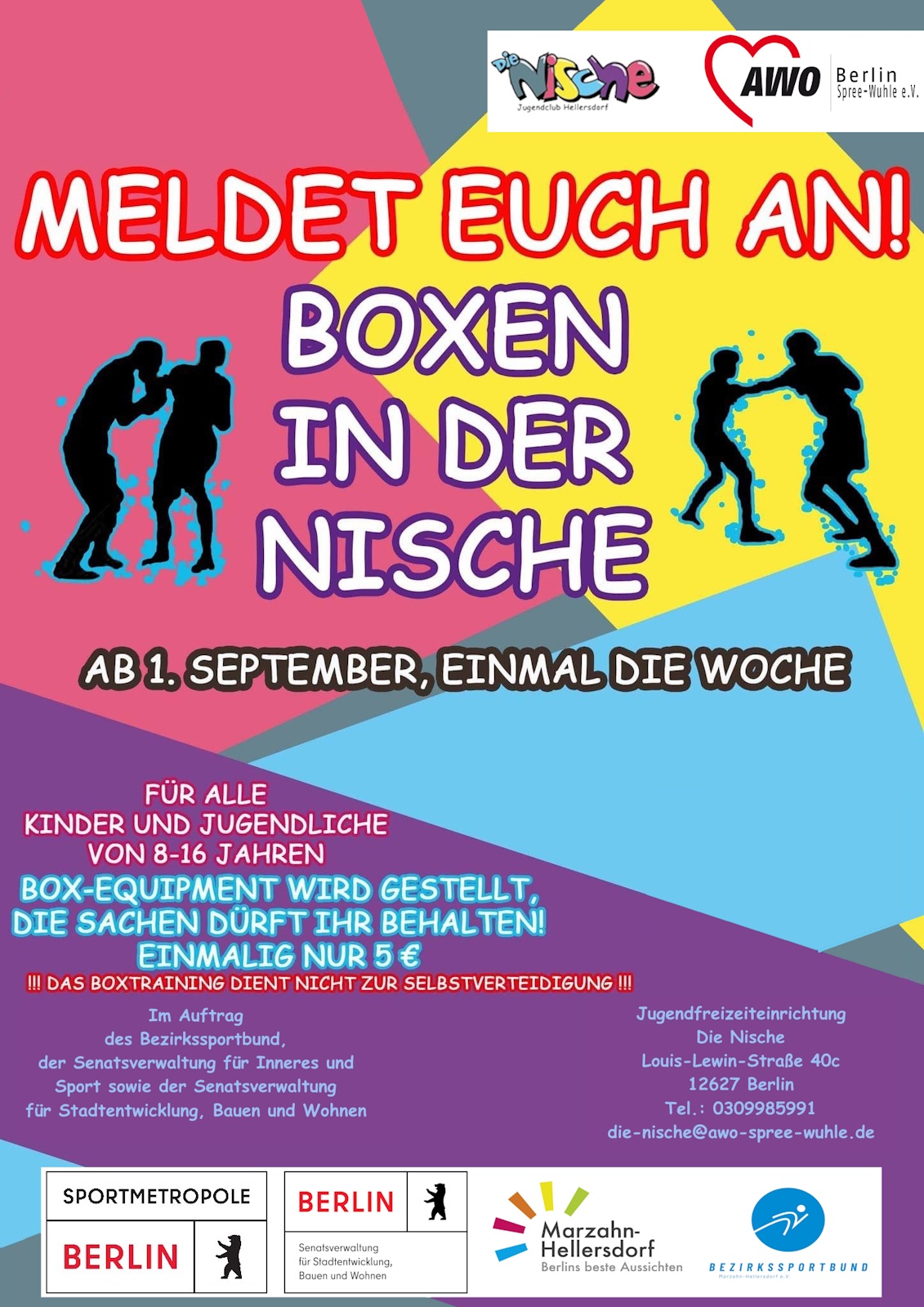 Seit September gibt es eine Boxfitness AG in der Kinder- und Jugendfreizeiteinrichtung Die Nische. Das Angebot wird organisiert im Auftrag des Bezirkssportbundes und wird finanziert aus Mitteln des Programms Sozialer Zusammenhalt.