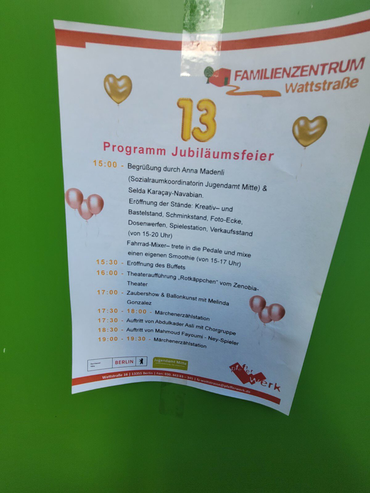 13 Jahre Familienzentrum Wattstraße, das war ein sonniger Tag und eine richtig schöne Feier mit vielen Akteur*innen und einem bunten und abwechslungsreichen Kinder- und Eltern-Programm.