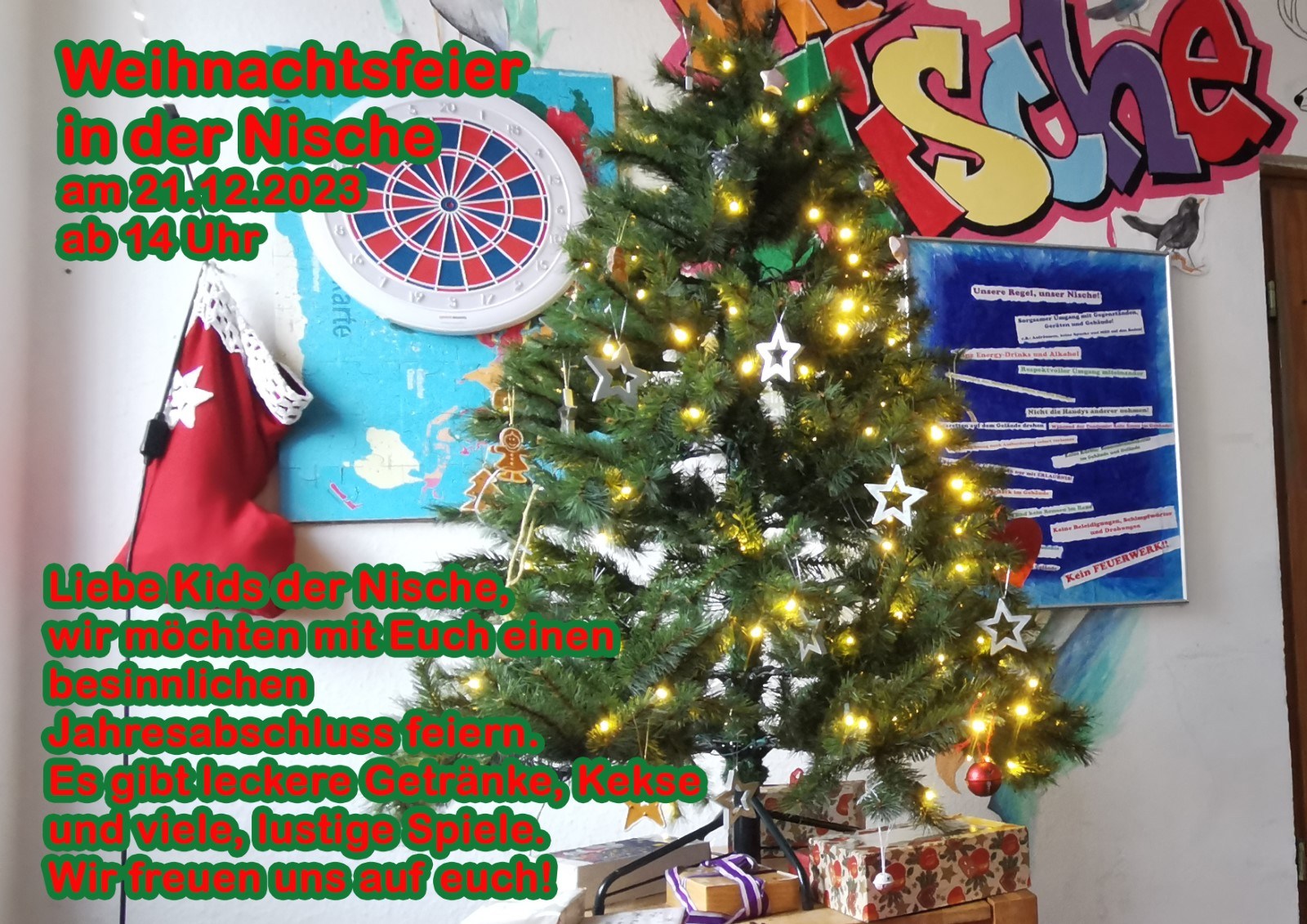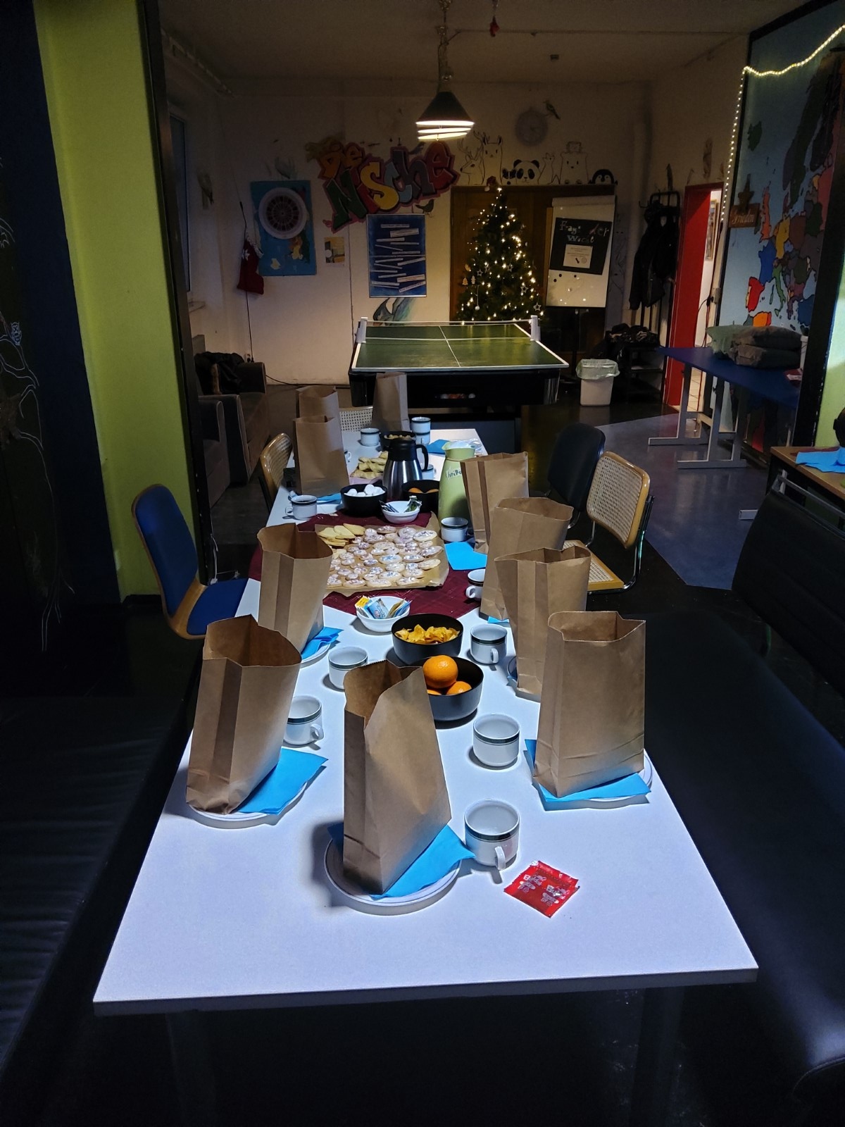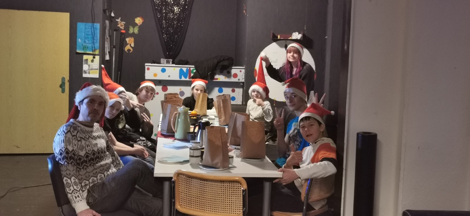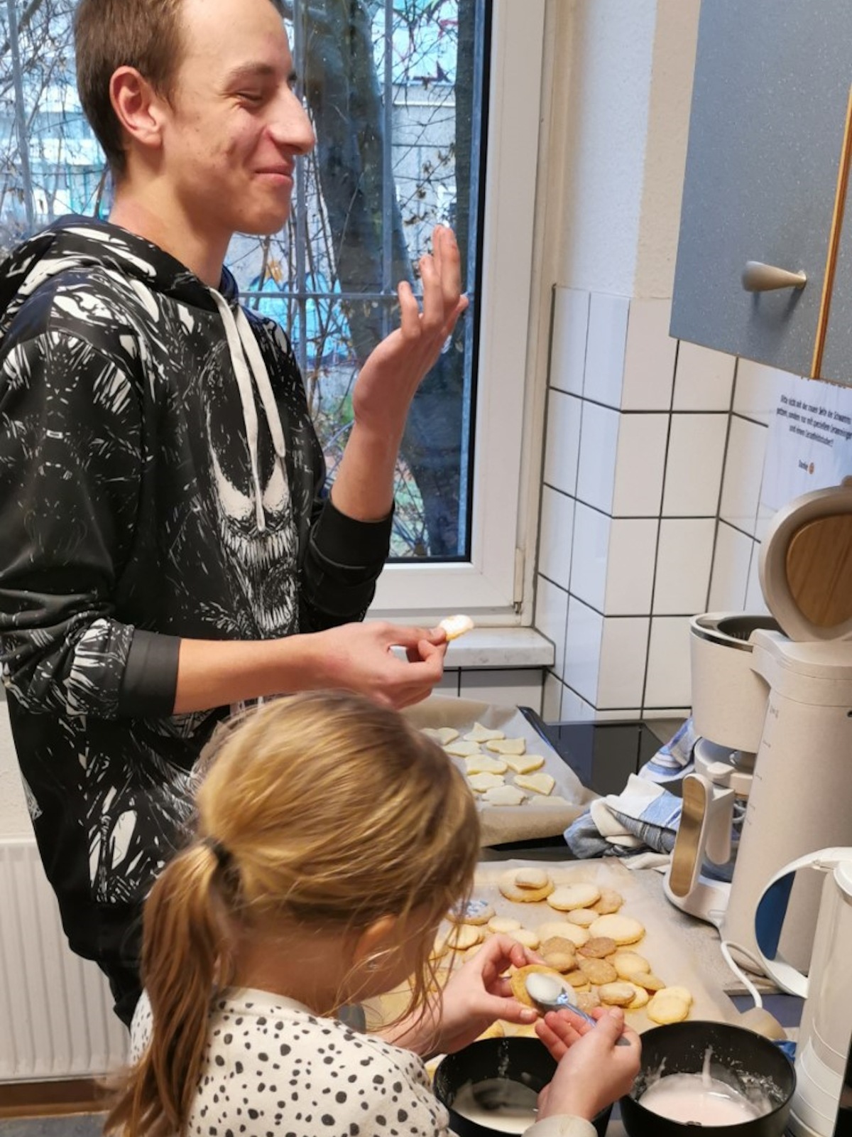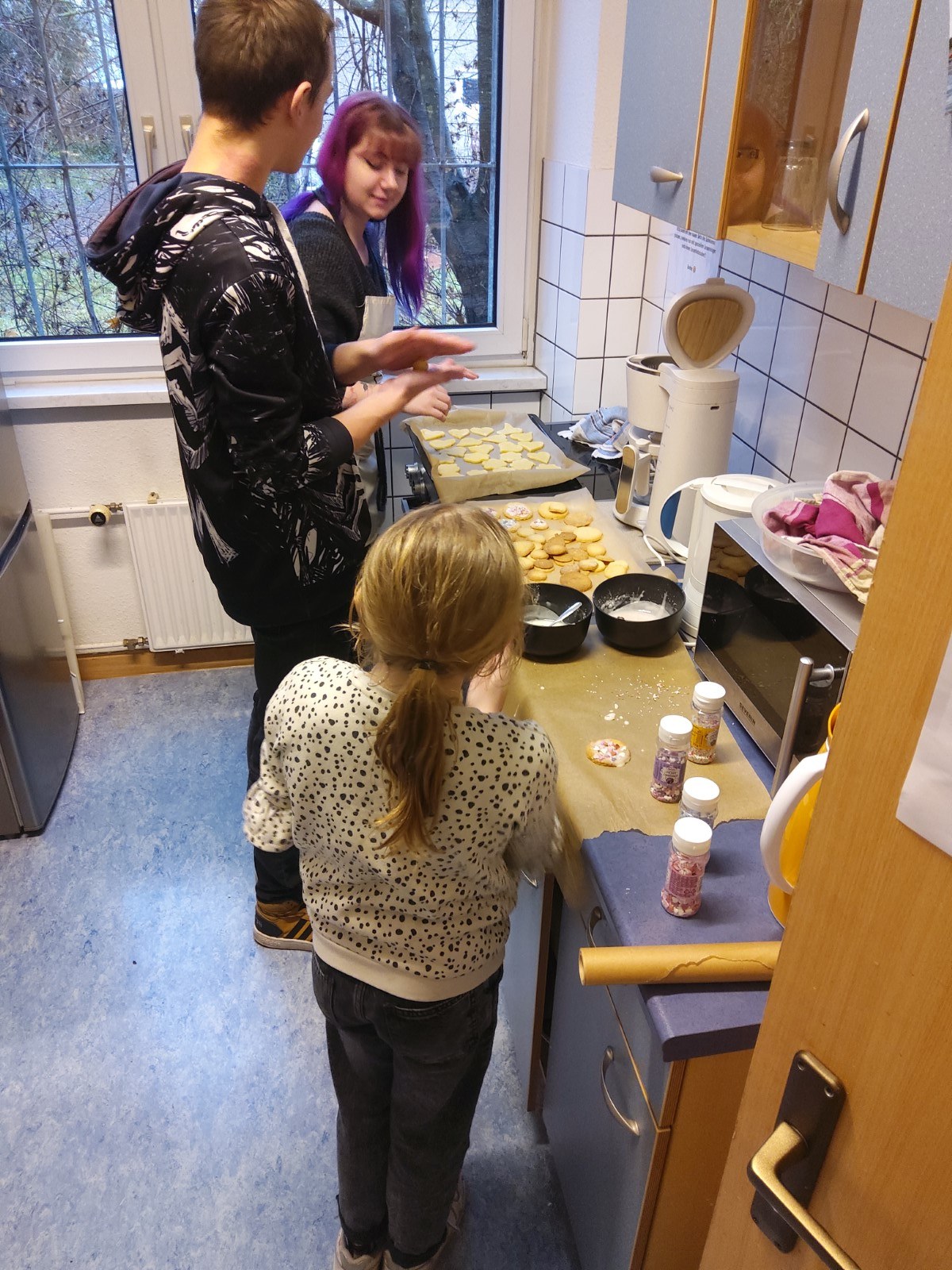 Die Küche verwandelte sich in eine Weihnachtsbäckerei, in der leckere Plätzchen gebacken wurden. Die Plätzchen kamen später in die Geschenktüten für die Weihnachtsfeier am 21. Dezember, die mit viel Spaß, Keksen, leckeren Getränken und Spielen begangen wurde.