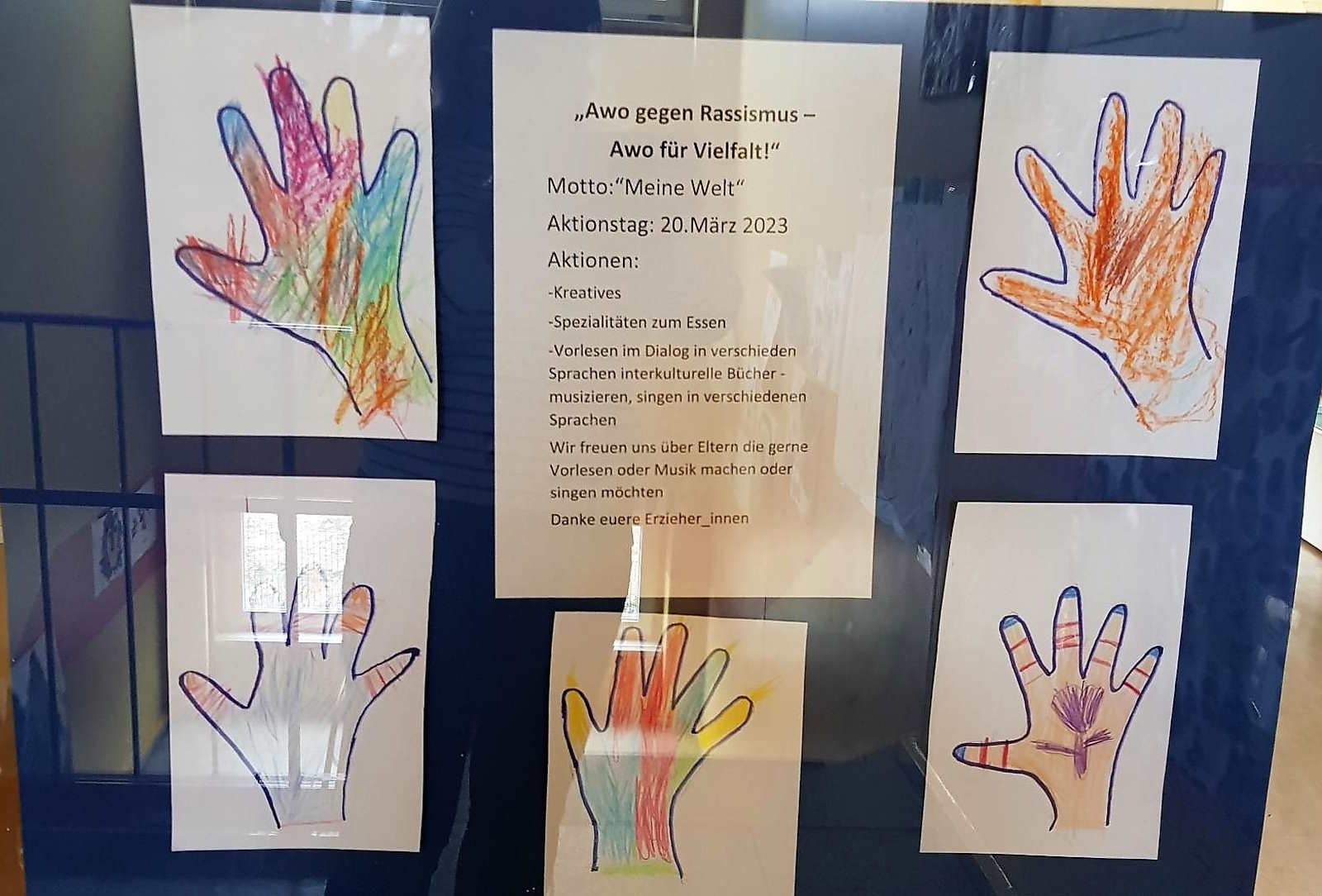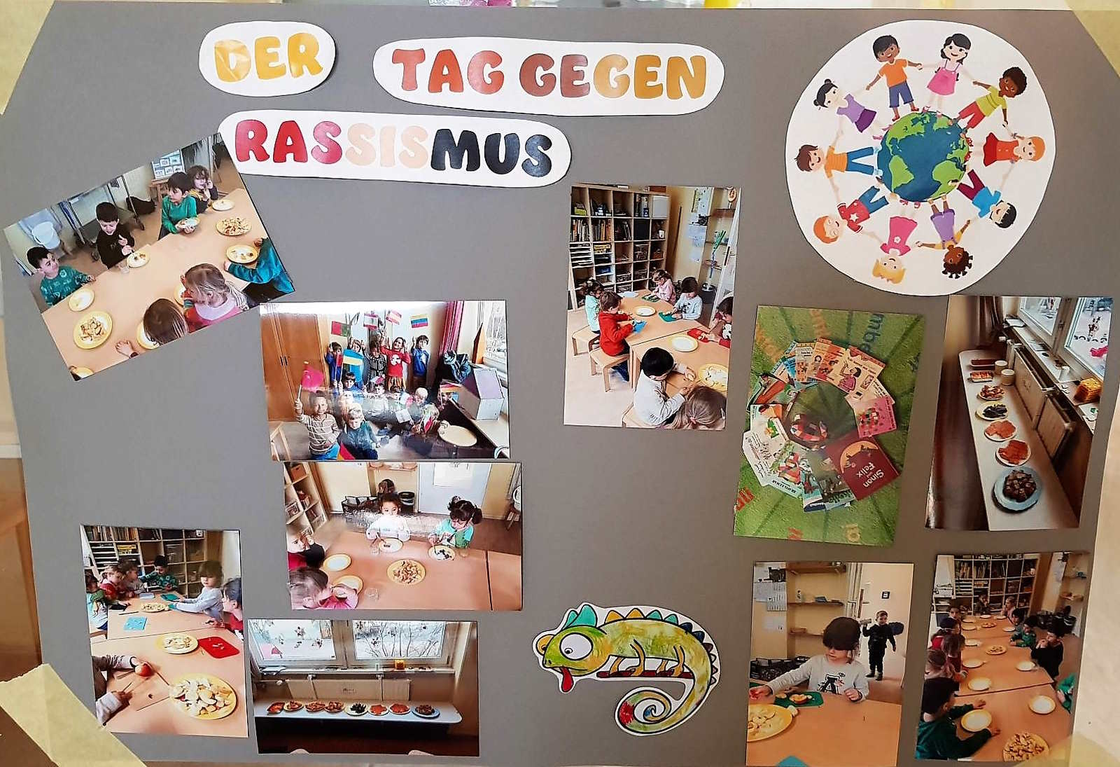 Die Kinder und die pädagogischen Fachkräfte der Kita Lingulino haben seit 20. März während der Internationalen Woche gegen Rassismus und Diskriminierung Flagge gezeigt. Sie haben sich in vielen Gesprächen, in Morgenkreisen und Angeboten viel mit dem Thema Vielfalt beschäftigt. So waren mehrsprachiges Vorlesen im Dialog, Vorstellen interkultureller Bilderbücher, musikalische mehrsprachige Angebote, interkulturelle Arbeit im Atelier und im Kinderrestaurant mit den Themen Rassismus, Diskriminierung und Vielfalt verbunden. Auch die jüngsten Kinder waren mit dabei. Ein Dankeschön gilt allen Eltern, die die Kita mit kulinarischen Speisen aus verschiedenen Ländern unterstützt haben.