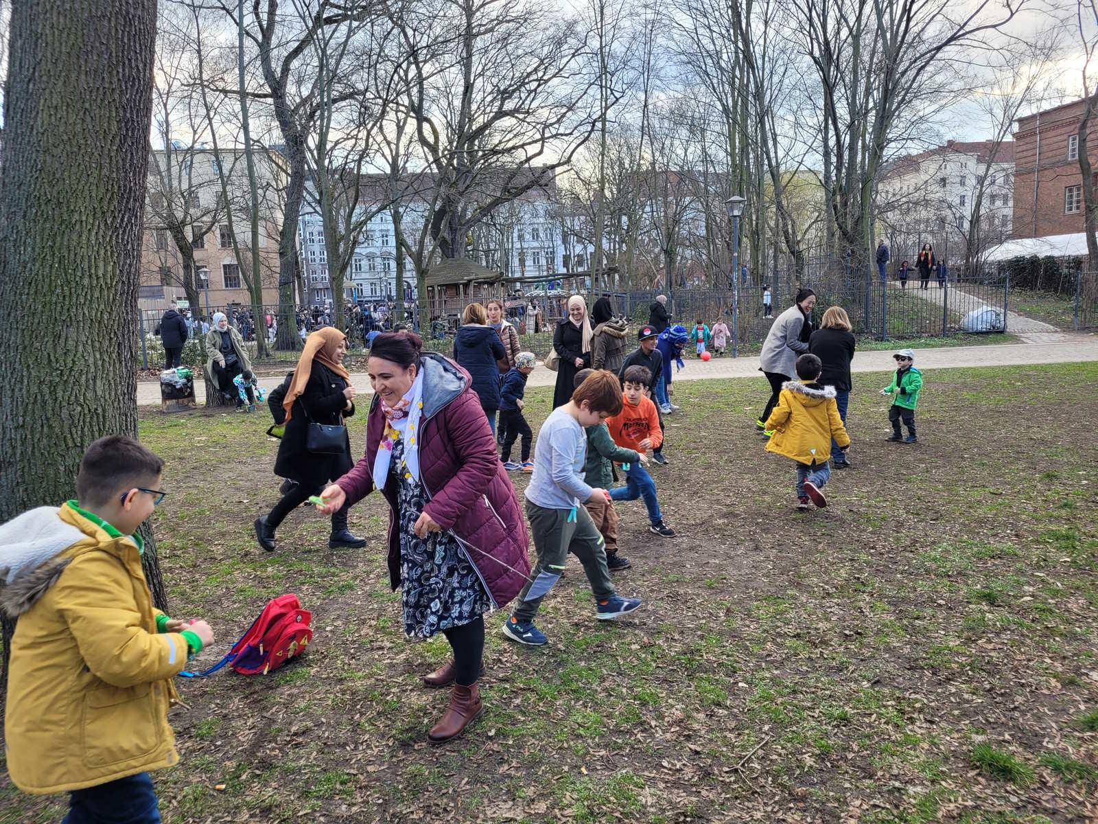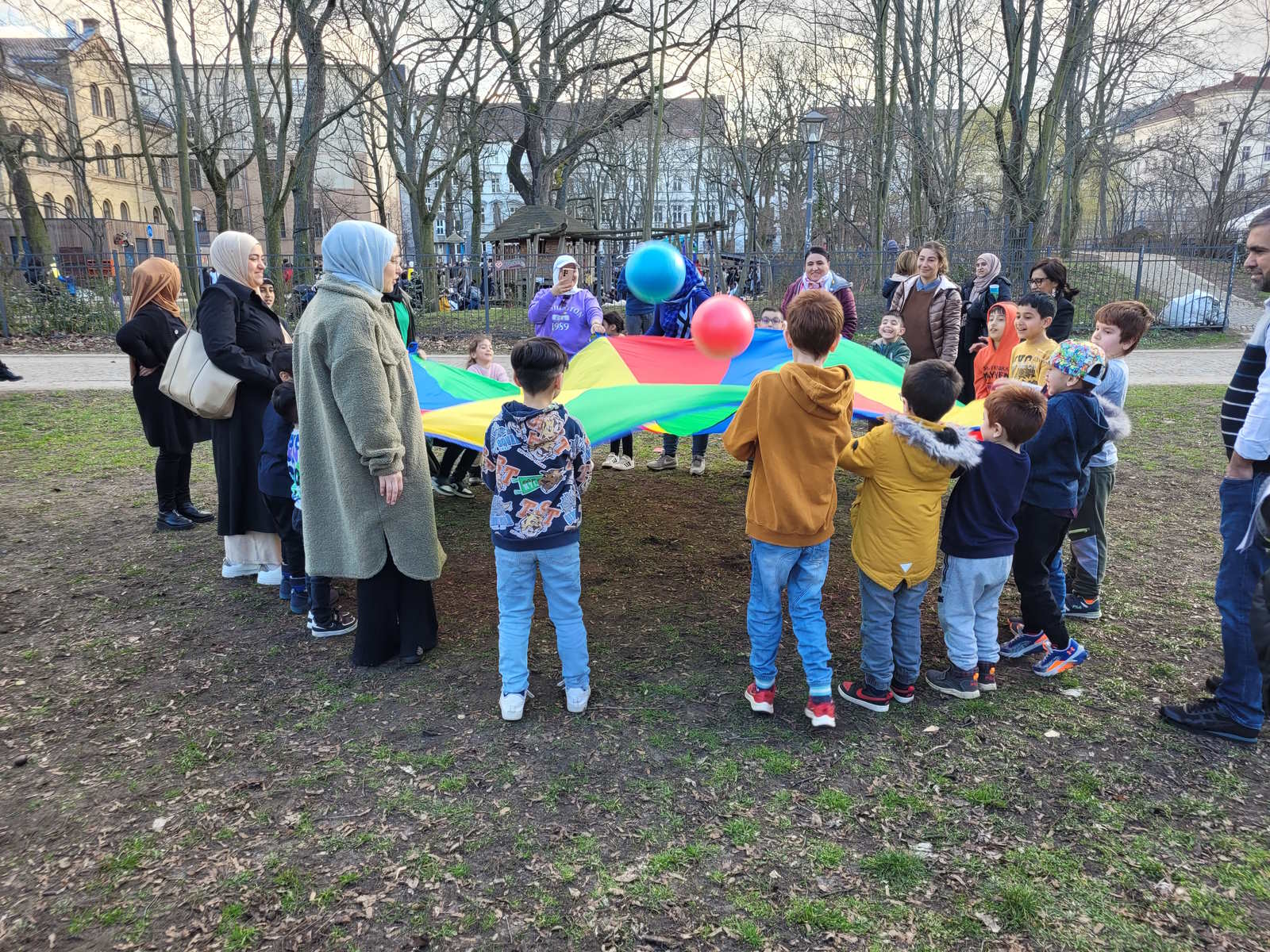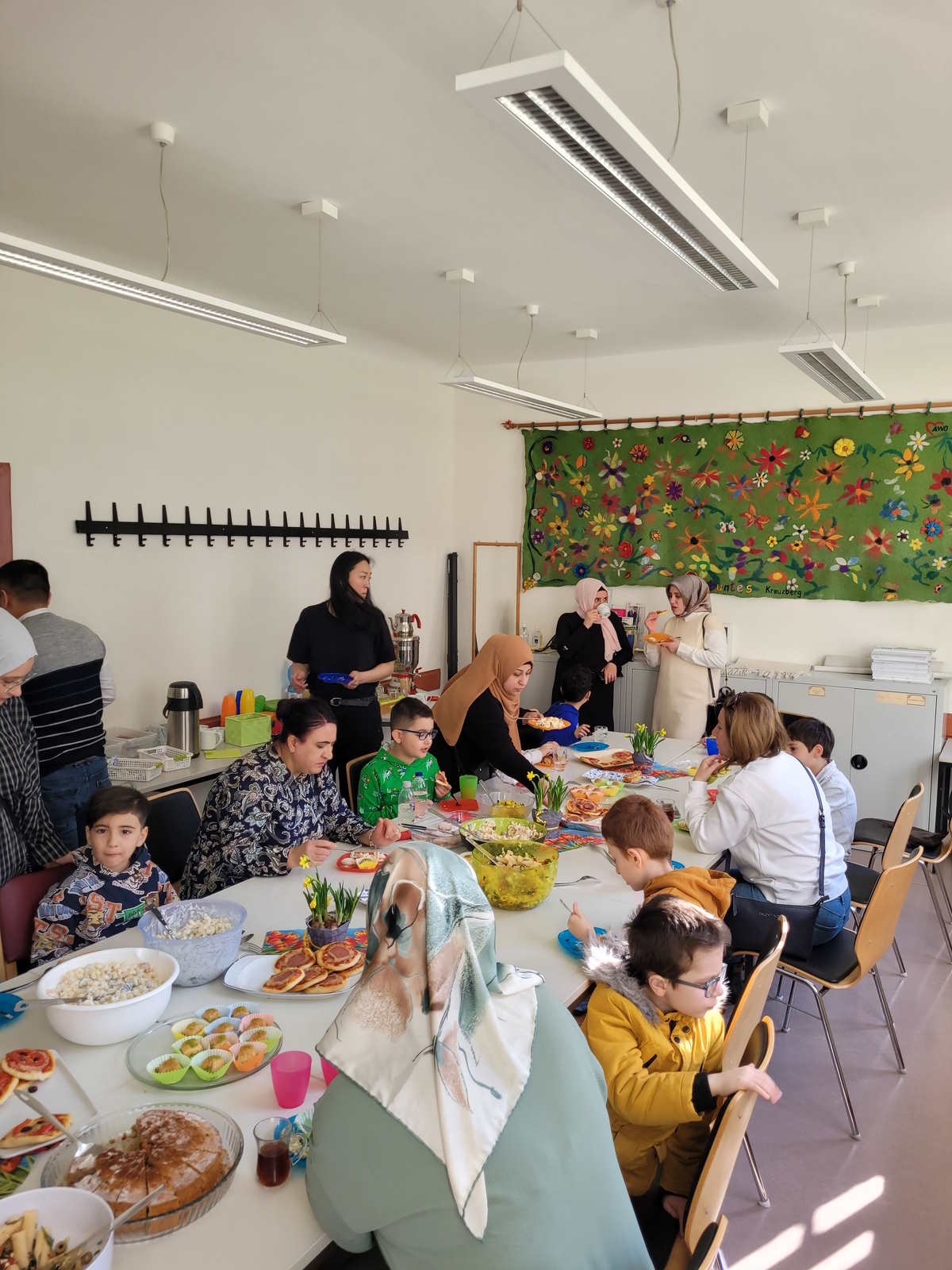 Im AWO Begegnungszentrum Adalbertstraße gab es ein leckeres Buffet und nachdem sich alle gestärkt hatten, ging es bei schönem Frühlingswetter raus ins Freie zum Spielen. Das gemeinsame Spielen hat allen sehr viel Freude bereitet. Es war eine schöne Atmosphäre, es wurde ausgelassen gespielt, getobt und viel gelacht.