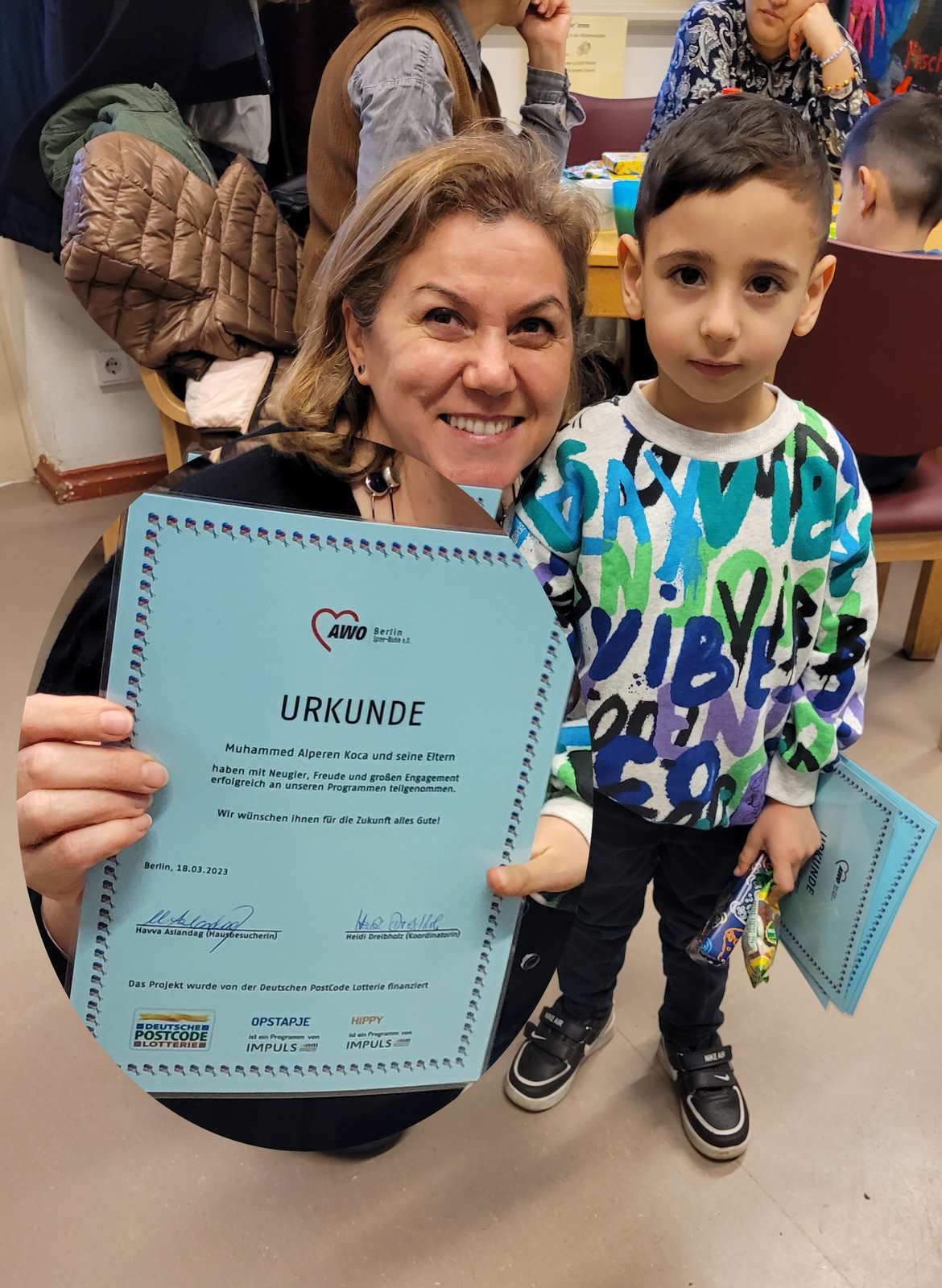 Am 18. März war es endlich wieder so weit. Kinder und Eltern aus Mitte und Friedrichshain-Kreuzberg, die Teilnehmer*innen der aktuellen HIPPY- und Opstapje -Programme konnten zusammen mit den Fachkräften ihren erfolgreichen Abschluss feiern.