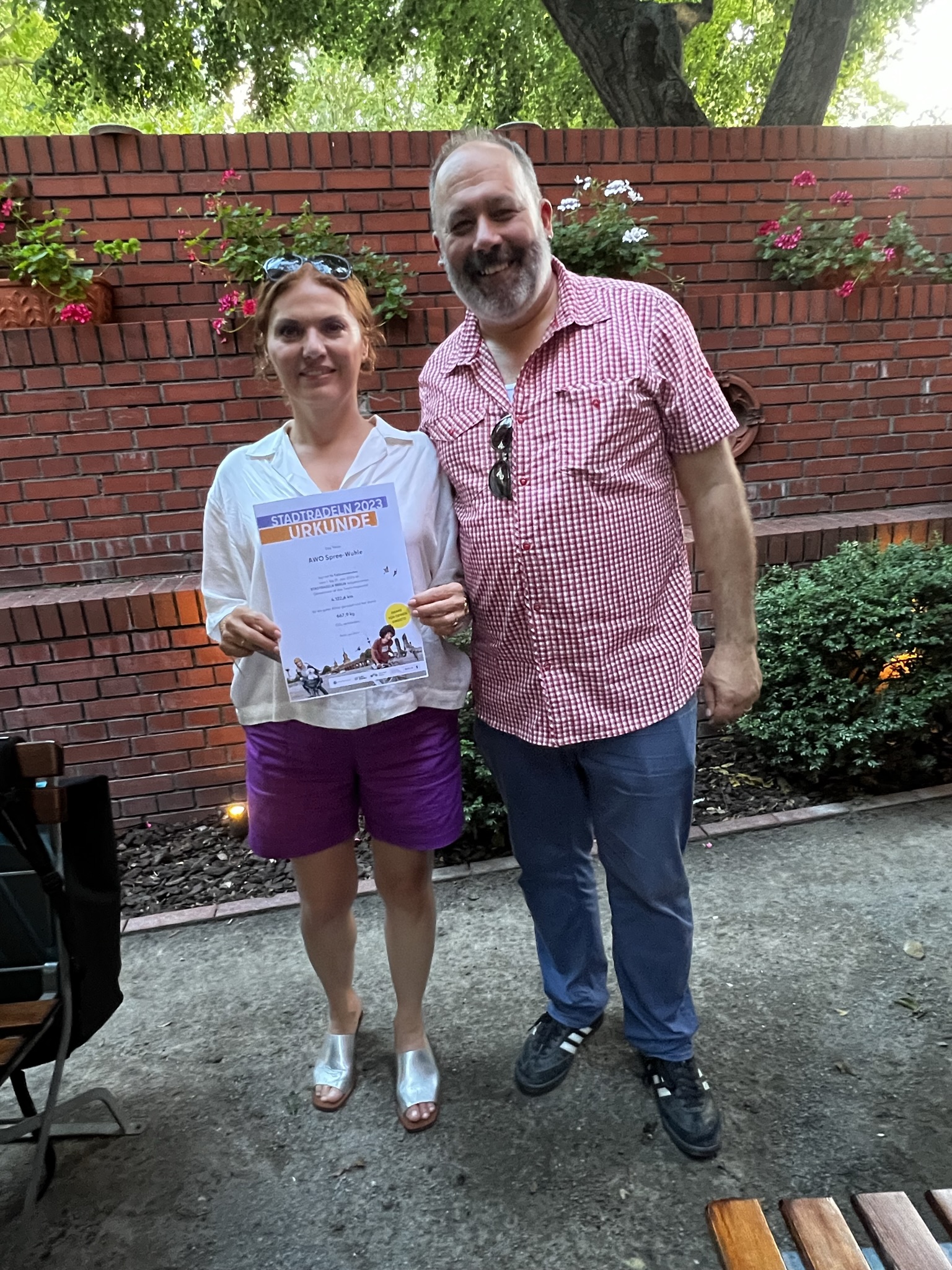 Anlässlich des Sommerfests der Mitarbeiter*innen der AWO Spree-Wuhle haben Vorstand und Geschäftsführung dem Stadtradeln Team AWO Spree-Wuhle Dankeschön für den großartigen Einsatz gesagt.