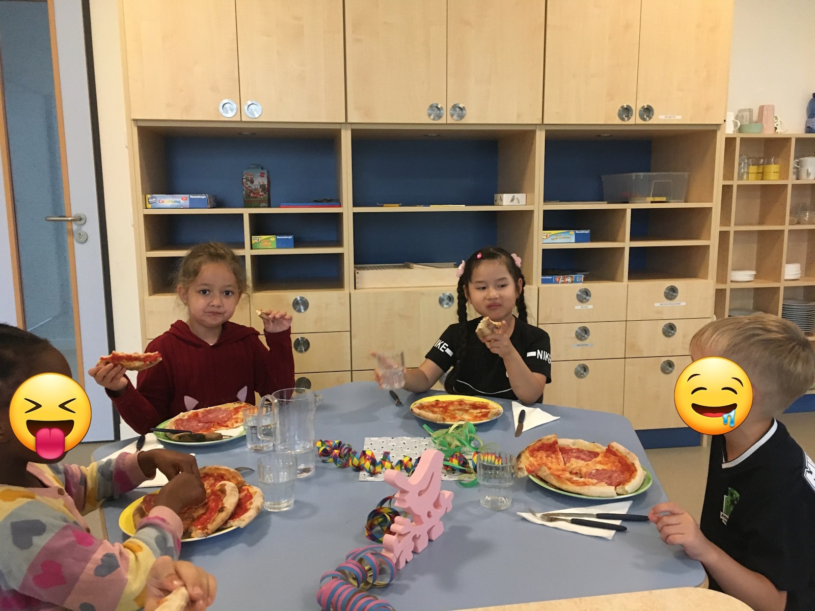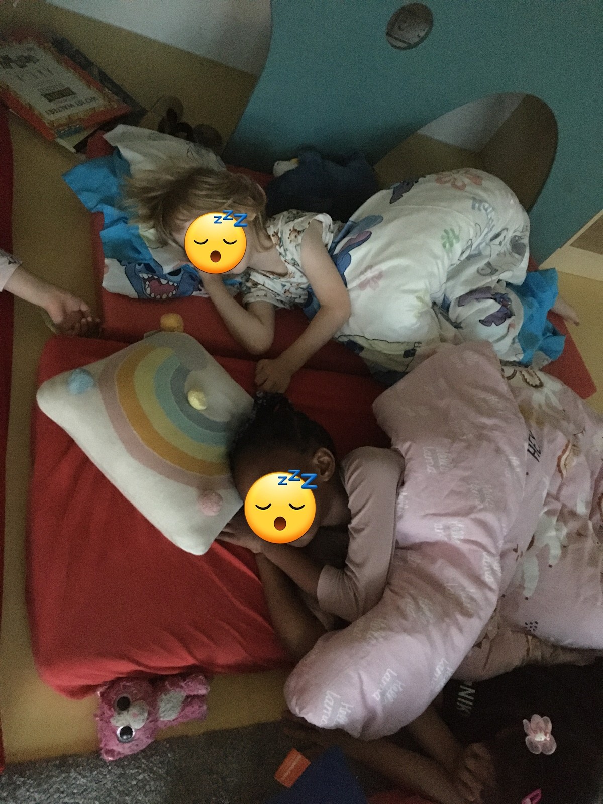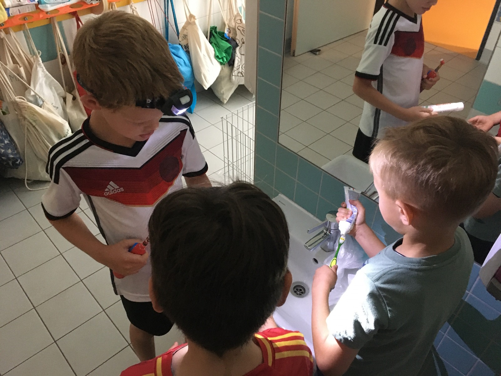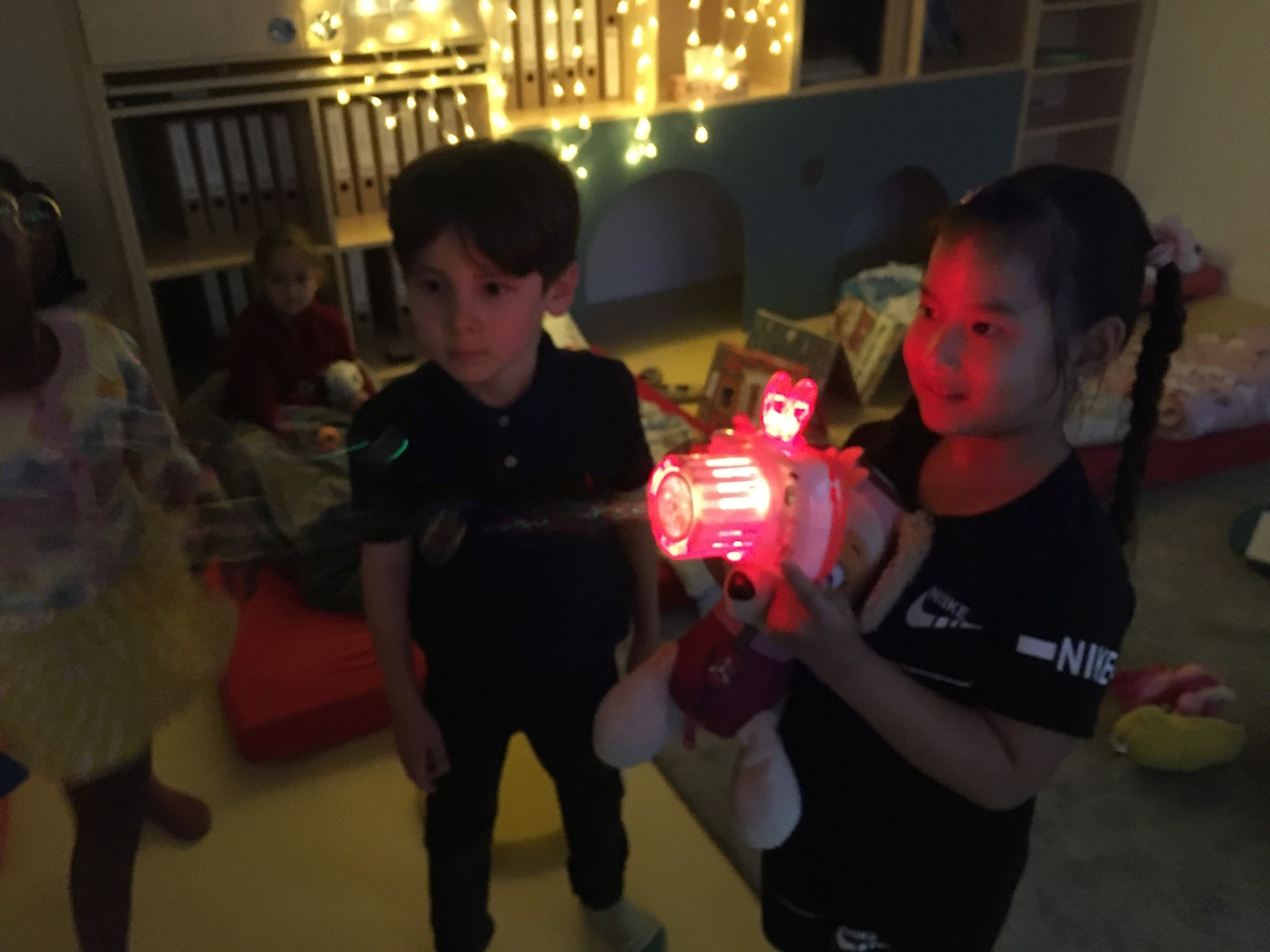 Zurück in der Kita wurde es dann gemütlich: Zähne putzen, Schlafanzug an, Bücher anschauen, Taschenlampenspiele spielen, eine kleine Runde „Wahrheit oder Pflicht“ und schließlich ein Film wie im echten Kino – bevor alle zufrieden und ohne Heimweh einschliefen.