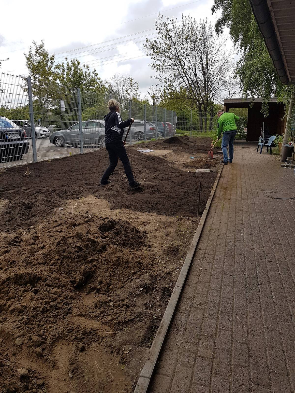 Eine vermüllte Fläche neben einem Parkplatz hat schon lange gestört. Dort wurde viel Müll, Papier, Flaschen usw.. abgeladen. In Eigeninitiative hat die Kita diesen Dreck beseitigt. Wildes Gesträuch wurde gerodet, der Zaun versetzt, die Müllfläche ist weg, das Kitagrundstück wurde ein wenig erweitert. Die neue Fläche soll vielfältig genutzt werden.
