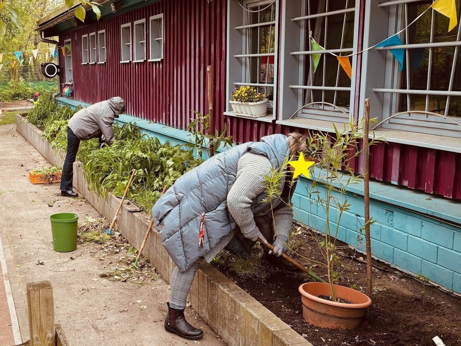 Die AWO Kita Wuhlehopser in der Wuhletalstraße hat gemeinsam mit Eltern, Anwohnern und Kindern eine große Grünflächenaktion gestartet.