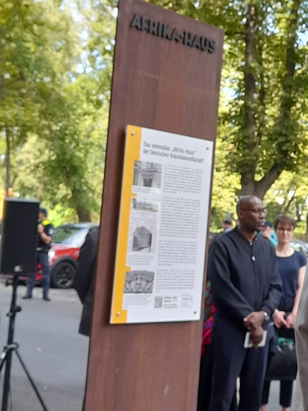 Am 20. September 2023 wurde im Beisein von Kultursenator Joe Chialo am ehemaligen Sitz der Deutschen Kolonialgesellschaft – Am Karlsbad 10, 10785 Berlin – dem damals so genannten „Afrika-Haus“ eine Erinnerungsstele eingeweiht und im Anschluss im heutigen Afrika-Haus in der Bochumer Str. 25 zu Berliner/deutscher Kolonialgeschichte diskutiert.