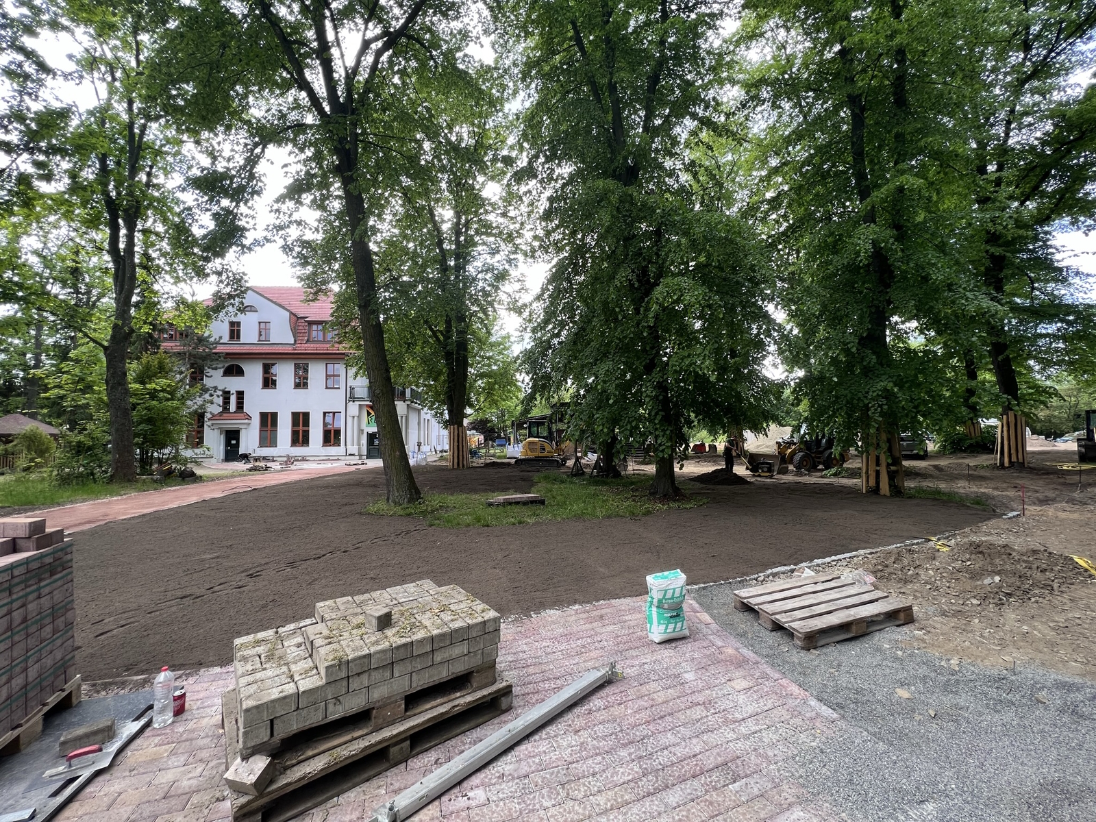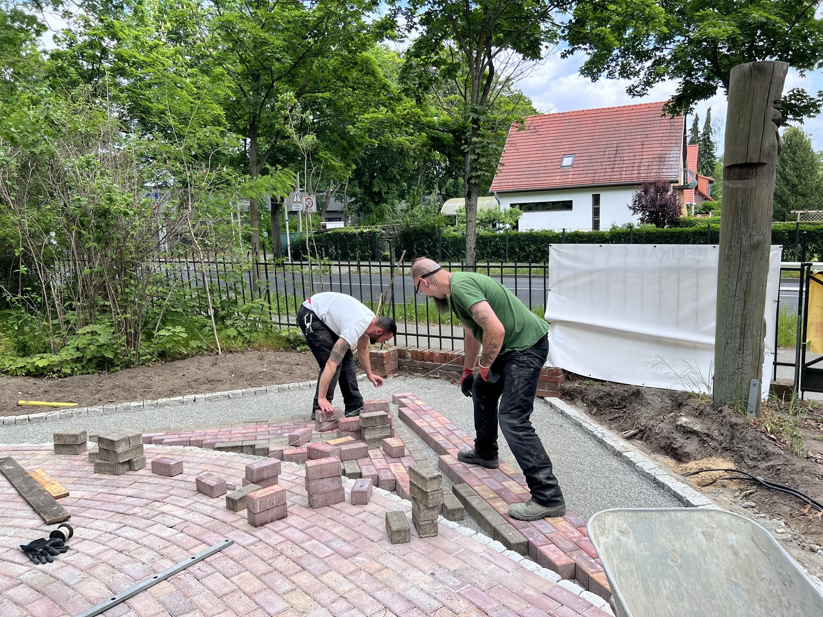 Von der Terrasse vorm Haupteingang der Villa zieht sich nun der Hauptweg zum zukünftigen Eingangstor an der Hellersdorfer Straße. (7, 9)