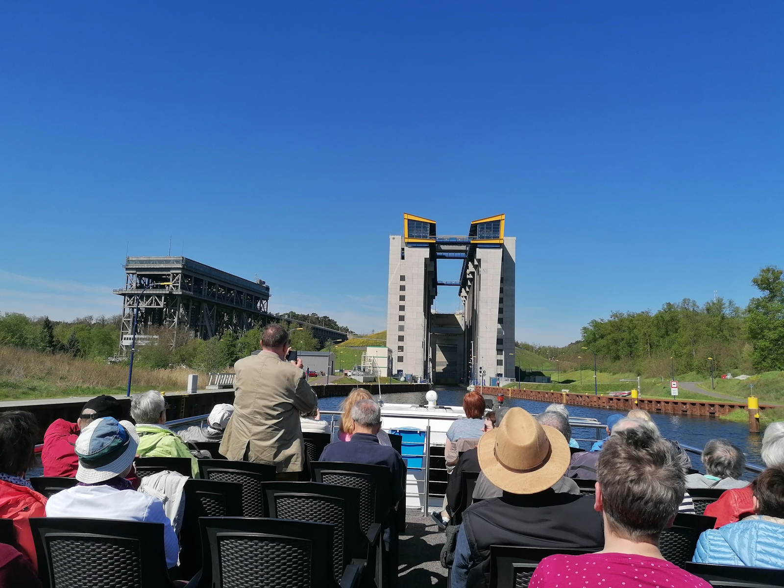 Hoch hinauf durch das neue Schiffshebewerk und zurück hinab durch das alte Bauwerk bot ein besonderes Erlebnis beider einzigartiger Zeugnisse der Ingenieurskunst.