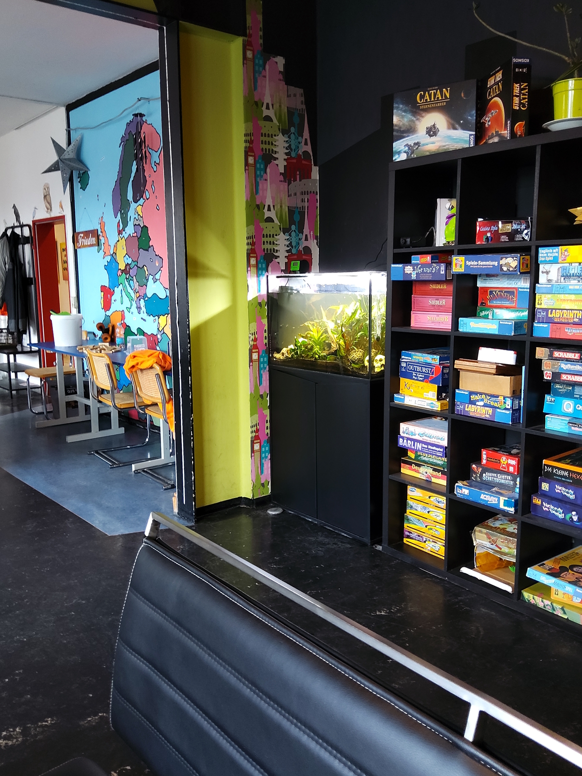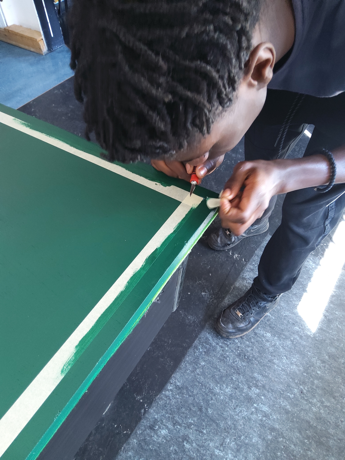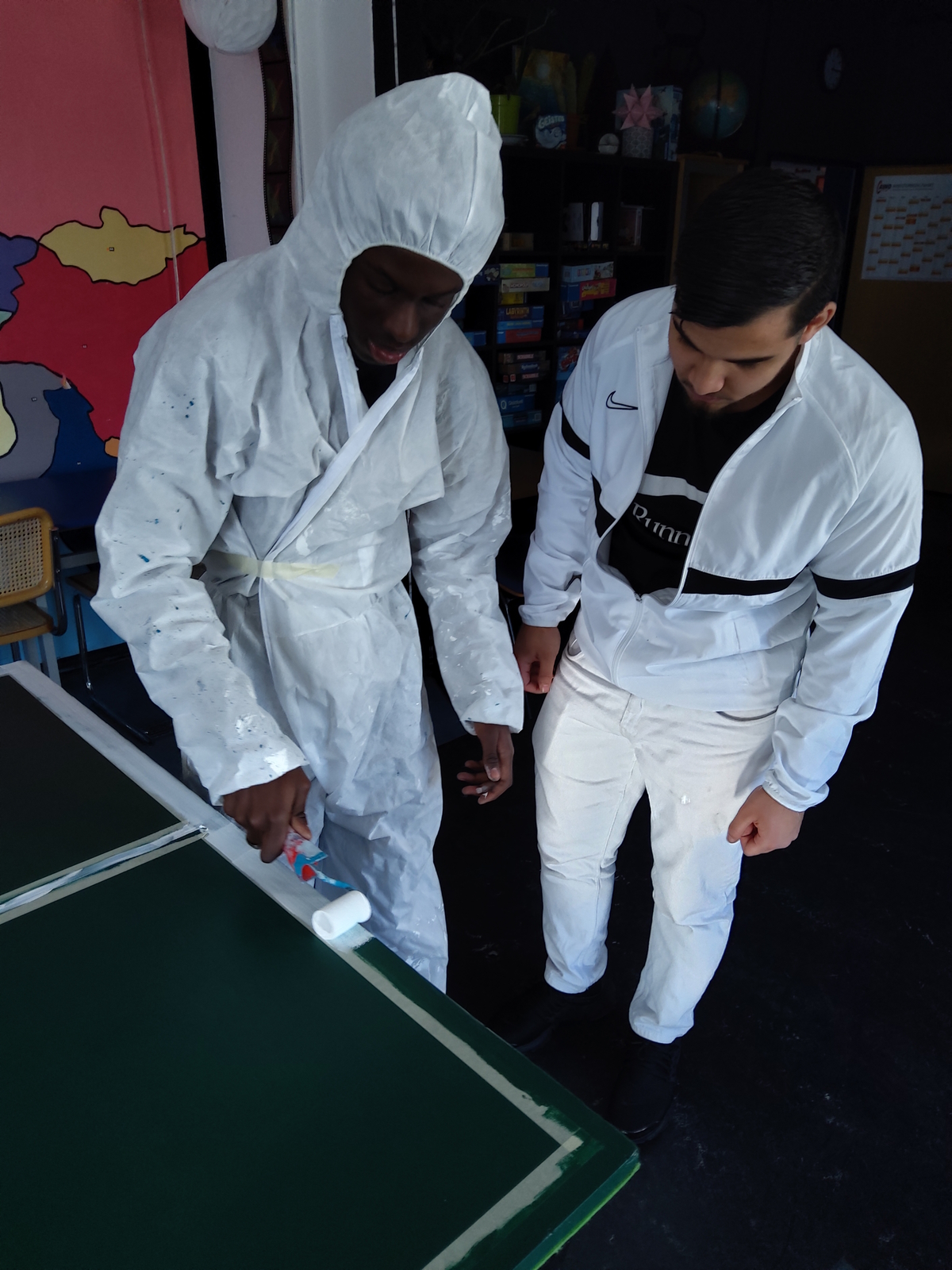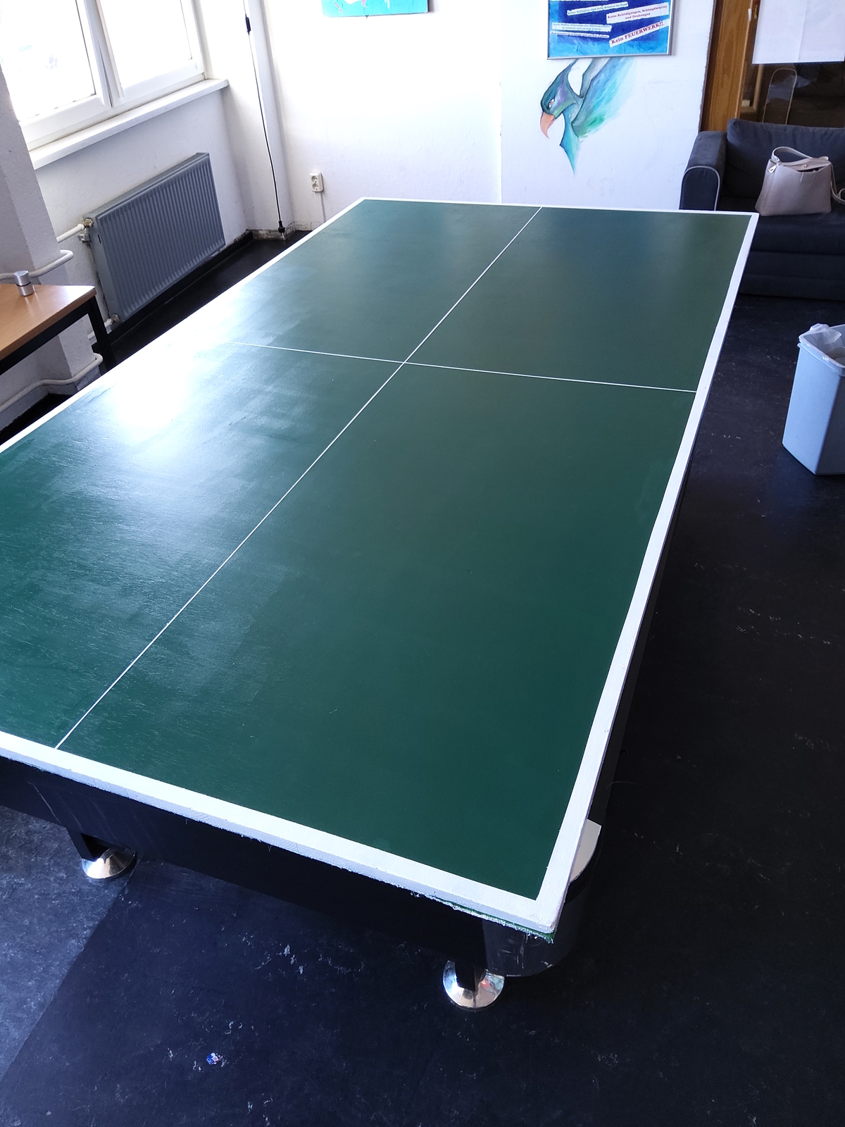 In den Innenräumen haben Schülerpraktikanten und einige andere Jugendliche die Holzabdeckung vom Billardtisch in eine Tischtennisplatte umgewandelt. Hier können nun zwei Sportarten ausgeübt werden. Die Umgestaltung der Platte ist eine wahre Meisterleistung, man beachte die geraden Linien! Einfach großartig!
