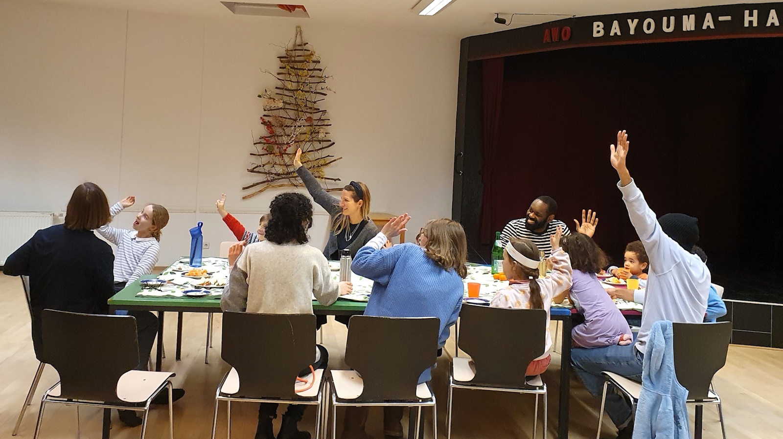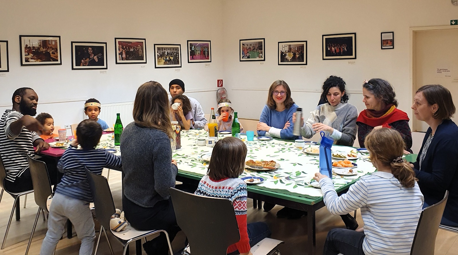 Eltern und Kinder aus dem Französischunterricht im Bayouma-Haus trafen sich im Januar, um den traditionellen Dreikönigskuchen, den sogenannten „Galette des Rois“ zu essen. Der Kuchen der Könige wird traditionell zum Dreikönigstag, auch Epiphaniasfest, gebacken. Das Fest erinnert an den Besuch der Heiligen Drei Könige Caspar, Melchior und Balthasar beim Jesuskind in der Krippe, die ihm am 06. Januar Myrrhe, Weihrauch und Gold als Geschenke brachten.