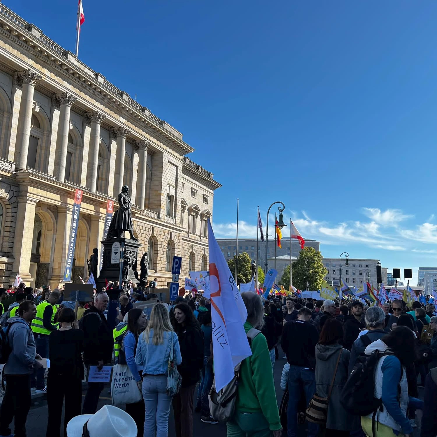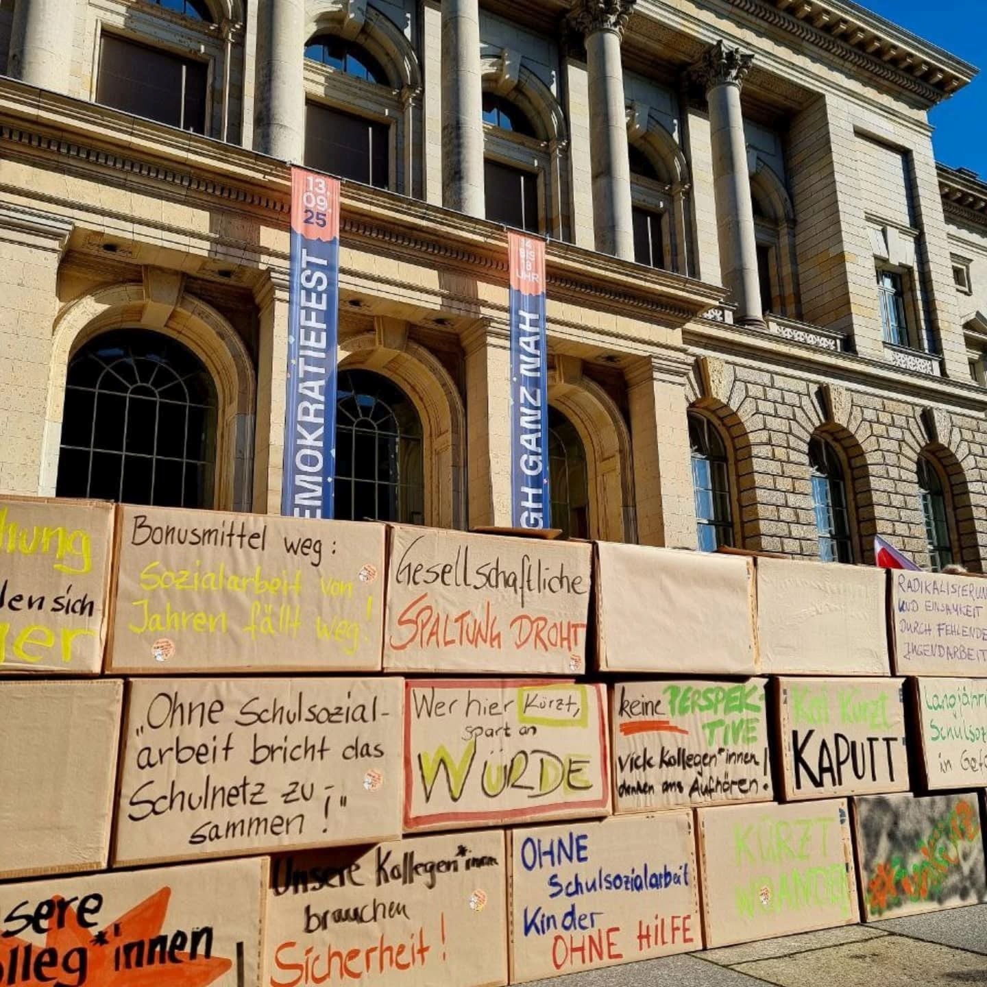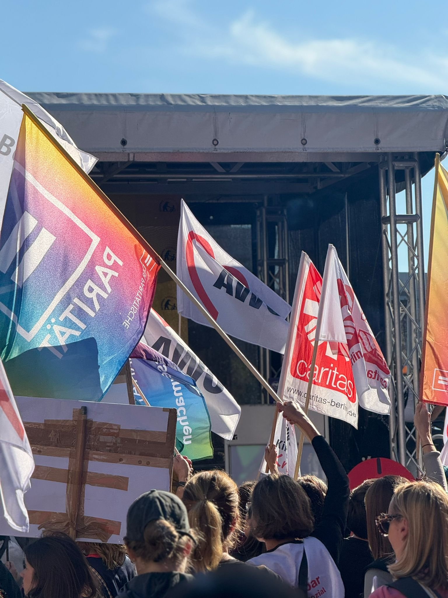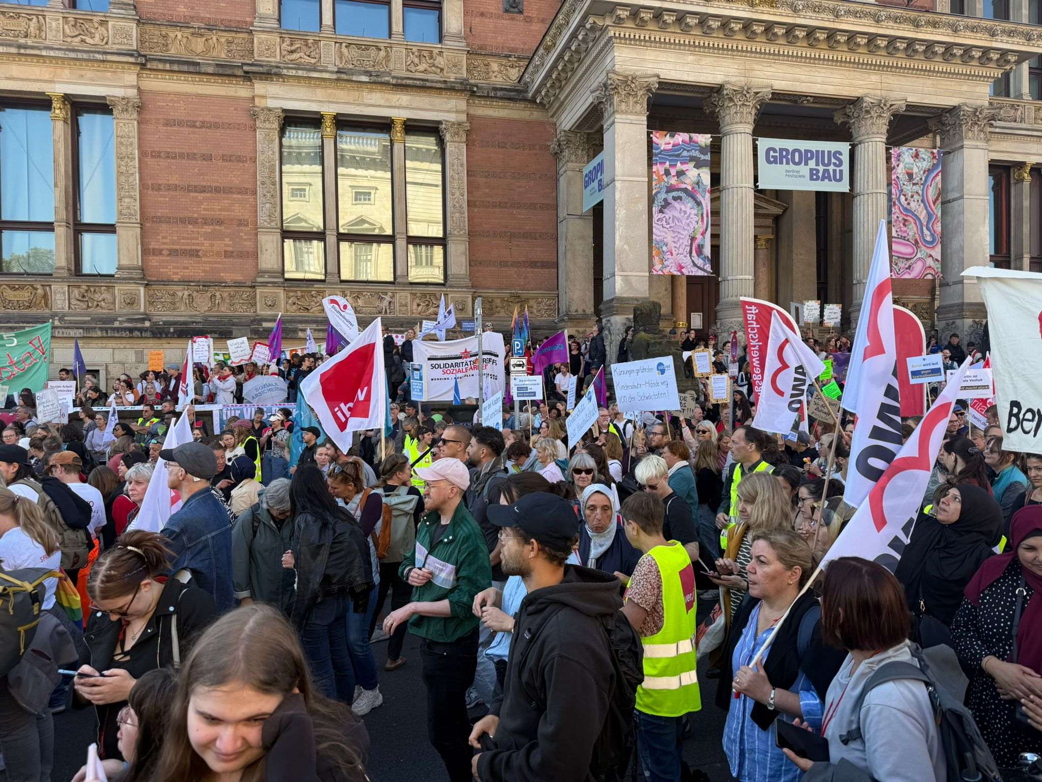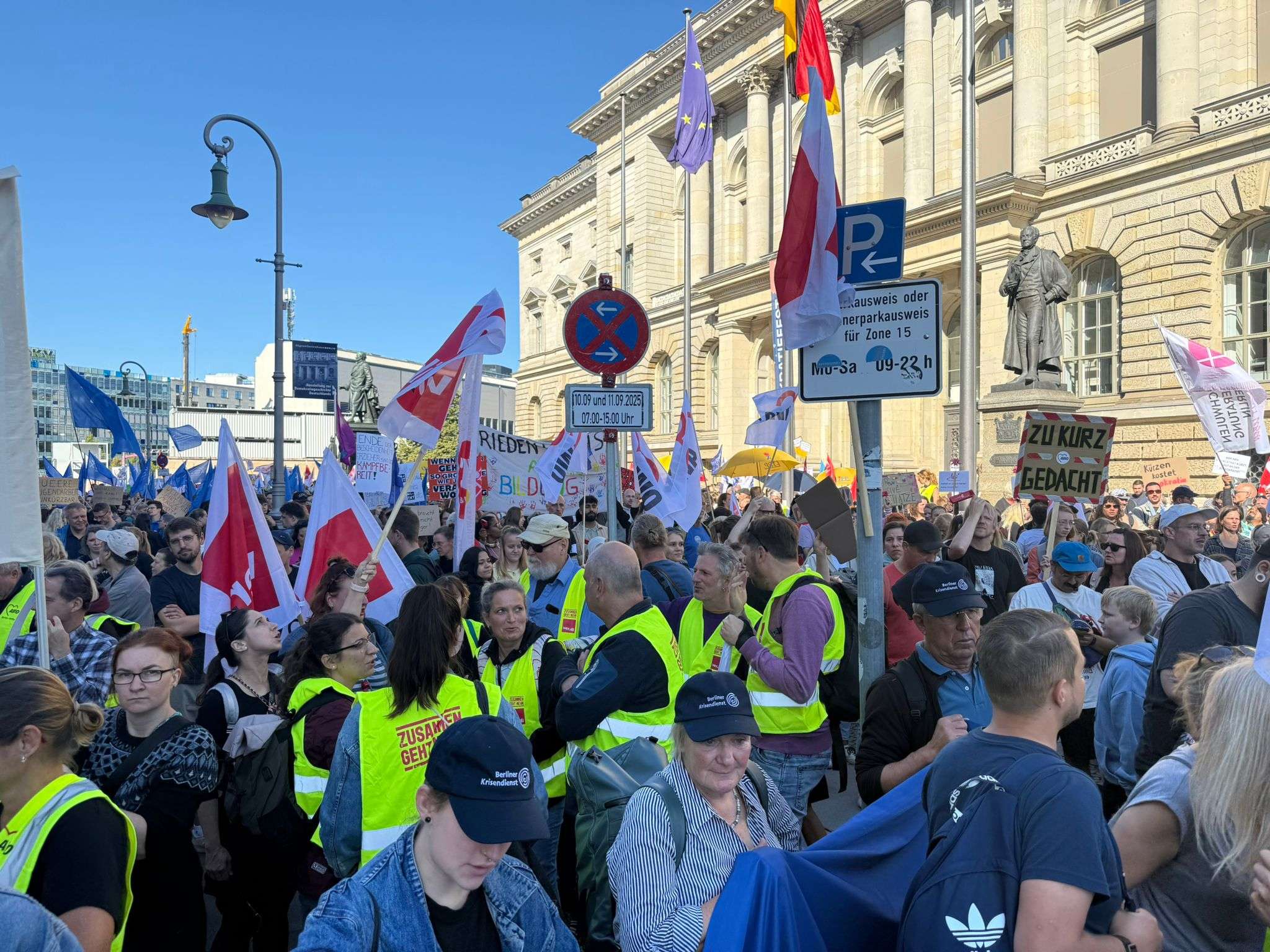 Am 11. September 2025 fand ab 10:00 Uhr unter dem Motto „Berlin darf nicht kaputtgespart werden – #GemeinsamFürEinSozialesBerlin“ eine Großkundgebung des Bündnisses für ein soziales Berlin statt. Mehr als 4000 tausend Demonstrierende setzten ein machtvolles Zeichen gegen die Kürzungspläne des Senats.