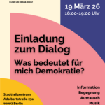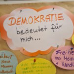 Gefördert durch die Stiftung “Orte der Deutschen Demokratiegeschichte“ fand am 19. März im Stadtteilzentrum Adalbertstraße im Rahmen unseres Sprachcafés eine Dialogrunde zum Thema „Was bedeutet für mich Demokratie?“ statt. Nach einem kurzen Input zum Gedenktag und dessen historischen Hintergrund kamen wir mit den Teilnehmenden in einen intensiven Austausch zur Bedeutung von Demokratie. Wie lautet das Wort in den jeweiligen Herkunftssprachen, was bedeutet Demokratie für mich persönlich und was kann jede*r Einzelne tun, um diese zu schützen und zu bewahren? Welche Bedeutung hat hier das Grundgesetz?