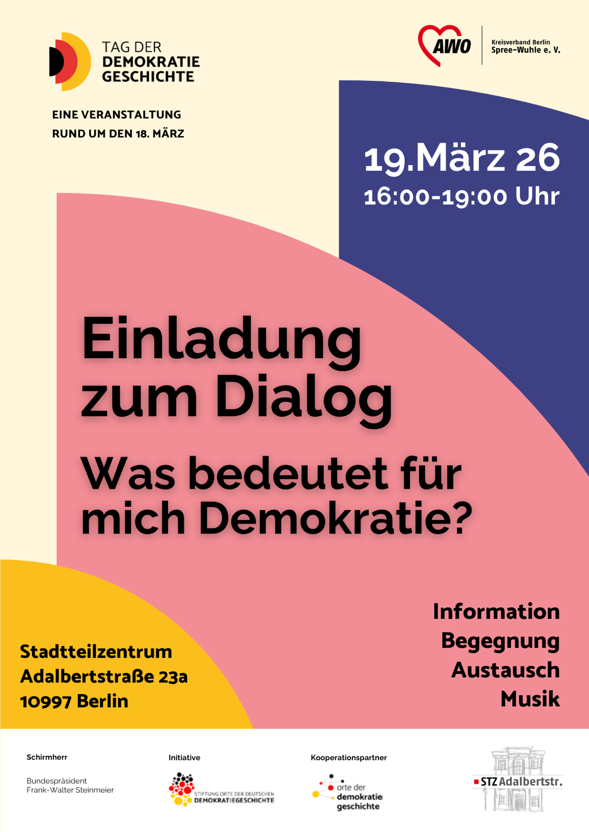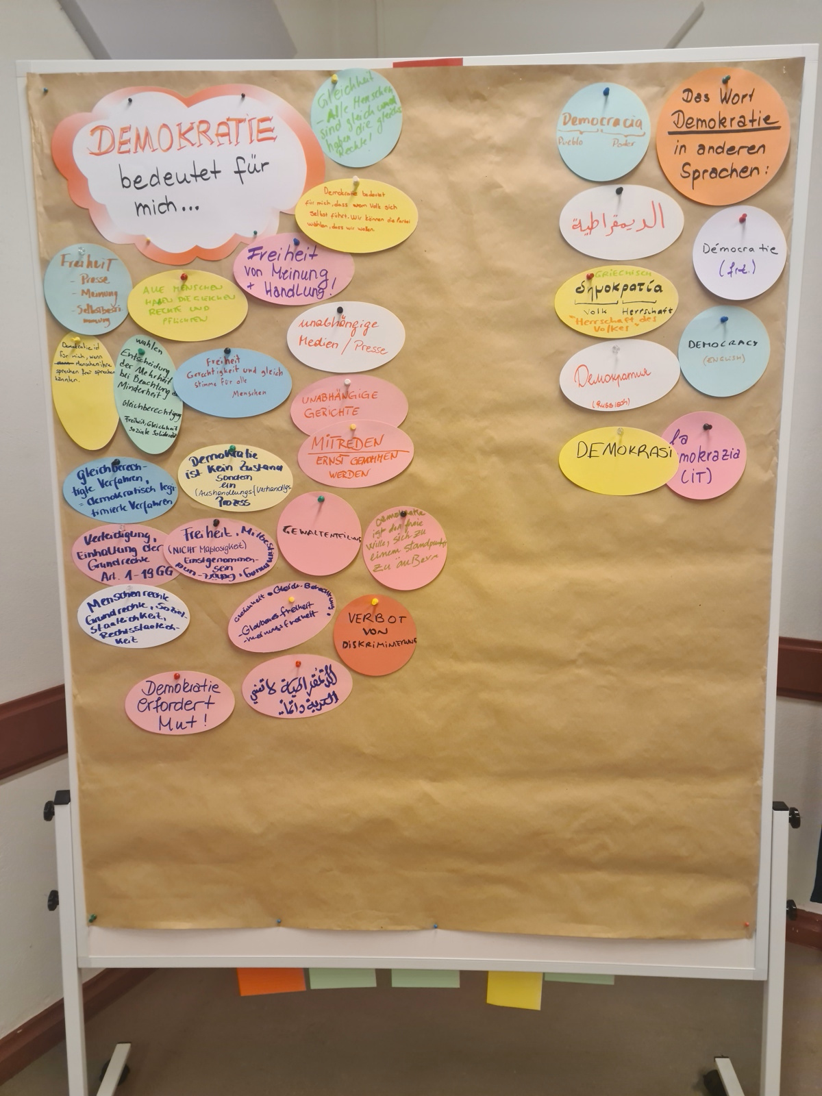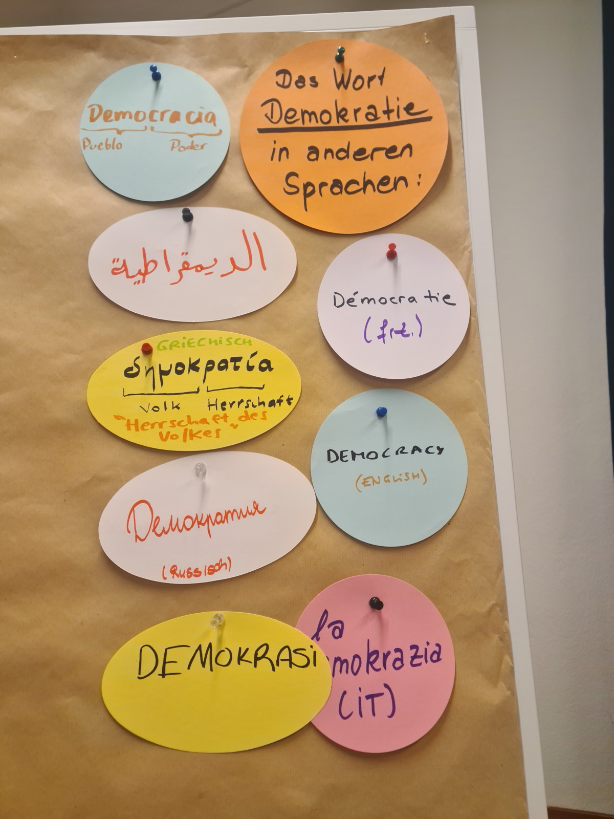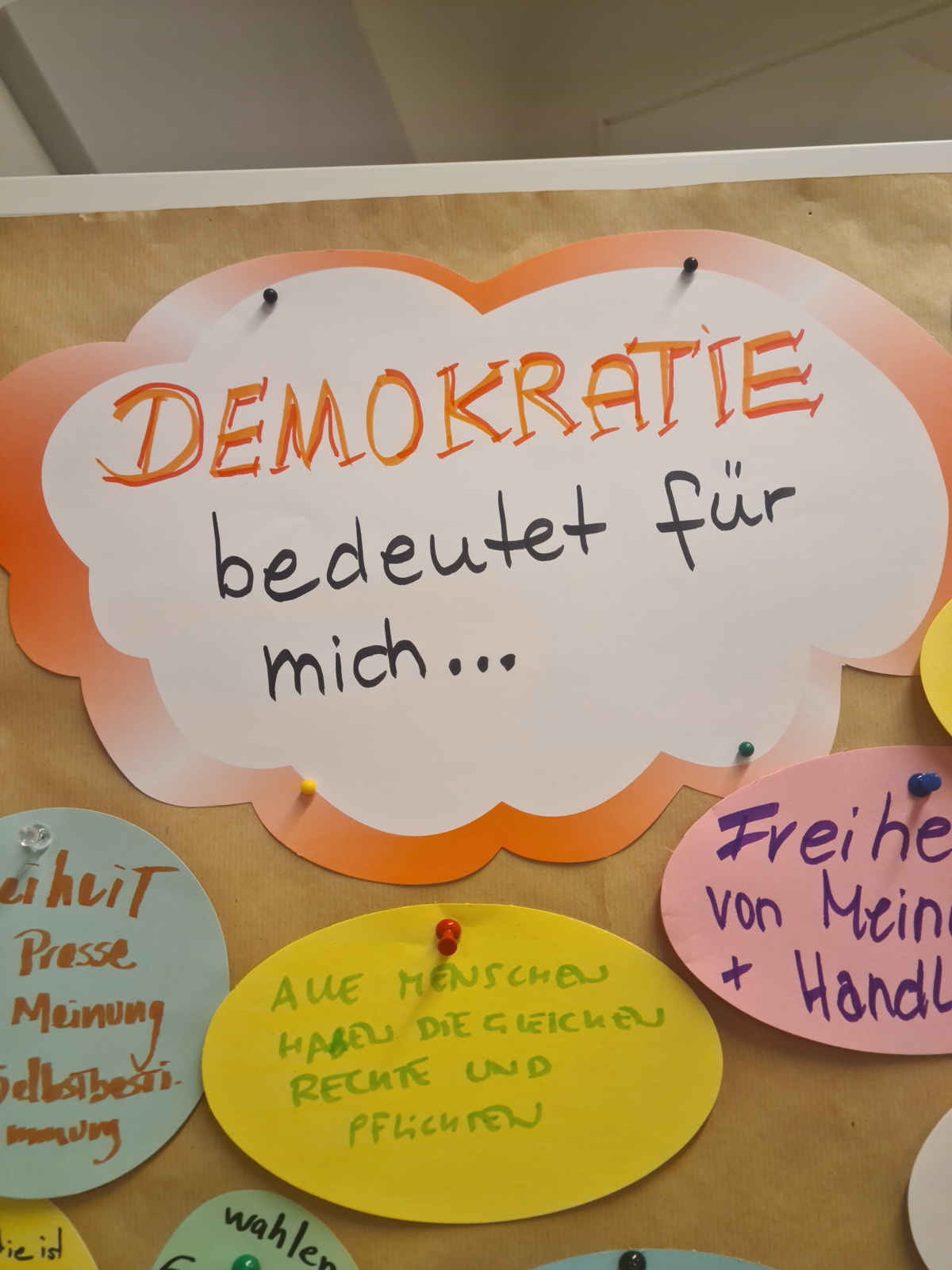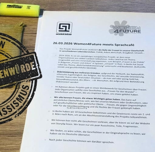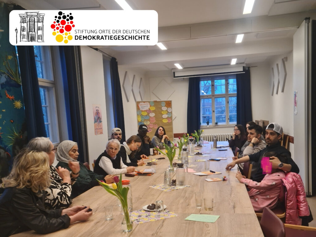 Gefördert durch die Stiftung “Orte der Deutschen Demokratiegeschichte“ fand am 19. März im Stadtteilzentrum Adalbertstraße im Rahmen unseres Sprachcafés eine Dialogrunde zum Thema „Was bedeutet für mich Demokratie?“ statt. Nach einem kurzen Input zum Gedenktag und dessen historischen Hintergrund kamen wir mit den Teilnehmenden in einen intensiven Austausch zur Bedeutung von Demokratie. Wie lautet das Wort in den jeweiligen Herkunftssprachen, was bedeutet Demokratie für mich persönlich und was kann jede*r Einzelne tun, um diese zu schützen und zu bewahren? Welche Bedeutung hat hier das Grundgesetz?