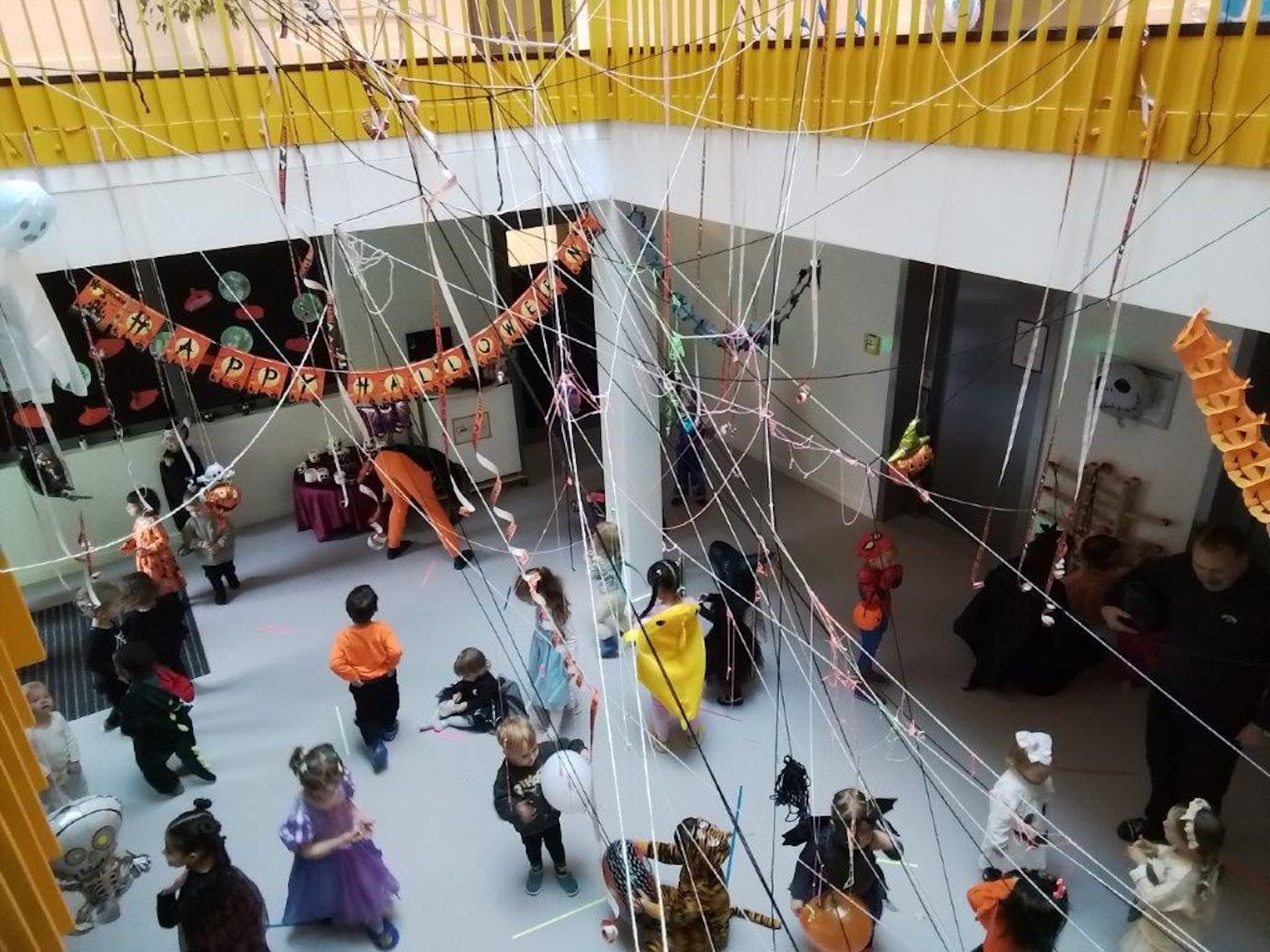 An Halloween gab es eine Gespenster-Disco für alle Kita-Kinder. Im geschmückten Foyer haben die kleinen Hexen, Fledermäuse und Monster ausgiebig getanzt. Außerdem gab es Spiele und einen Streifzug durchs Wohngebiet, auf dem Süßigkeiten gesammelt und Streiche gespielt wurden. Für das leibliche Wohl war mit Suppe aus dem Hexenkessel und einem kleinen Naschbüffet ebenfalls gesorgt.