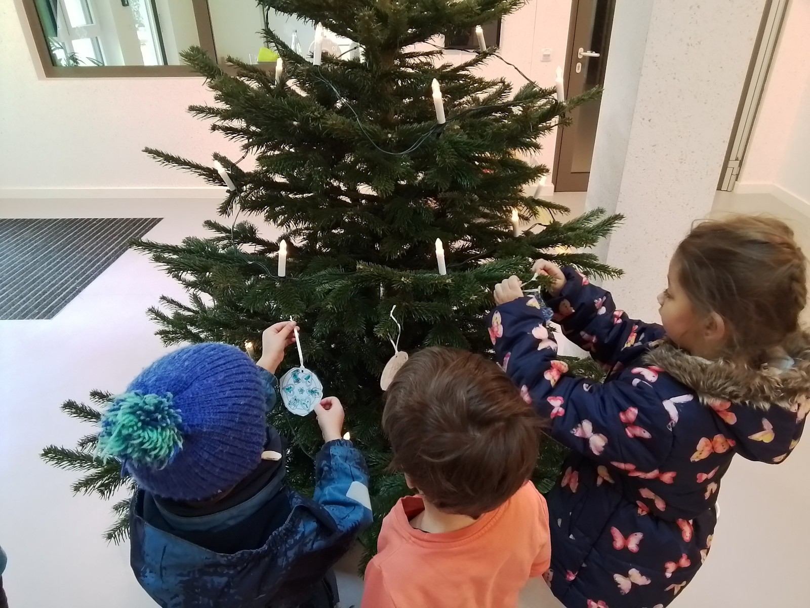 - In den Ateliers haben die Kinder mit viel Kreativität bunte Anhänger gestaltet und damit unseren Weihnachtsbaum geschmückt.