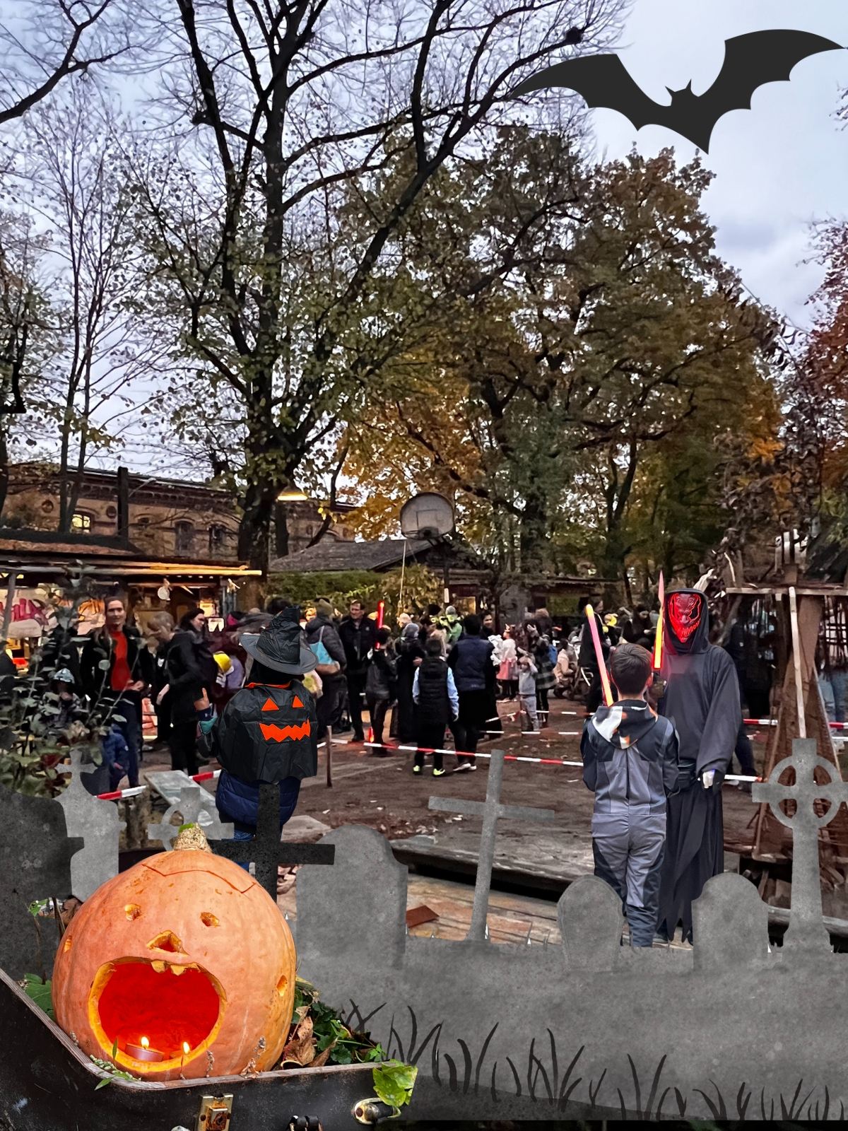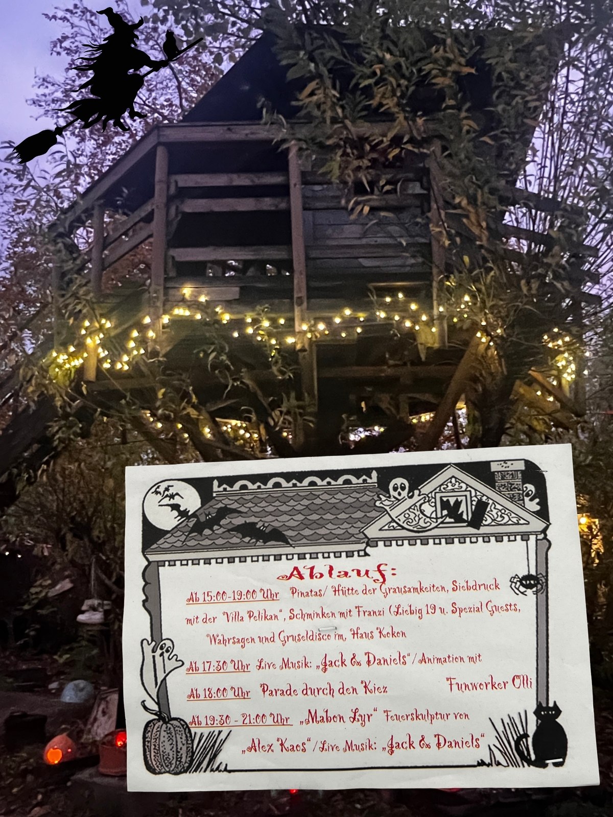 Die ganze Nachbarschaft, Groß und Klein und auch einigen grusligen Gestalten sind dabei und allen macht es großen Spaß.