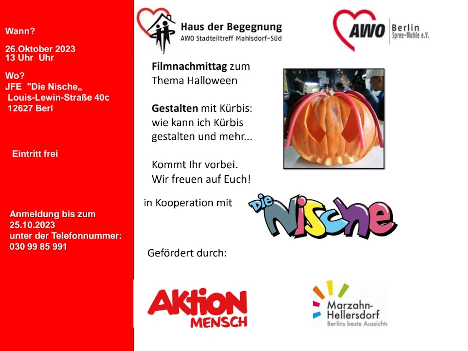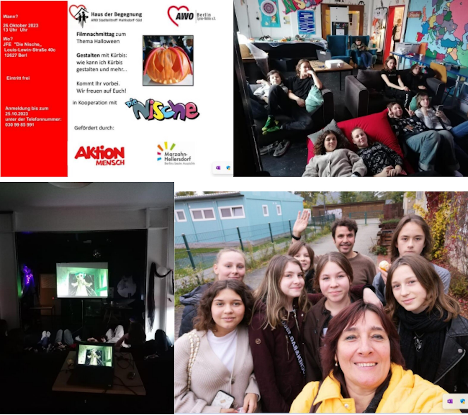 Los ging es am 26. Oktober mit einem Filmnachmittag, der in Kooperation mit dem Haus der Begegnung Stadtteiltreff Mahlsdorf Süd durchgeführt wurde.