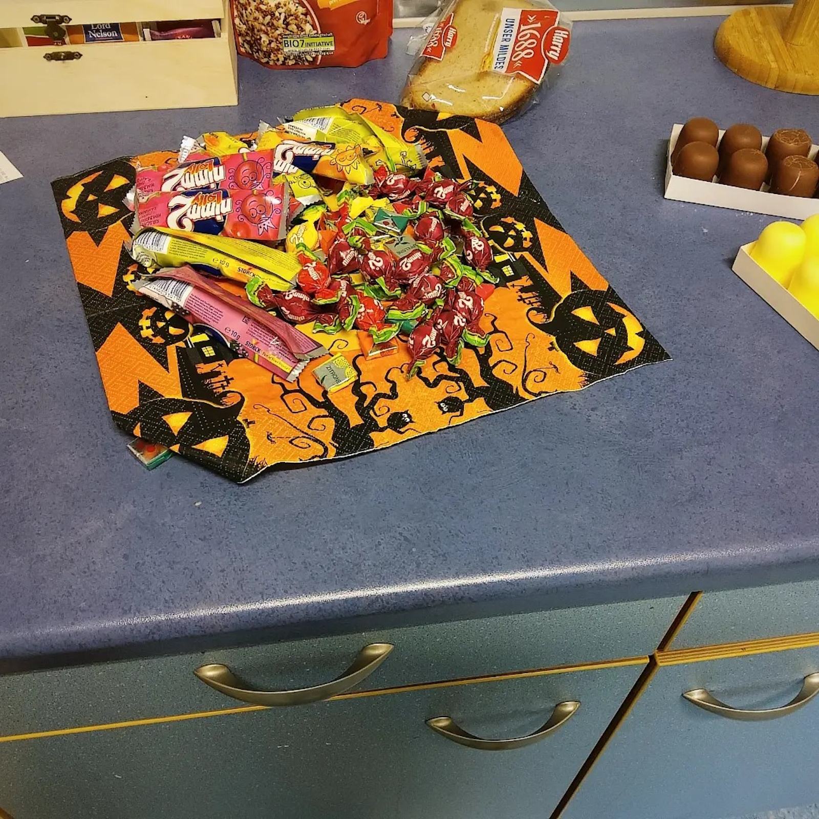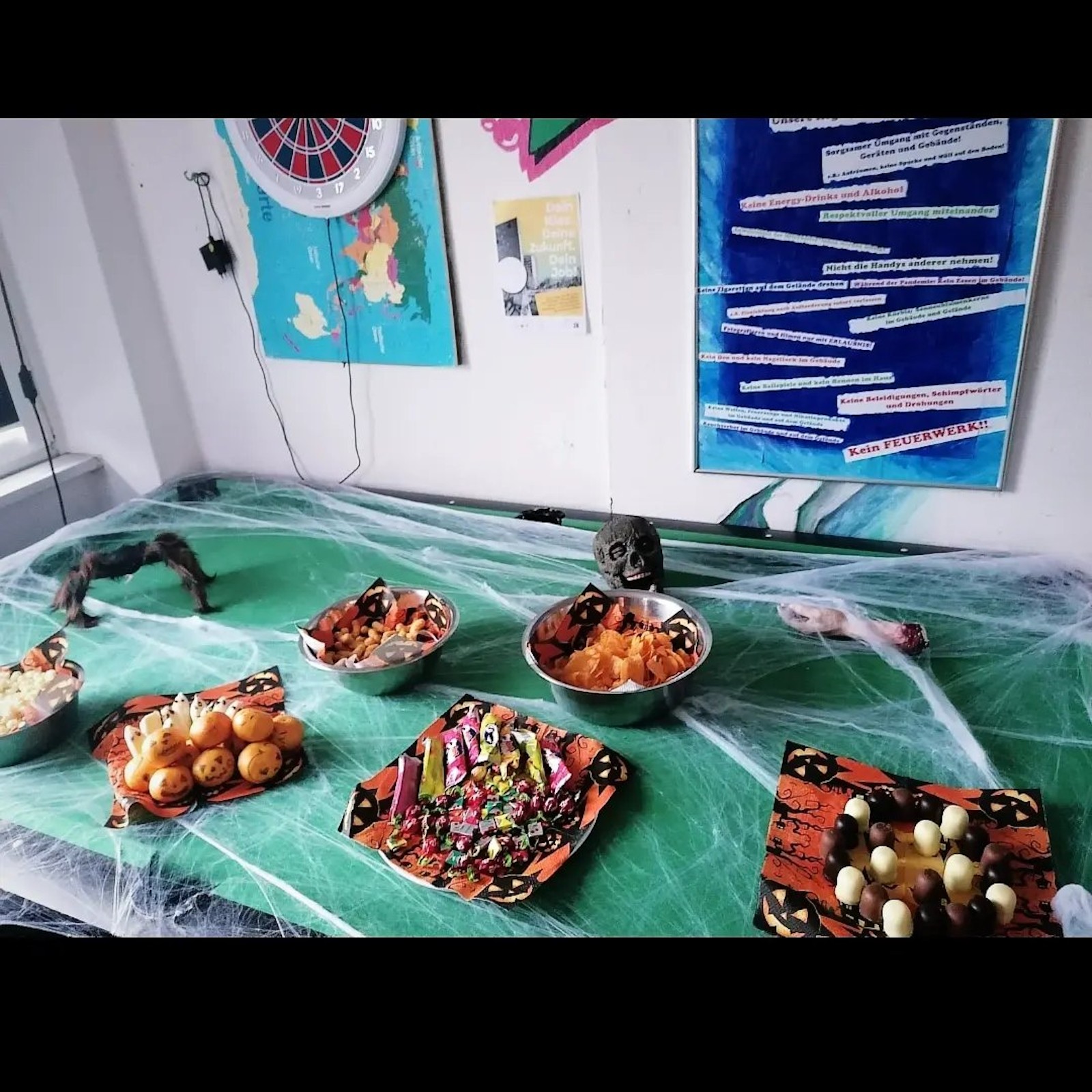 Bevor am späten, schon finsteren Nachmittag ein Halloween Film gezeigt wurde, wurde gemeinsam das ganze Haus Halloween gerecht gruselig gestaltet und in der Küche Leckereien und Knabberzeug bereitet.