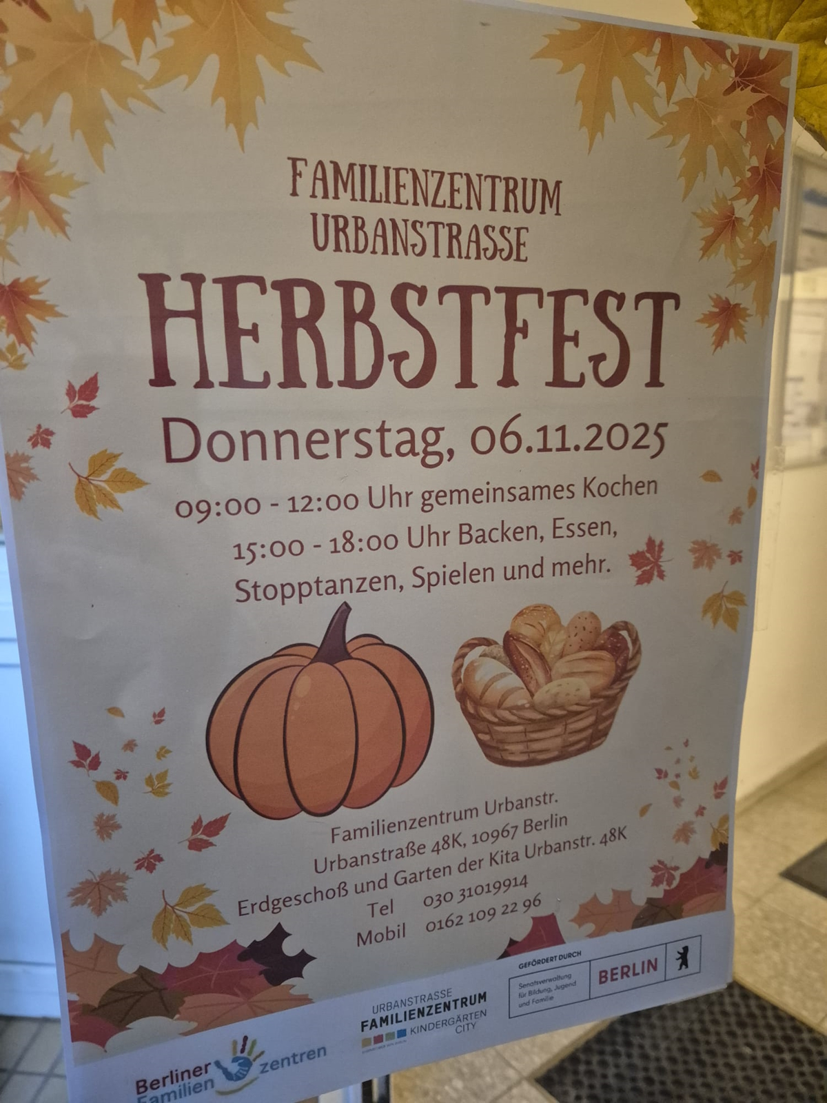 Deshalb möchten wir ein paar schöne Momente vom Herbstfest im Familienzentrum Urbanstraße des Trägers Kindergärten City teilen.