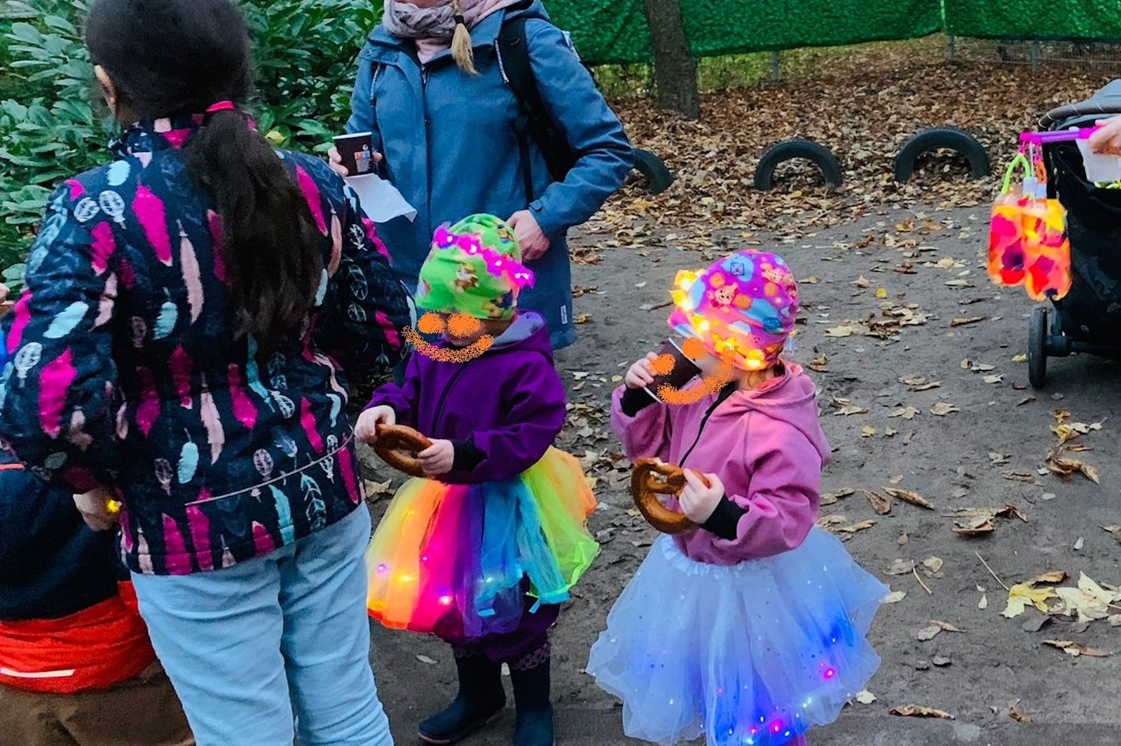 Bei Brezeln, Kinderpunsch und Tee wurde gelacht, gesungen und gefeiert. Gemeinsam ging es dann zum großen Laternenumzug bis hin zum Ententeich, an dem Alle gemeinsam fröhliche Lieder erklingen ließen.