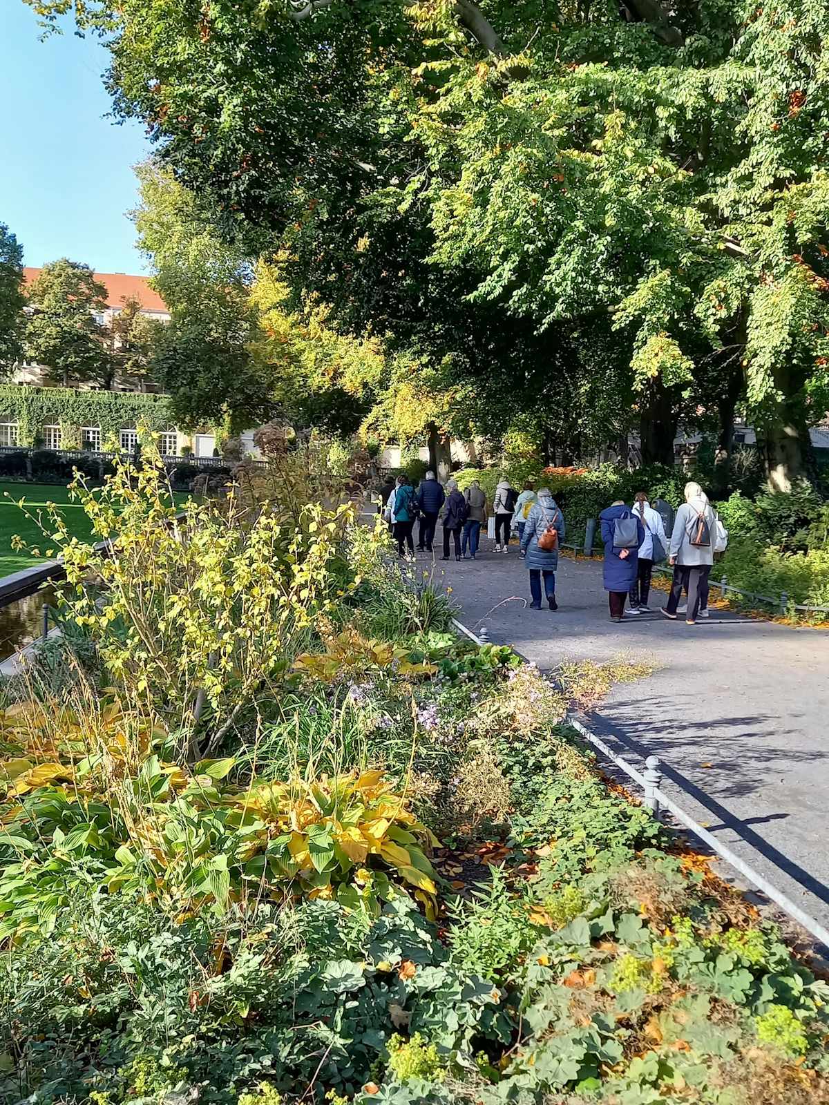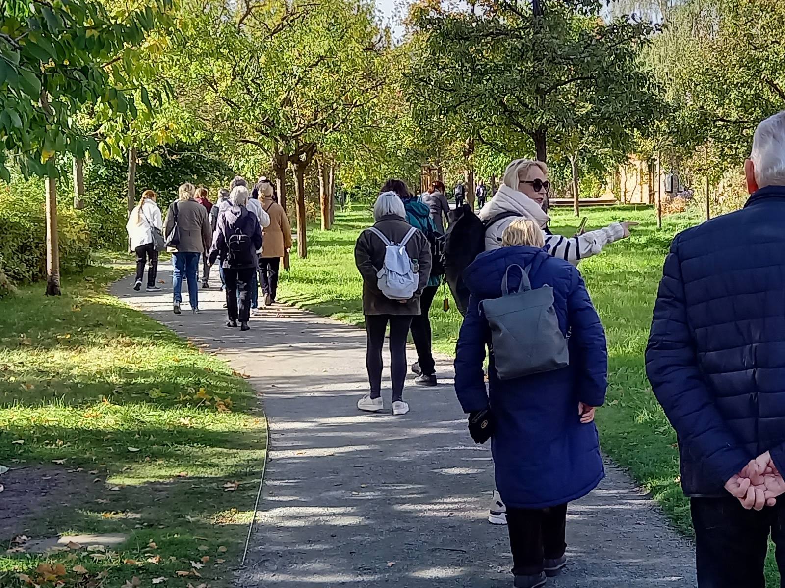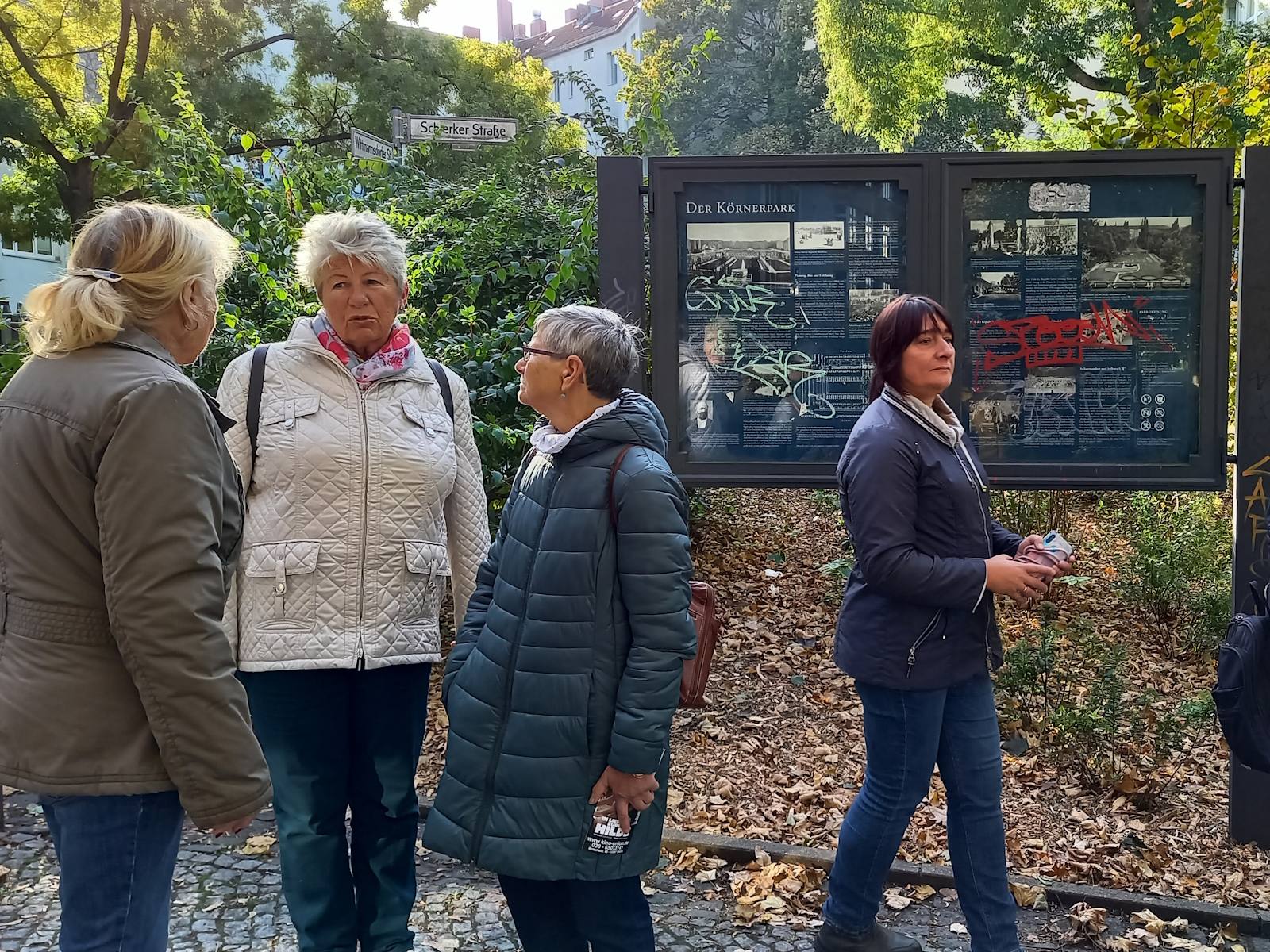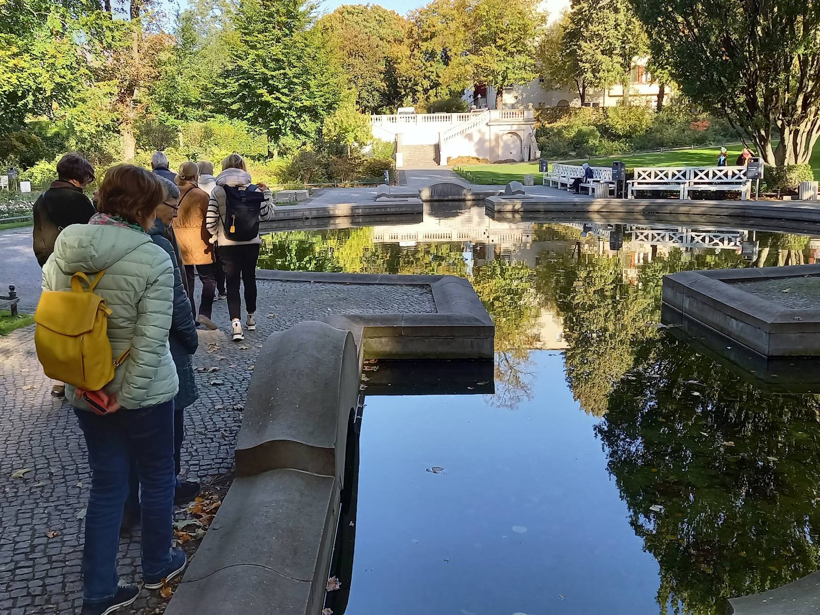 Nachdem der ursprünglich für den 10. Oktober geplante Ausflug wegen schlechten Wetters verschoben werden musste, bot der Donnerstag eine Woche später mit sonnigem Herbstwetter ideale Bedingungen für die Erkundungen in Rixdorf -Neukölln. Die 18 Teilnehmer*innen starteten mit einer Besichtigung des Körnerparks, auch als Sanssouci von Neukölln bezeichnet.