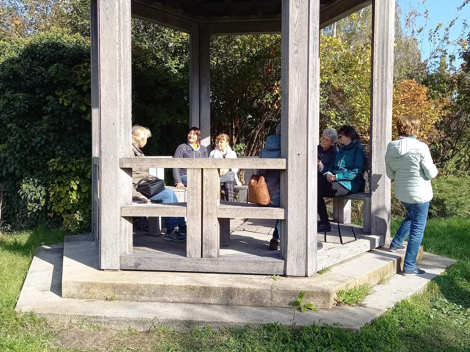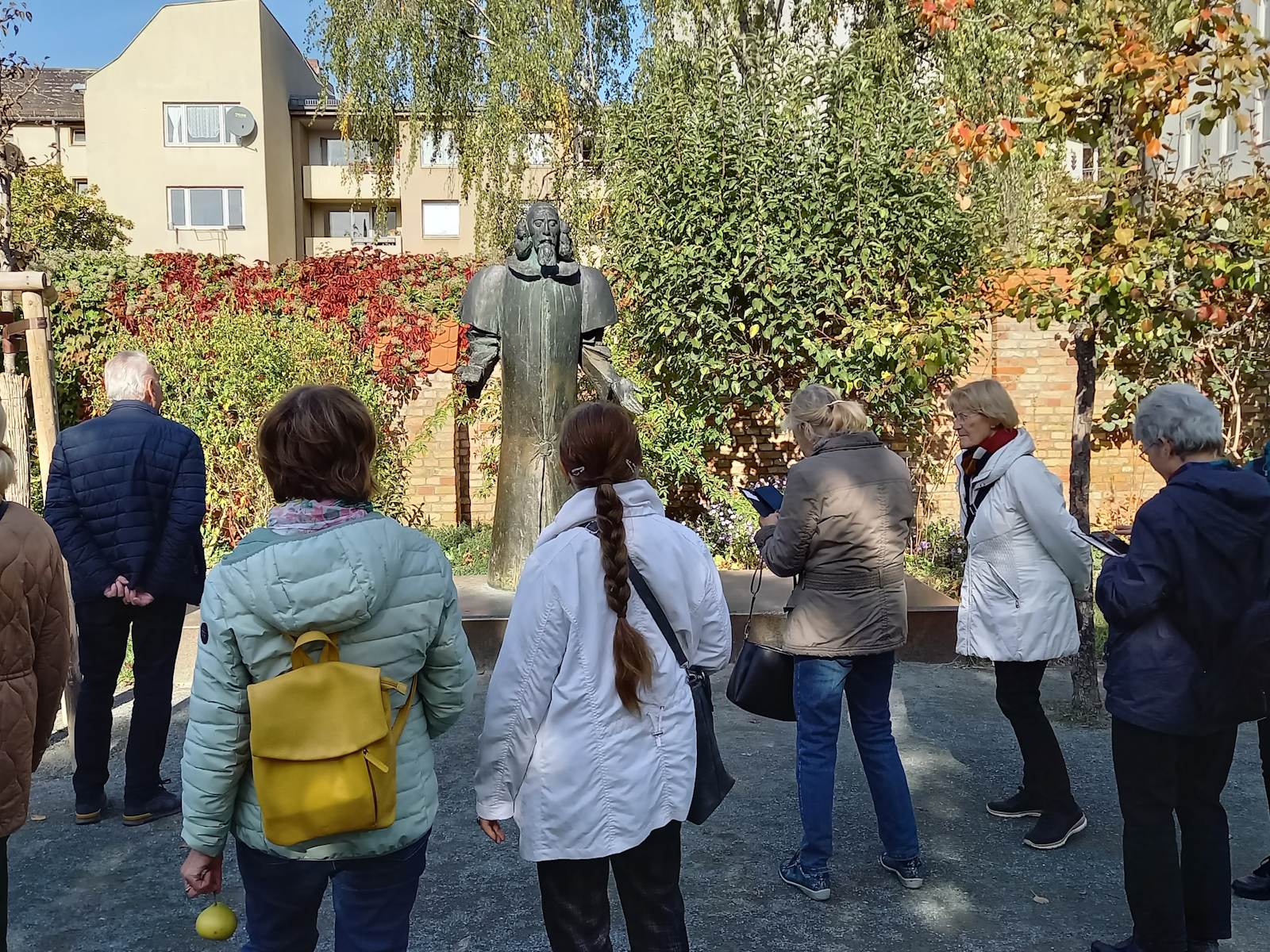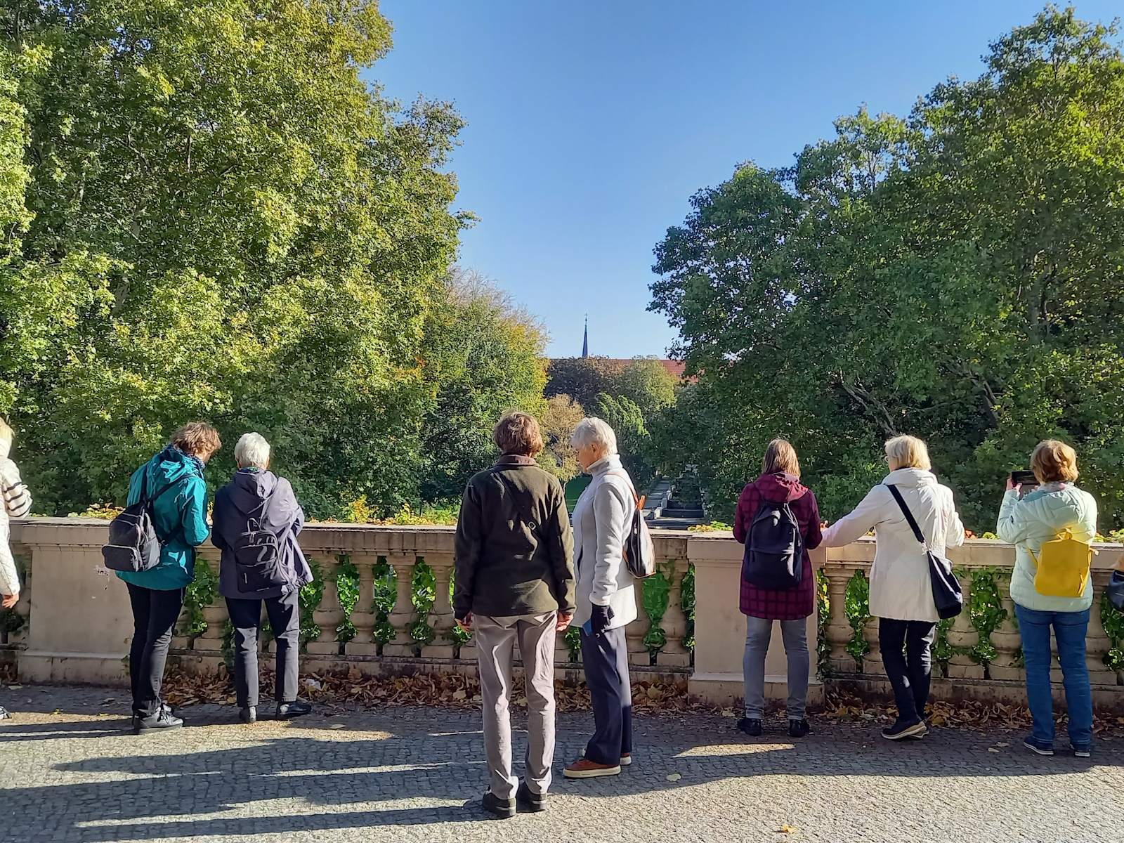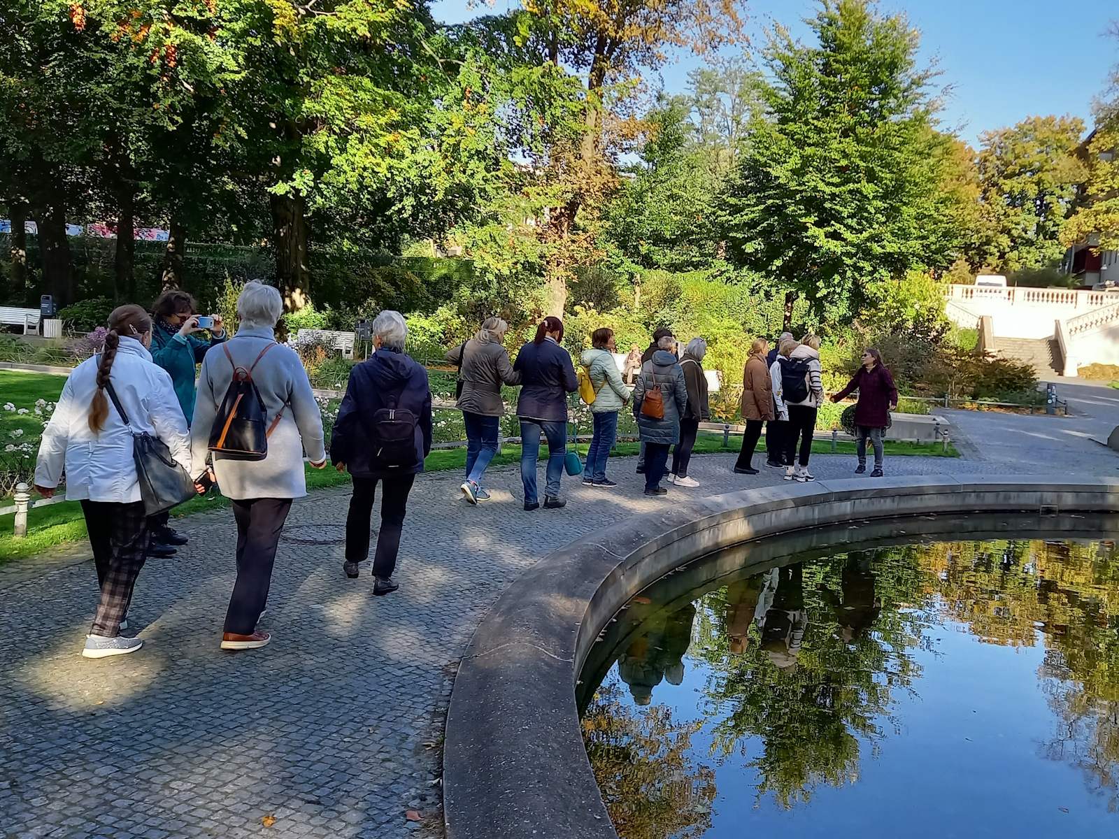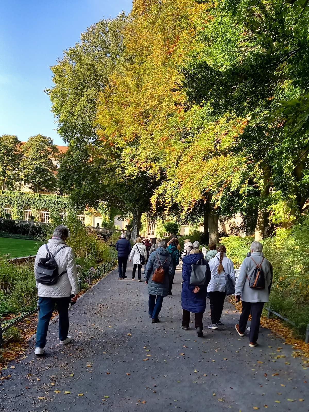 Nachdem der ursprünglich für den 10. Oktober geplante Ausflug wegen schlechten Wetters verschoben werden musste, bot der Donnerstag eine Woche später mit sonnigem Herbstwetter ideale Bedingungen für die Erkundungen in Rixdorf -Neukölln. Die 18 Teilnehmer*innen starteten mit einer Besichtigung des Körnerparks, auch als Sanssouci von Neukölln bezeichnet.