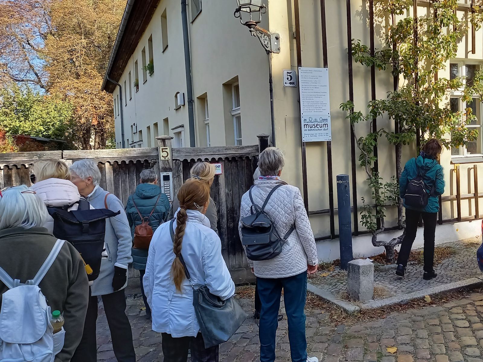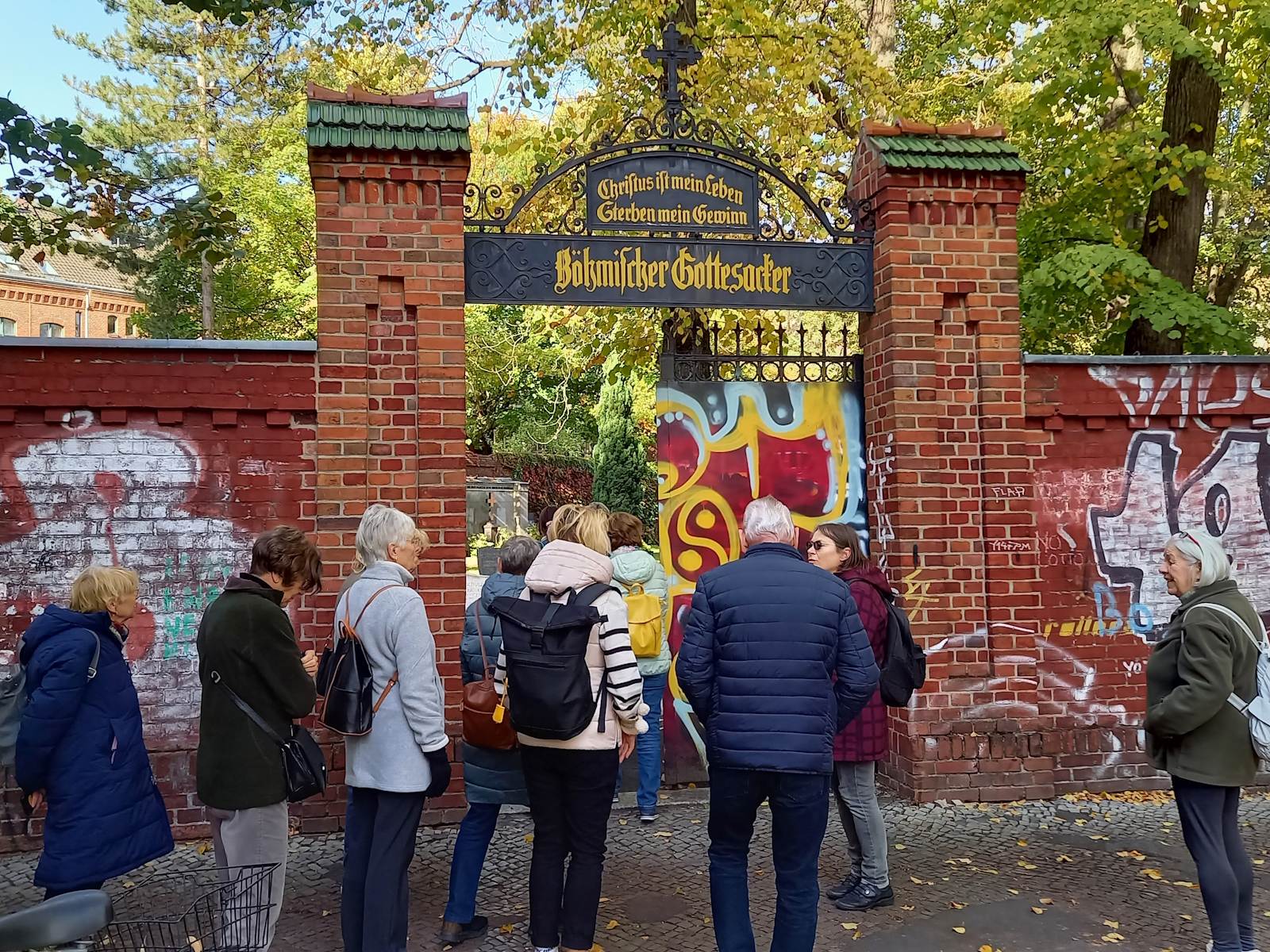 Danach führte der Spaziergang ins hussitische Alt-Rixdorf mit Böhmischem Dorf und Friedhof. Ebenfallls wurden das Museum Rixdorf und der Comenius-Garten besucht, bevor der Ausflug in der Villa Rixdorf mit einem gemeinsamen Mittagessen endete.