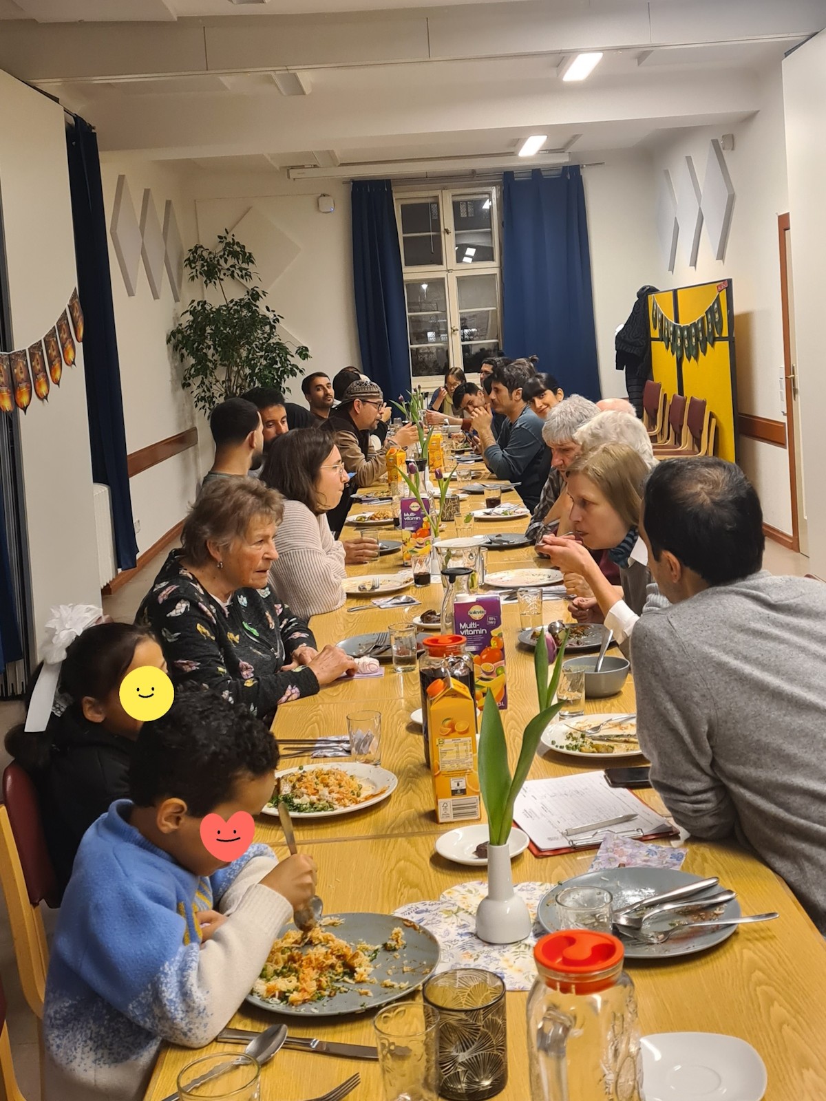 „Wir haben im Rahmen des Begegnungs- und Sprachcafés ein Iftar (Fastenbrechen) veranstaltet, an dem 35 Personen teilgenommen haben. Besonders gefreut haben wir uns auch über den Besuch langjähriger Weggefährt*innen, die vor vielen Jahren das Angebot mit initiiert haben und uns immer verbunden geblieben sind. Herzlichen Dank für eure Unermüdlichkeit. Ein herzlichen Dank an unser Orga-Team – vor allem an Abdullah, Hadija, Najah und Sami. Es war ein schöner Abend bei guten Essen und interessanten Gesprächen“
