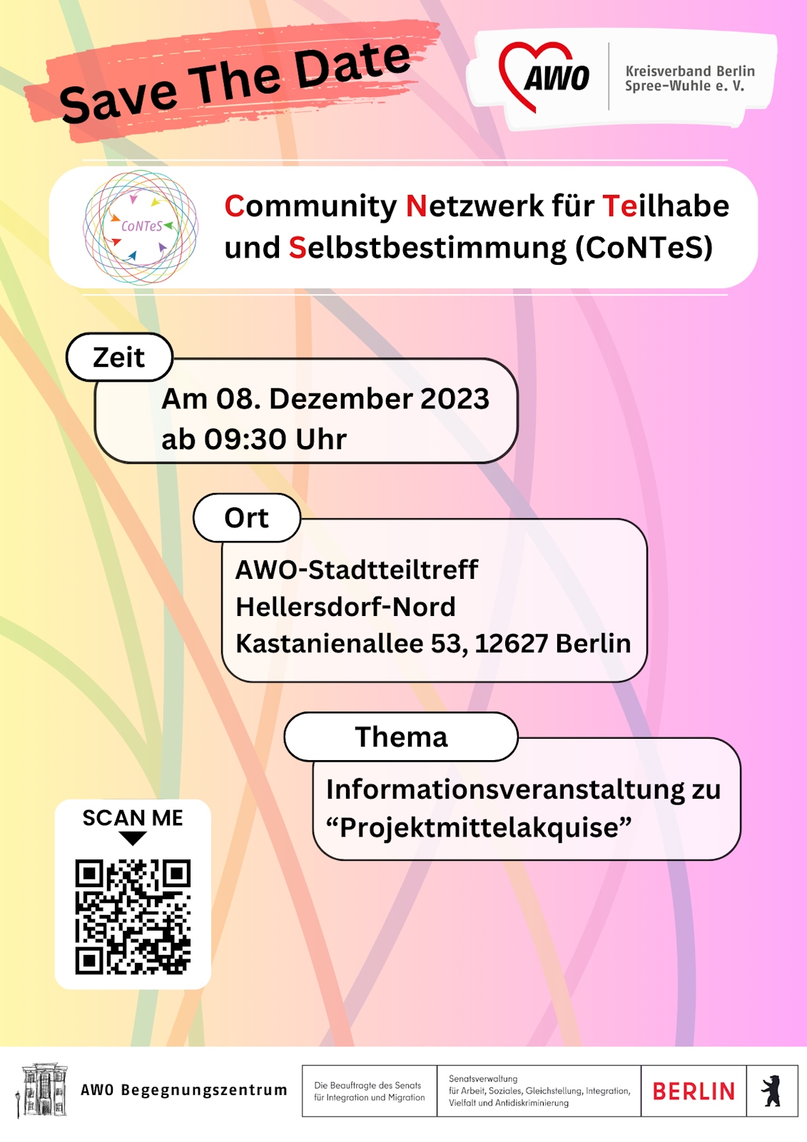 Am 08.12.2023 fand im AWO-Stadtteiltreff Hellersdorf-Nord eine Informationsveranstaltung des Projektes Community Netzwerk für Teilhabe und Selbstbestimmung – CoNTeS – statt.