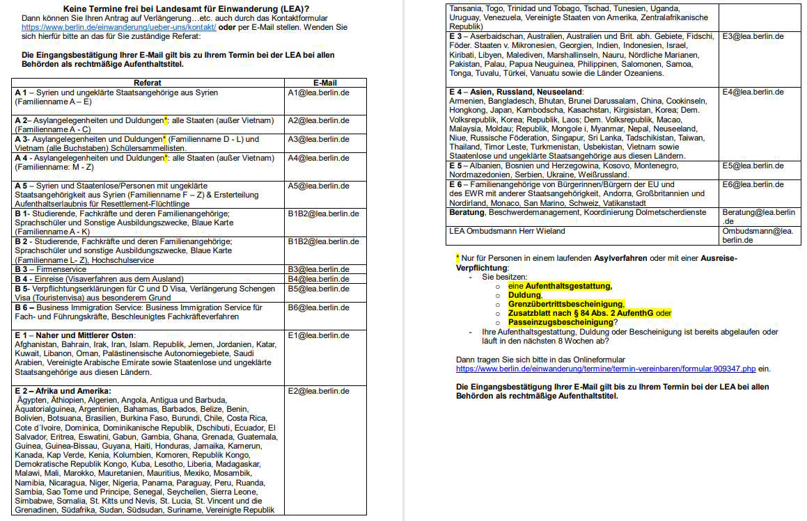 Keine Termine beim Landesamt für Einwanderung (LEA)?!