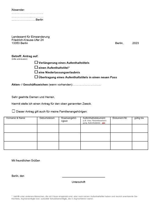 Ein Antrag auf einen Aufenthalts-Titel,