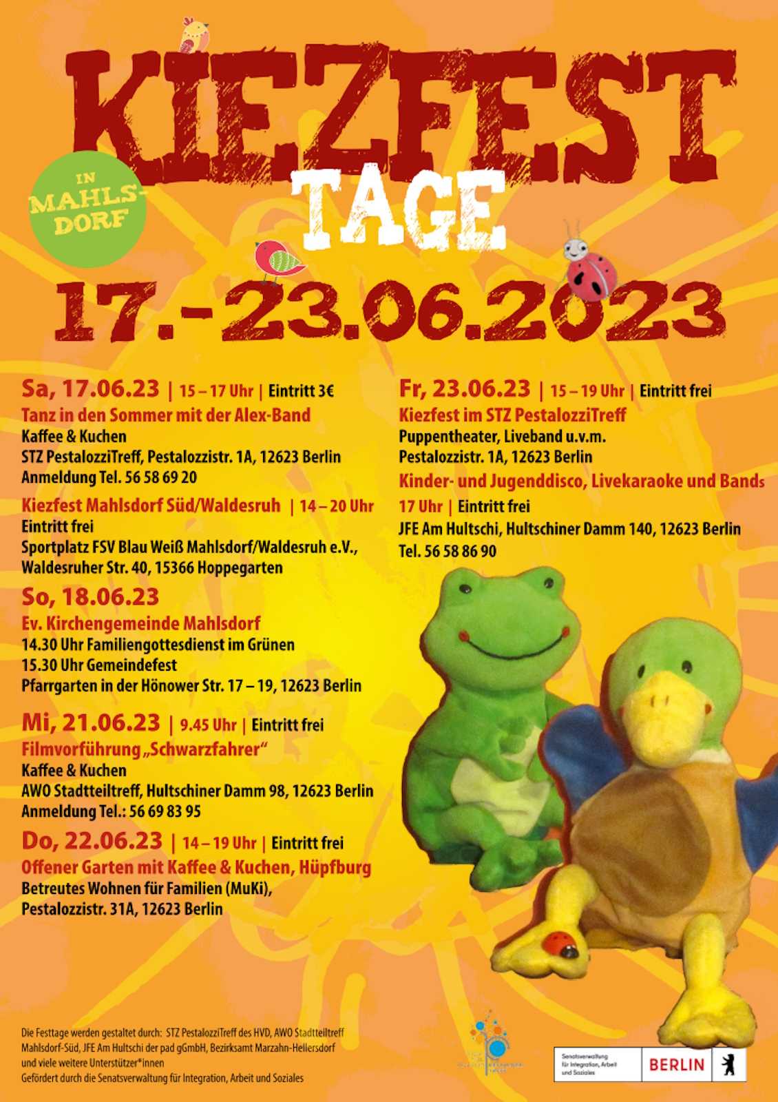Vom 17. bis 23. Juni fanden die Kiezfesttage in Mahlsdorf statt. Der AWO Stadtteiltreff Mahlsdorf-Süd gehört wie viele andere Angebote des Ortsteils zu den aktiven Unterstützer*nnen der Festtage.