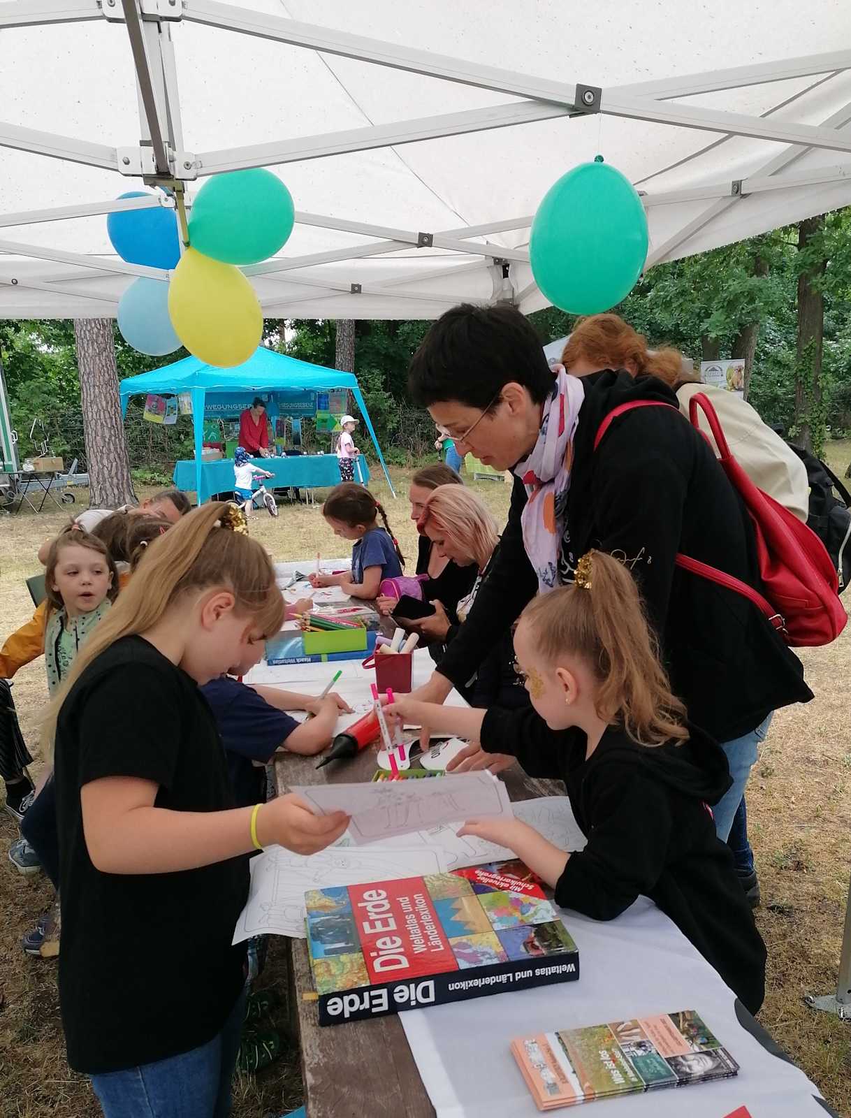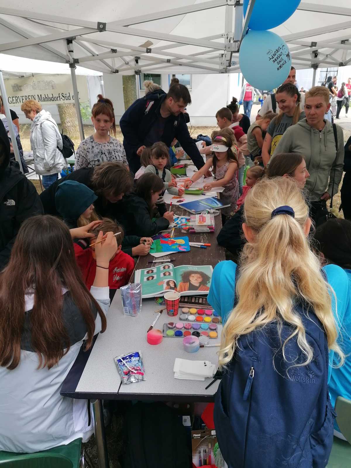 Das Haus der Begegnung – AWO Stadtteiltreff Mahlsdorf Süd beteiligte sich mit Angeboten für die Kleinsten: Basteln, Malen, Schminken und Kindertanz vom Tanzstudio „Dance of Life“ Berlin unter Leitung von Julia Lotz.