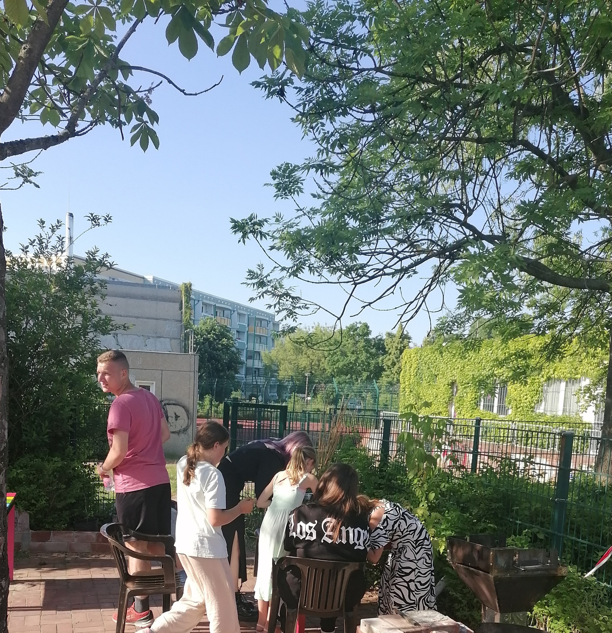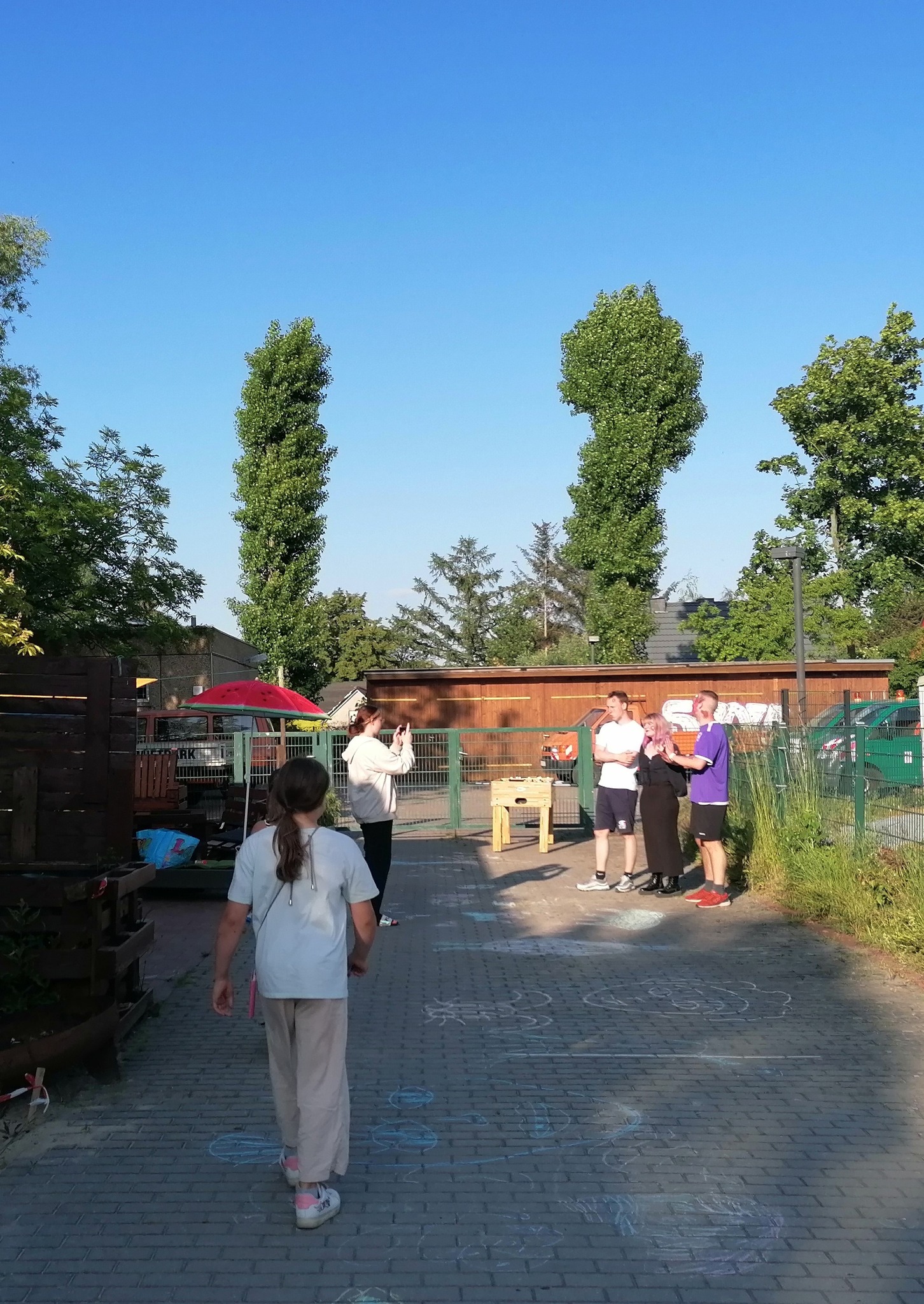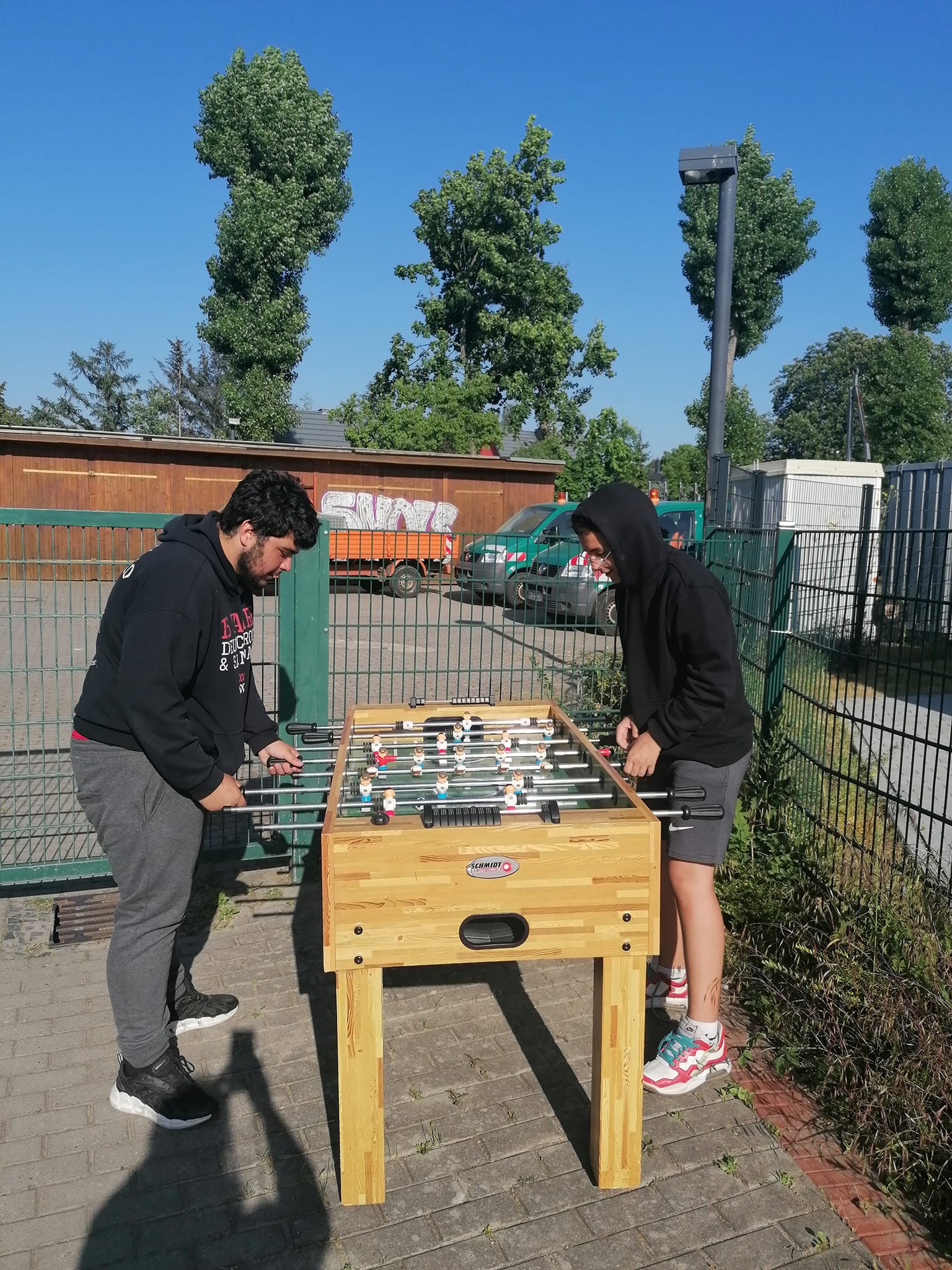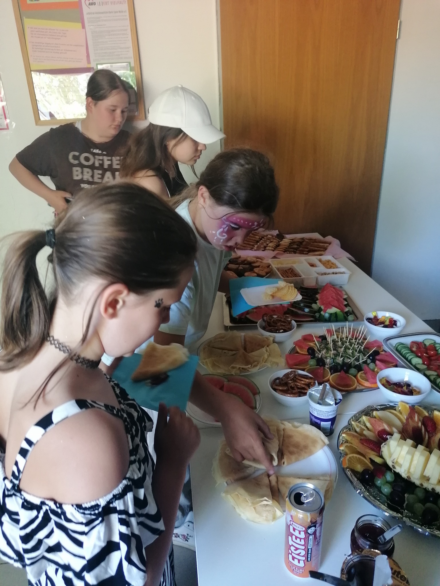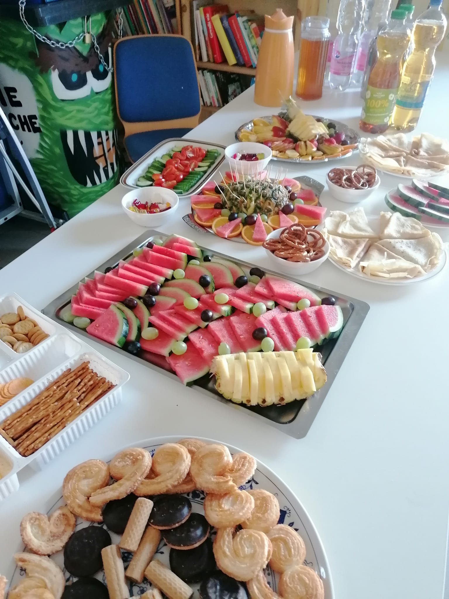Ein Buffet mit viel Obst und kalten Getränken bot die richtige Erfrischung. Der Kicker wanderte nach draußen und auf dem Pflaster wurde gemalt.