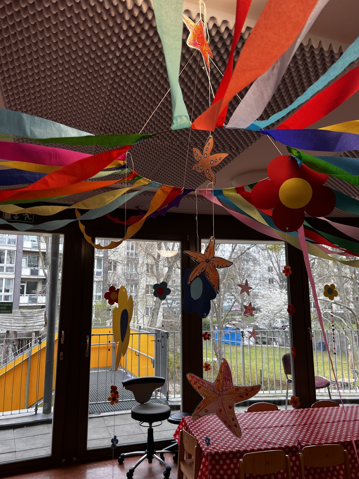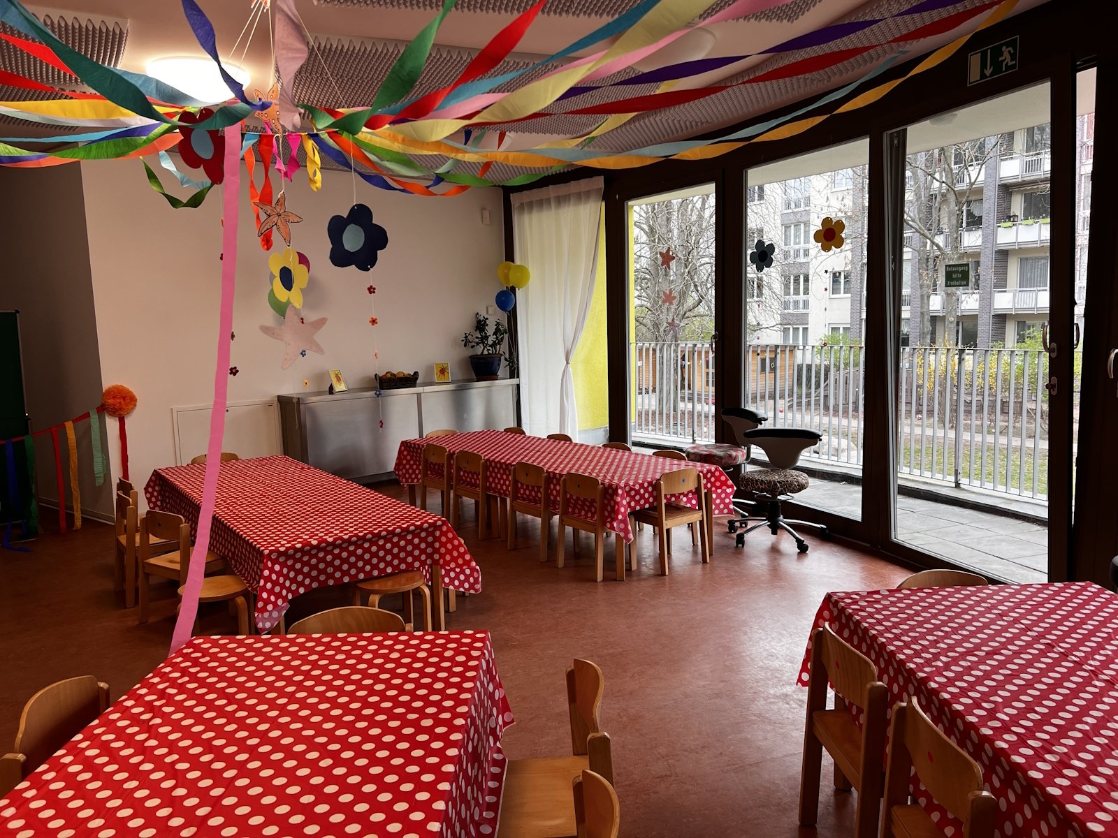 Der Impuls für die Neugestaltung des Kinderrestaurants war wohl zuerst eine arbeitsorganisatorische Überlegung. Zwei Restaurants in zwei Gebäuden waren eine logistische Herausforderung, warum nicht die Kinderrestaurants nur in dem Gebäude organisieren, in dem auch die Küche ist. Das war die Idee, danach wurden alle beteiligt, die etwas mit den Kinderrestaurants zu tun haben. Das Team und der Kinderrat machten Pläne, bevor alle tatkräftig mit Hand anlegten. Das Renovieren wäre ohne Kati, die Handwerkerin und gute Seele, nicht gelungen. Das Gestalten und Ausschmücken übernahm das Team. Und die Kinder wurden von Tag zu Tag neugieriger und konnten es kaum erwarten, denn die Veränderungen waren im Alltag zu beobachten.