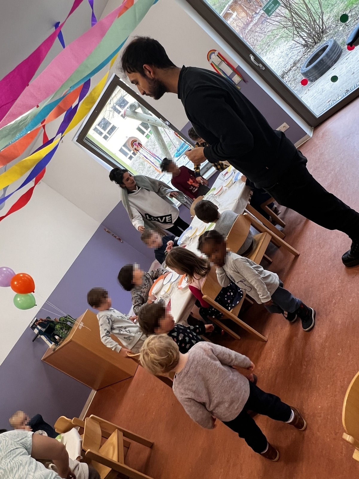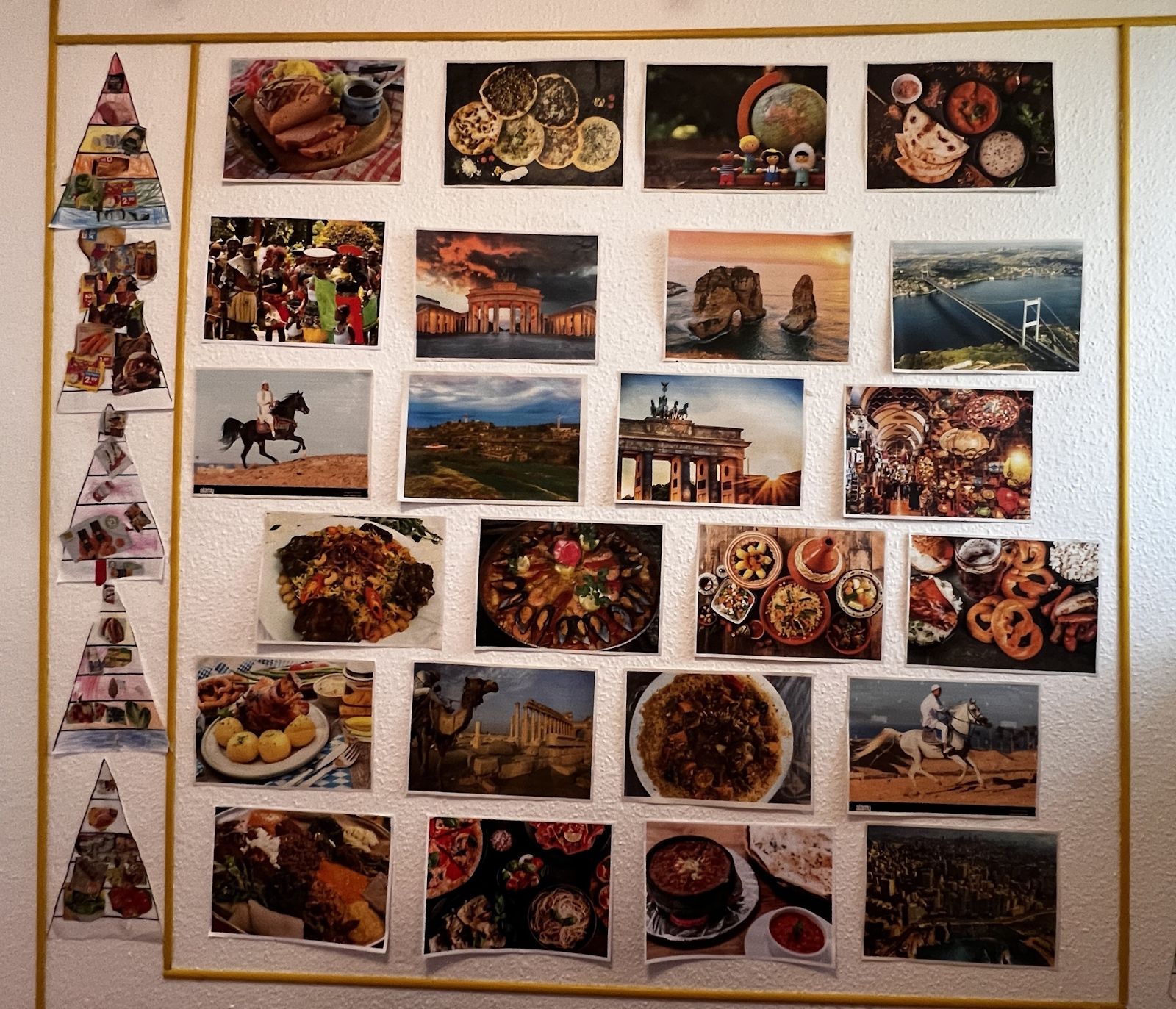 Und deshalb fand begleitend ein Projekt zur gelebten Essenskultur statt. Im Rahmen seiner Ausbildung zum Erzieher und zugleich als Facharbeit im Rahmen der praktischen Arbeit hat Kollege Mohamed die Kinder und deren Familien dazu befragt, was und auch wie zu Hause gekocht und gegessen wird. Das Ganze wurde dokumentiert und ein Raum in der Kita zum Kulturraum gestaltet, wo die Kinder in gemütlicher Runde zusammensitzen und auch essen können. Ein sehr beeindruckendes Projekt.