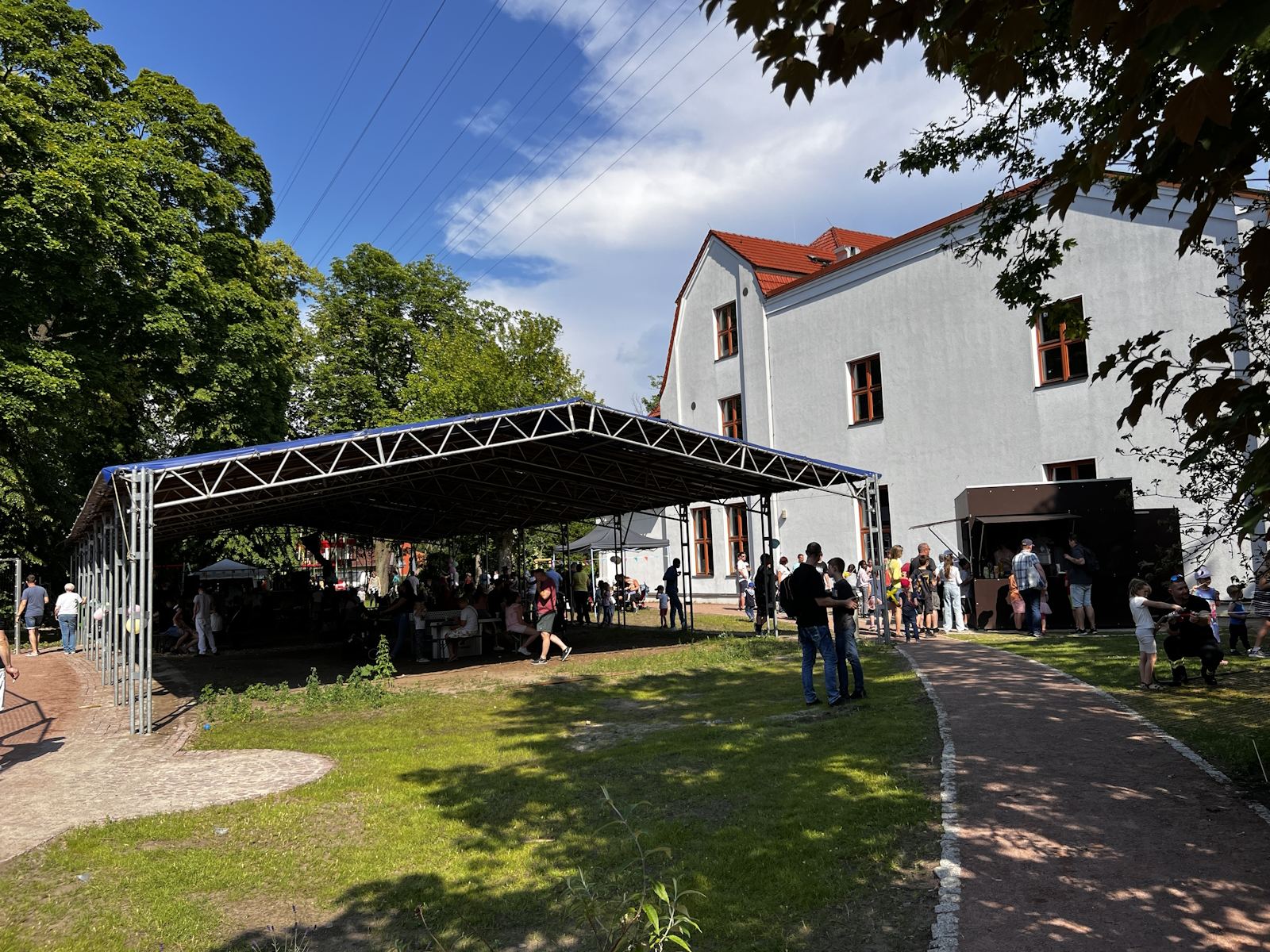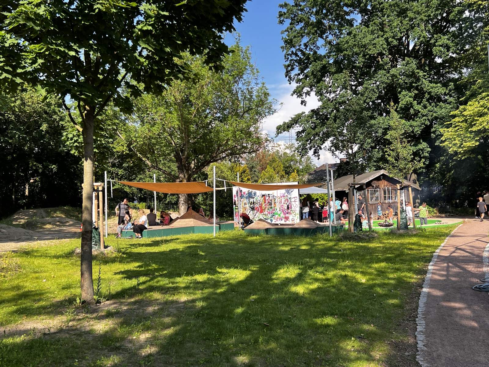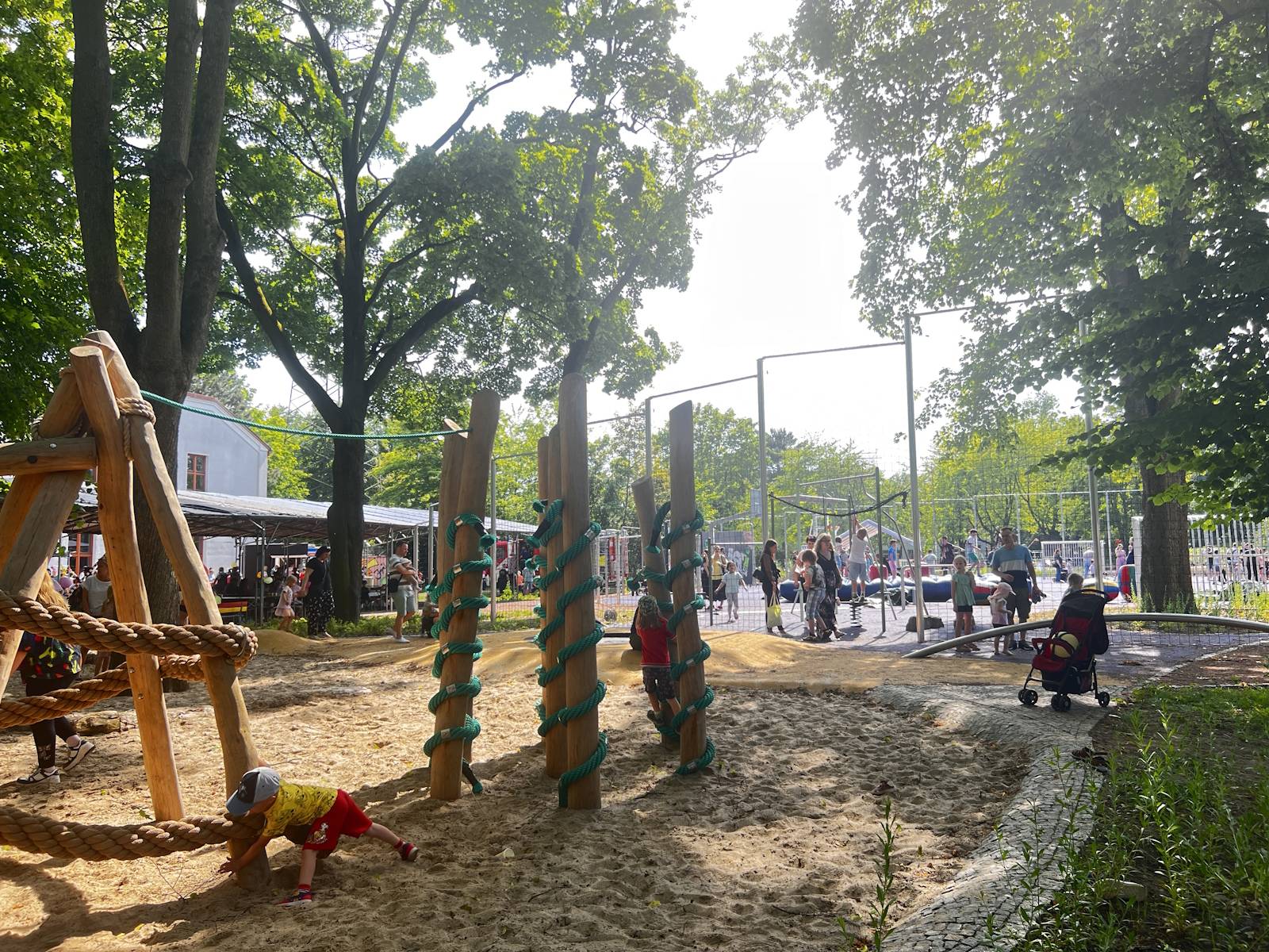 Seit Dezember 2022 haben wir regelmäßig von Fortschritt der „Mehrgenerationengerechten Aufwertung Außenraum Villa Pelikan“ berichtet. Ende 2023 fanden die Arbeiten ihren erfolgreichen Abschluss. Und nachdem im ersten Halbjahr dieses Jahres die Natur noch ihre Ruhe zur Entwicklung hatte, war es am Kindertag endlich so weit. Die KJFE Villa Pelikan lud zur Kindertagsfeier und Eröffnung des Außengeländes ein. Und viele, viele kamen bei strahlendem Sonnenschein und ließen sich auch von einem Gewitter nicht beeindrucken.