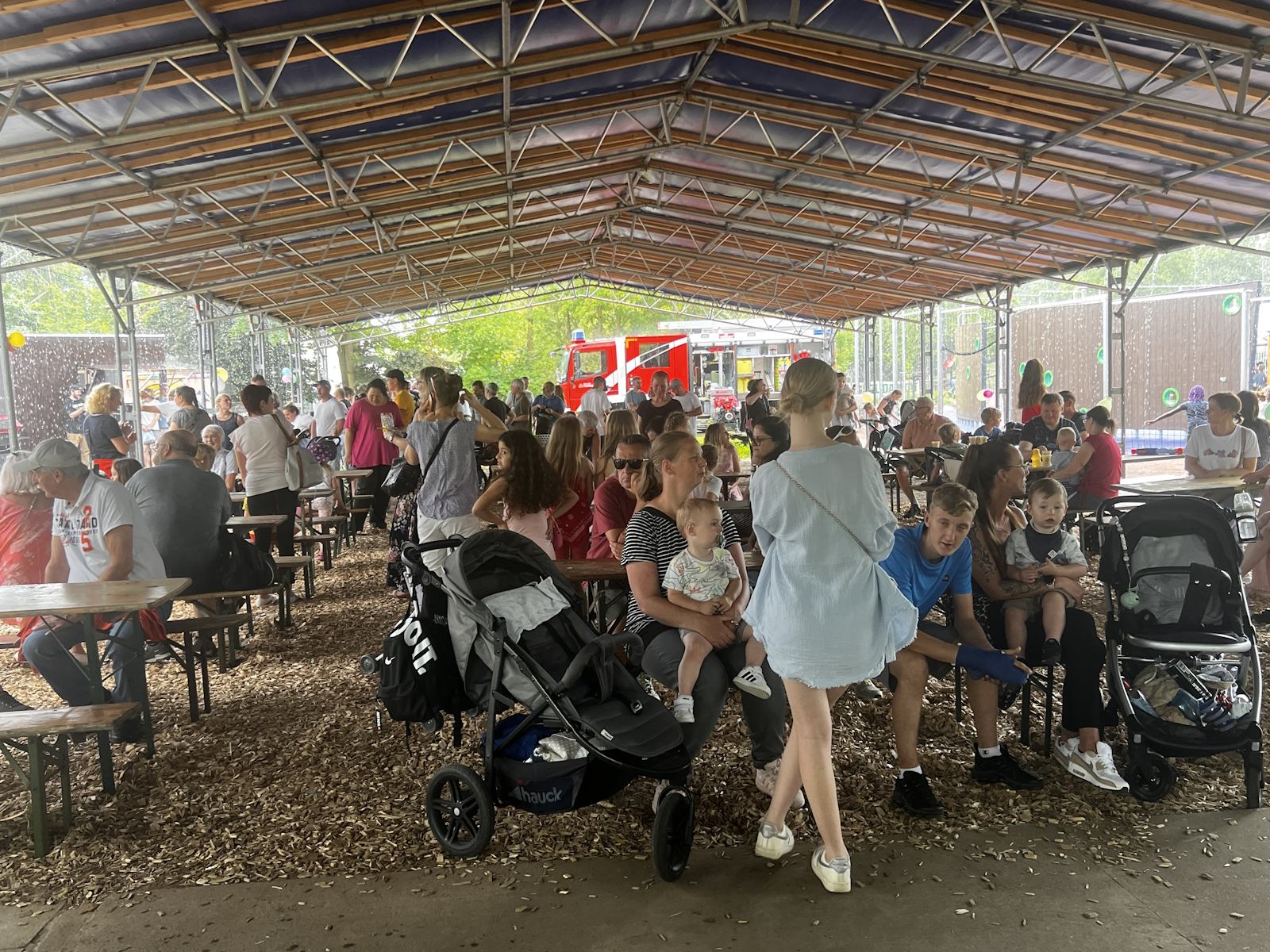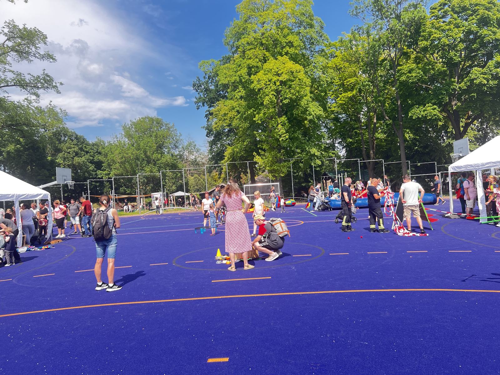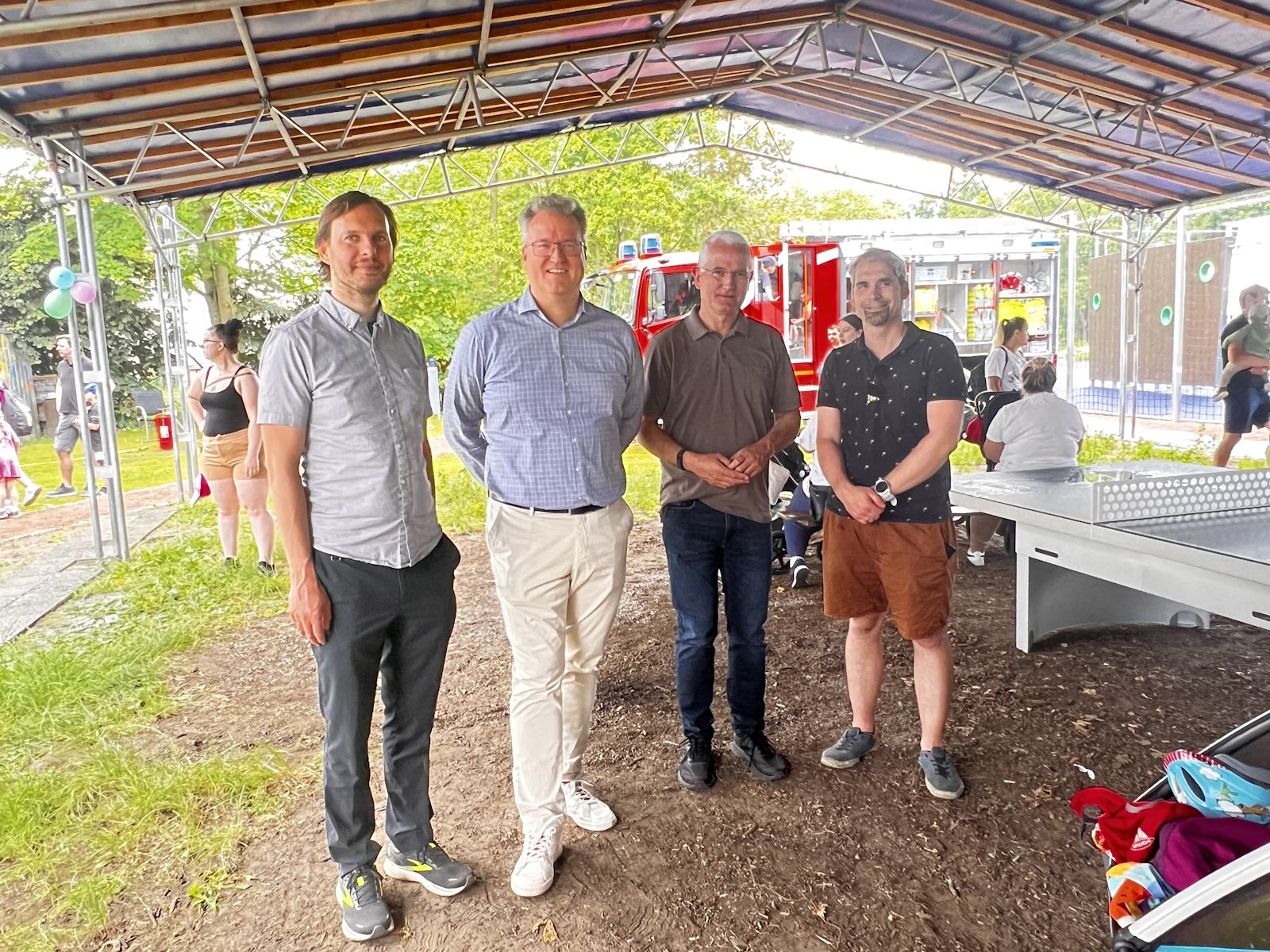 Seit Dezember 2022 haben wir regelmäßig von Fortschritt der „Mehrgenerationengerechten Aufwertung Außenraum Villa Pelikan“ berichtet. Ende 2023 fanden die Arbeiten ihren erfolgreichen Abschluss. Und nachdem im ersten Halbjahr dieses Jahres die Natur noch ihre Ruhe zur Entwicklung hatte, war es am Kindertag endlich so weit. Die KJFE Villa Pelikan lud zur Kindertagsfeier und Eröffnung des Außengeländes ein. Und viele, viele kamen bei strahlendem Sonnenschein und ließen sich auch von einem Gewitter nicht beeindrucken.