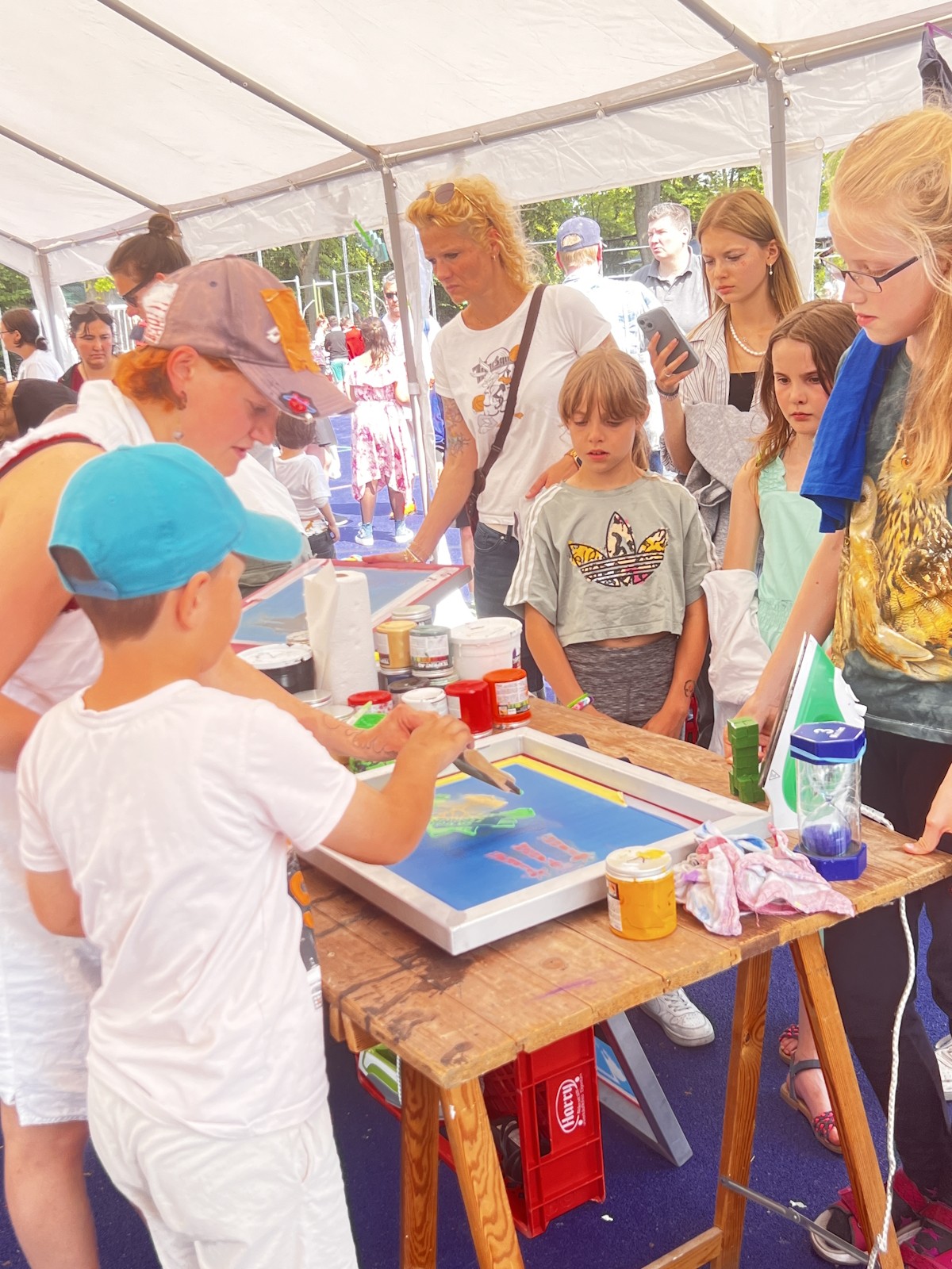 Auf Klein und Groß warteten Hüpfburg – Graffiti – Siebdruck – Schminken – Zirkusangebot – Buttons – Mine-Craft-in-echt Basteln – Drahtbäume flechten – Pumptrack – Creme-Töpfchen selber machen – Feuerwehr – Zuckerwatte – Grillstand / Getränkestand – Stockbrot + Lagerfeuer. Alle Möglichkeiten des großen Geländes für Spiel. Sport oder Chillen konnten genutzt werden.