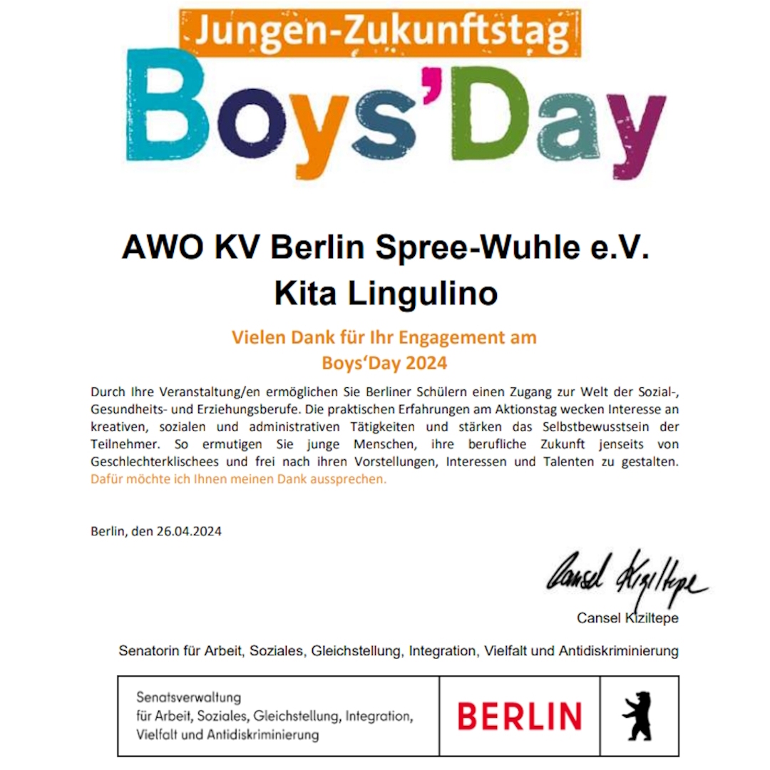 AWO-Kitas sind regelmäßig dabei. In diesem Jahr beteiligte sich die AWO-Kita Lingulino und erhielt ein herzliches Dankeschön von Senatorin Cansel Kiziltepe.