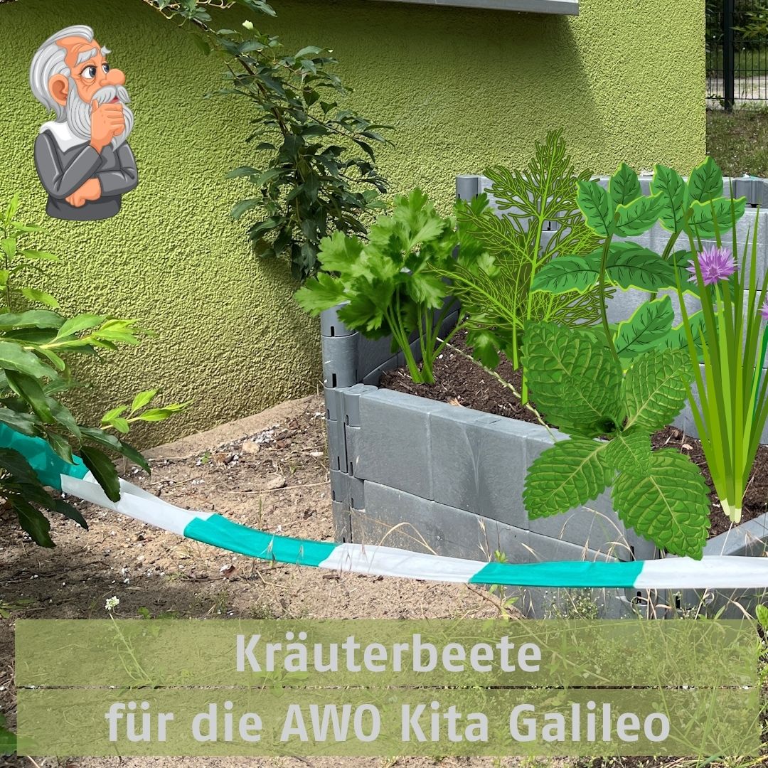 Die AWO Kita Galileo hat in diesem Jahr im Rahmen der FEIN-Einzelmaßnahmen (Freiwilliges Engagement in Nachbarschaften) Sachmittel zur Verfügung gestellt bekommen. Schon im vergangenen Jahr gab es die Idee, mit den Kindern Kräuterbeete anzulegen, die diese dann bepflanzen, pflegen, bewirtschaften können, um die Kräuter dann auch in der Küche für das Mittagessen zu nutzen. Anfang Juni war es nun so weit, ein Teil der Fördermittel wurde für zwei Kräuterbeete ausgegeben und diese aufgestellt.